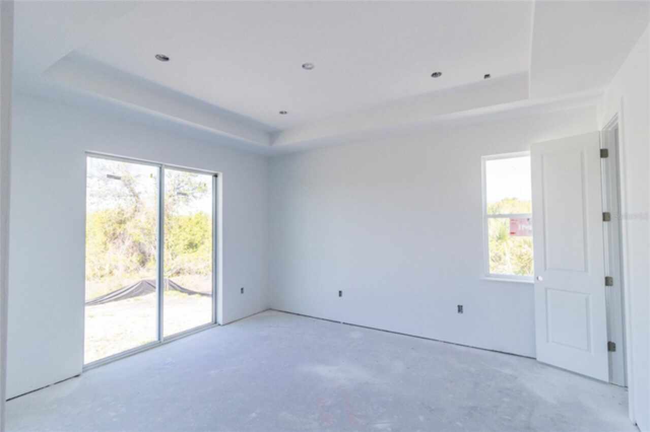 Experience elevated living at its finest in South Gulf Cove. The stunning Boca Ciega floorplan by Carpenter Homes is a true masterpiece within the Signature Series, proudly certified by the Florida Green Building Coalition (FGBC). This exquisite new construction boasts 4 spacious bedrooms, an oversized office/flex room, and 3 full bathrooms—perfectly designed for luxury, comfort, and style. As you enter, be captivated by the custom-designed kitchen that serves as the heart of the home. An expansive oversized Waterfall island flows effortlessly into the open living and dining areas, creating a perfect space for entertaining and daily living. The kitchen dazzles with painted Shaker 42” soft-close cabinets, a beautiful Anatolia Element 3x9" Beveled Glass Skylight Tile backsplash, and sleek Cambria 3cm Bristol Bay Quartz countertops. Every detail has been carefully curated, including a Moen Align chrome kitchen faucet with a contemporary zero radius kitchen sink, energy-efficient stainless steel appliances, and a built-in garbage disposal—merging style with function. The great room features a soaring vaulted ceiling, and expansive 8 foot 3-panel sliding glass doors that lead to your private, oversized pool/patio—an oasis designed for relaxation and entertaining. Enjoy the luxurious Brushed Nickel Chandeliers in your dining room & breakfast nook. The 52” Indoor Brushed Nickel 5-Blade Modern Reversible Ceiling Fans in every bedroom and the great room keep the air flowing in the Florida warmth, while the stunning Anatolia Altezza 12”x24” Glazed Porcelain Tile & Carraraplank flooring ties the space together with modern elegance. The Owner’s suite is nothing short of a luxurious retreat, featuring dual sinks, an upgraded glass-enclosed shower adorned with 4x16” Anatolia Soho white tiles, complemented by Anatolia Zen Flat Pebble vertical listello accents, a striking 72x36” contemporary mirror with front and back LED lighting, anti-fog technology, customizable color settings with a dimmer, and two expansive walk-in closets—offering both indulgence and practicality. The second bathroom continues the luxe experience with the front and back LED mirror, Anatolia Soho 4”x16” Ceramic Tile shower walls, Everleigh quartz vanity, and Moen Genta LX chrome fixtures for a sleek, polished look. The 13x26' outdoor pool with a water feature is a standout addition of this home, offering a luxurious sun shelf and enclosed with a birdcage for year-round enjoyment. The pool is 3-5 feet deep and includes stunning 2-color LED lighting, a variable-speed circulation pump, and an advanced salt-chlorine generator. Additional upgrades include a heater for comfortable swimming in any season, plus smart automation with a cell phone adapter, allowing you to control the pool’s settings from anywhere. Thoughtfully designed with every convenience in mind, this home includes a utility room with a wash basin, energy-efficient R-4.1 insulation on exterior concrete walls, Taexx pest control tubes, and metal hurricane shutters for every window. The Florida-friendly landscaping is complemented by an irrigation system with a rain sensor, ensuring a sustainable and low-maintenance outdoor retreat. The expansive 3-car garage provides ample space for your vehicles and storage needs, equipped with an electronic door opener and two remotes. Available for viewing anytime—schedule your tour today!