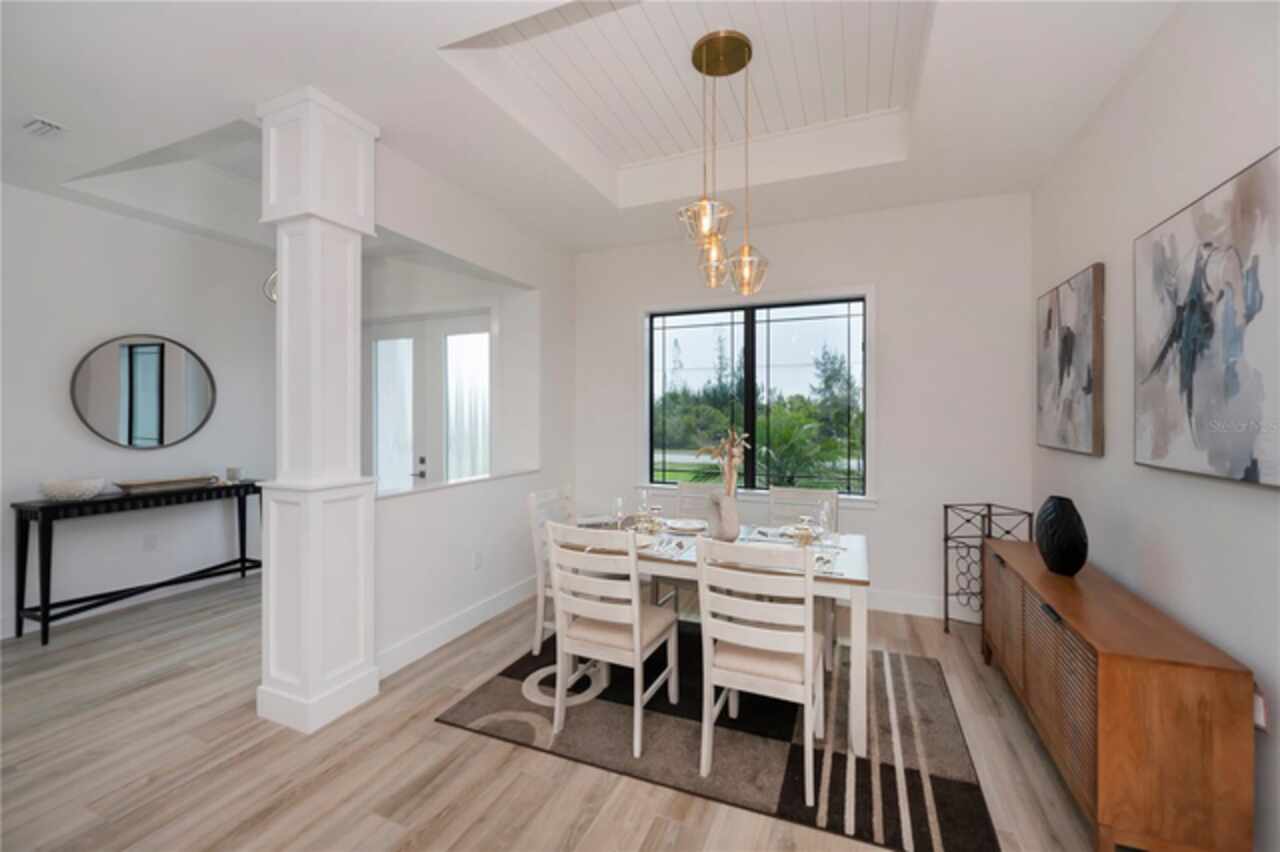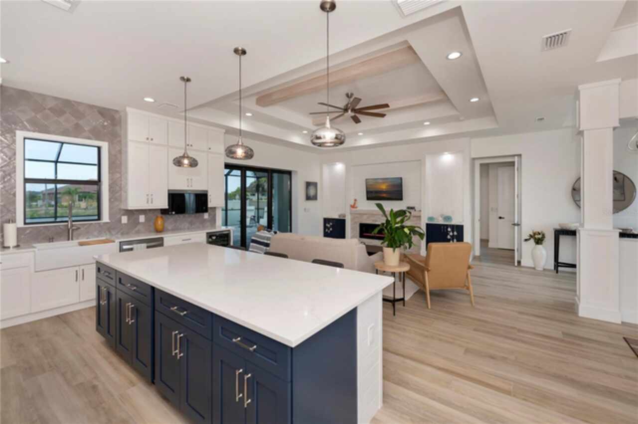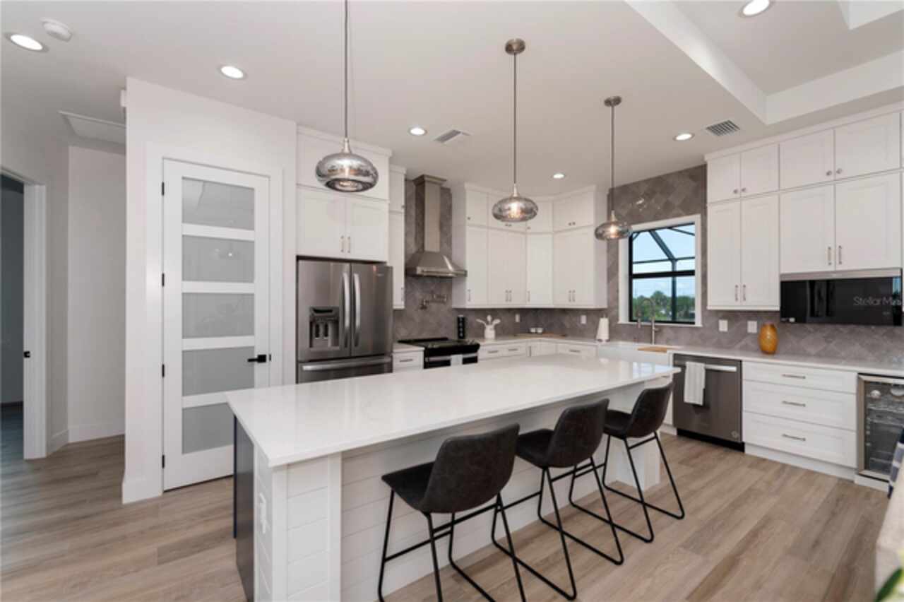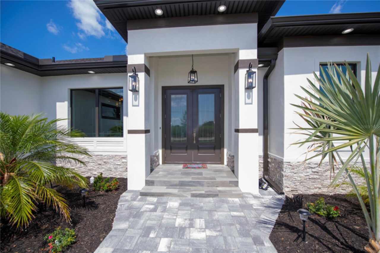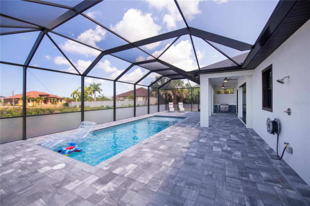 This gorgeous custom designed residence in South Golf Cove offers an oasis unlike any other. Custom build model home!!! Imagine unwinding in your sparkling 11x30 saltwater pool, and basking in the centerpiece of a massive oversized cage area, perfect for year-round entertaining. Enjoy your outside retreat with plenty of room for grilling with friends under the warm Florida sun, thanks to the built-in outdoor kitchen featuring a top-of-the-line gas range grill, and beverage cooler. Step inside and discover a breathtaking open floor plan, where soaring ceilings and designer touches throughout the home. The heart of the home is the luxurious chef's kitchen, a culinary playground designed to inspire your inner gourmet, no matter your cooking experience. Imagine gleaming, quartz countertops cascading across ample counter space. High-end, stainless-steel appliances, featuring a range and a built-in convection oven, cater to the most discerning chef. A massive center island provides additional prep space and casual seating, perfect for the gathering around the island After a day of exploring Florida's wonders, relax in your your master suite, a haven of tranquility designed for ultimate relaxation. Unwind in the spa-like bathroom, featuring a freestanding soaking tub, a walk-in shower with dual showerheads and rainfall technology, and his-and-her vanities with quartz countertops and designer fixtures. Peace of mind and stunning views are guaranteed with impact windows throughout the home, offering the highest level of hurricane protection – a crucial feature for out-of-state buyers seeking a worry-free Florida retreat. The two-car garage boasts a custom-built, insulated garage door with a quiet belt-drive opener, ensuring a serene environment. This property transcends the ordinary, offering a lifestyle of unparalleled luxury. Located close to world-class fishing, pristine beaches, and championship golf courses, you'll have endless opportunities for recreation at your fingertips. Imagine this as your home base for exploring all that Florida has to offer! Don't miss your chance to own a piece of paradise. Schedule a showing today and experience the epitome of Florida living! And if this stunning design perfectly suits your vision, but you have a different location in mind, the builder can recreate this dream home for you on your preferred lot.