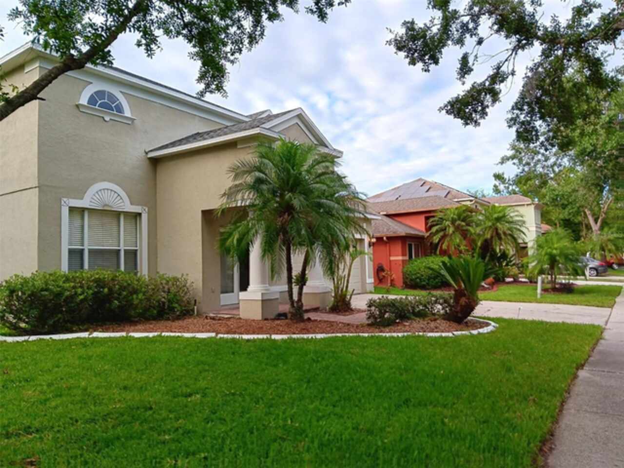 STUNNING WATERFRONT HOME WITH VERY BIG LOT(NOT THAT CLOSE TO NEXT DOOR), NO CARPET(NOT TO GET DIRTY AND SMELL), ON A QUITE ROAD (NOT A BUSY AND NOISY MAIN ROAD) AND JUST REMODELED. new roof, new AC, new floor of handscraped lifetime warranty premium wood laminate made in Germany, microban underlayment, white porcelain tile made in Italy. New paint outside & inside, new set of stainless-steel appliance & pull off faucet, new fans, gorgeous sliding door blinds, 4BR + a study, 3.5BA & 2 car Ga, 1/2 bath downstairs, 3 full bath, all bedrooms & study upstairs. nice open floor plan. living & dining, kitchen, breakfast area & family rm, overlook nice pond view. The large kitchen includes brand new stainless steel smooth top stove, microwave, refrigerator & dishwasher, pantry, 42"cabinets & a convenient built-in desk. on a very big lot and cul-de-sac with a paved entry & tiled foyer, security system at every window, irrigation system, Ceiling fans in every BR & family RM, phone jack is also in every BR & kitchen. Other features include rounded corner, niches, 2 medallions, tray ceiling in master bedroom, double entry door not only make the house look gorgeous but also make the move easily. double doors also for Master Br & Master Ba, mirror is framed in every bathroom, cabinets & tab in laundry rm for convenience, hurricane resistant garage door. Home offers many upgrade feathers, it's truly a lovely home with pond view on a large lot. lots of architecture structures, arches. Nice gated golf & country club community with lowest HOA fee in New Tampa features golf courses & golf shop, 2 pools & water slide, fitness rm, sauna, library, conference rm, lounge, restaurant & bar, playground, tennis & basketball courts. can close ASAP.
