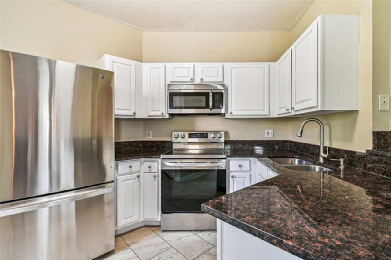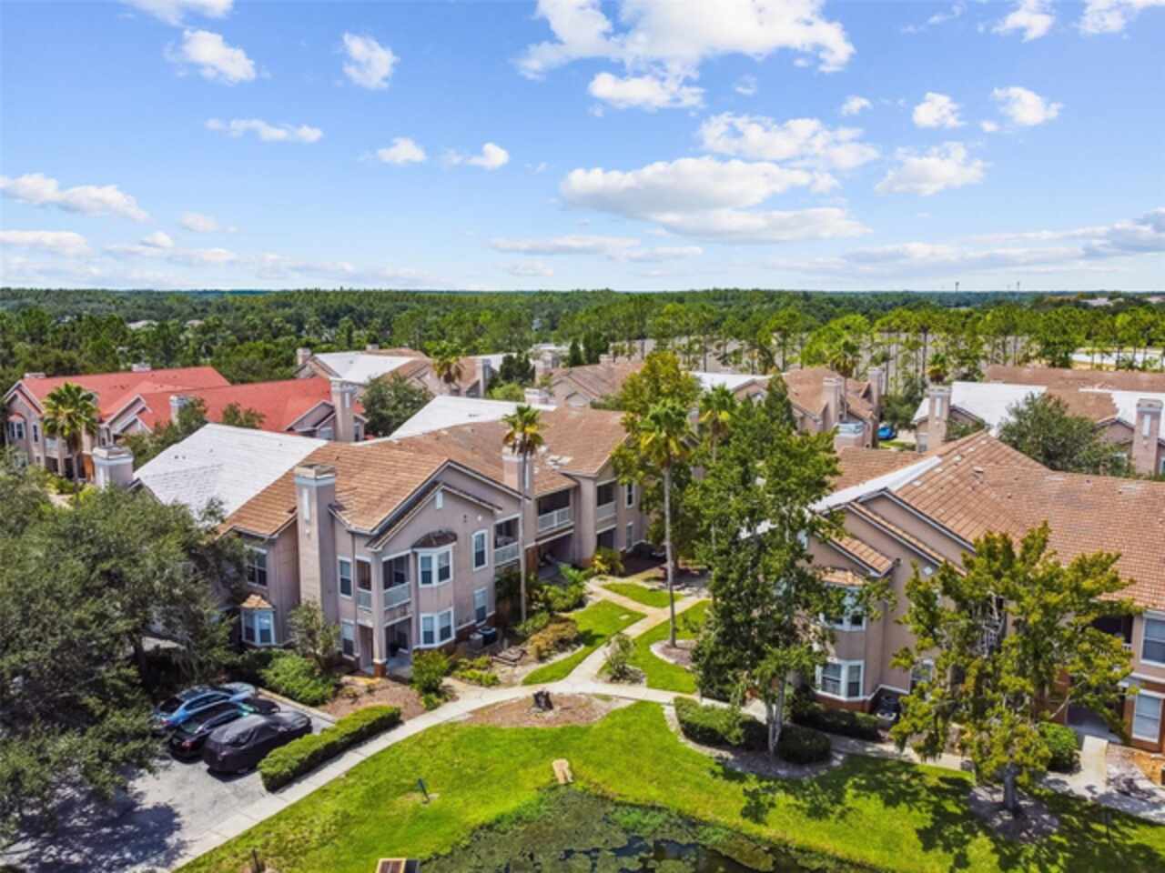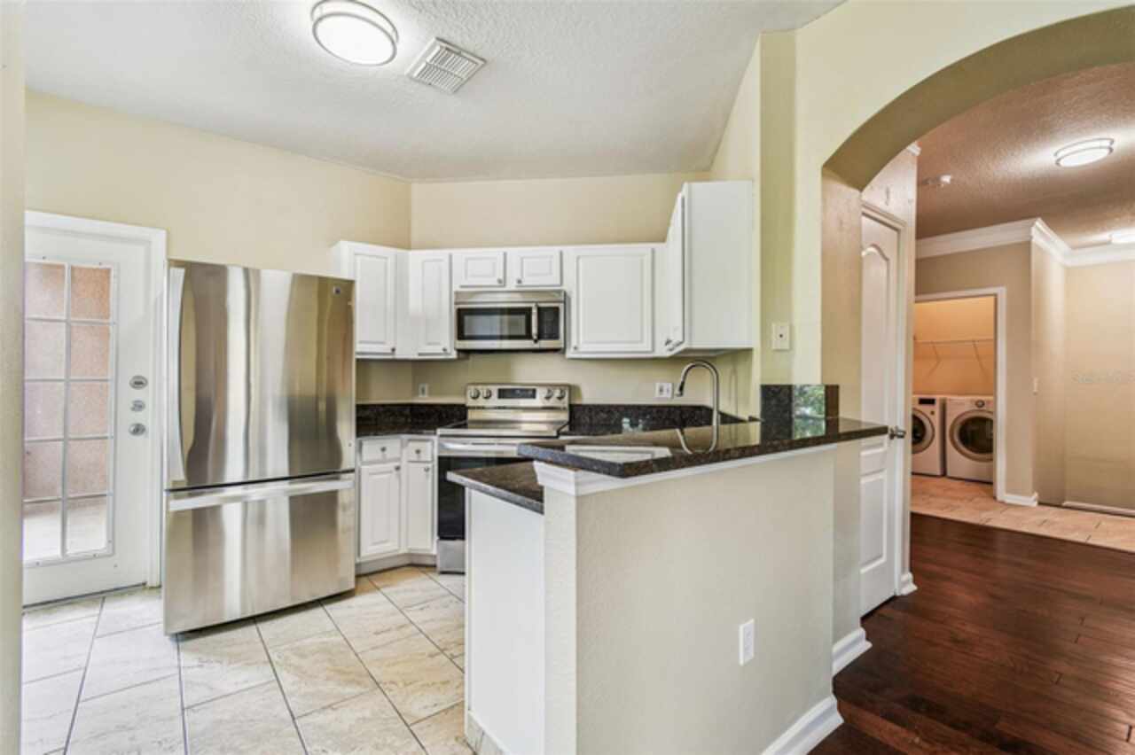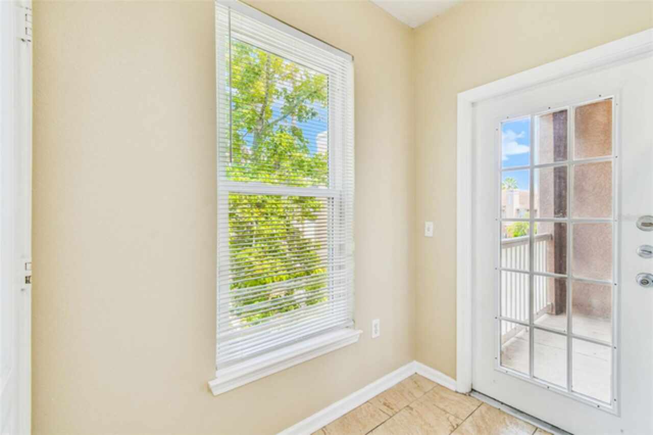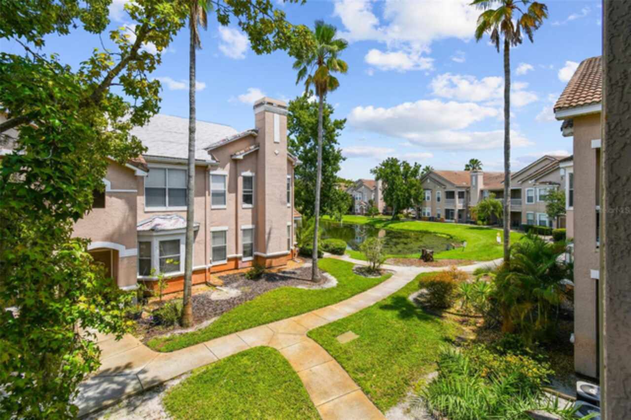 Updated corner unit with 3 bedrooms (split-floor plan), 2 full bathrooms is located at the Villas at Cross Creek. This home features high ceilings with an abundance of natural light. The unit is surrounded by mature landscaping providing a lovely, green privacy and offers a covered balcony overlooking the pond. Upon entry, you are greeted by an open floor plan with the great room encompassing a lovely living/dining room combination. BRAND-NEW WINDOWS (Energy-star rated, low-e) that reduce your utility bills. Ceramic tile floors in the foyer, kitchen & bathroom areas, and rich-looking engineered wood in the halls and main living areas. Brand new plush carpets in all bedrooms. Kitchen has polished/sealed granite countertop, newly installed double sink with Moen faucet, a great pantry/storage closet in kitchen. Adjacent to the living room there’s a dining nook in a bay area surrounded by windows. Enjoy gathering and entertaining at the breakfast bar or bring your morning coffee outside to enjoy on the covered balcony overlooking the pond. The three spacious bedrooms are separated by a main hallway that includes a built-in work desk area with shelving, spacious laundry room, and abundant closet space throughout the home! The master suite offers a king-sized room featuring a huge walk-in closet sure to please anyone! It has an en-suite bathroom with new vanity topped with Carrara marble, new faucets, toilet, new exhaust fan and shower hardware. HOA fees include internet plus gives you cable, entitling you to three boxes for cable access, and includes sewer and trash. The Villa Creek Community is built around a central pond, surrounded by conservation, offering many desirable amenities: community pool, fitness center, and fenced playground.
