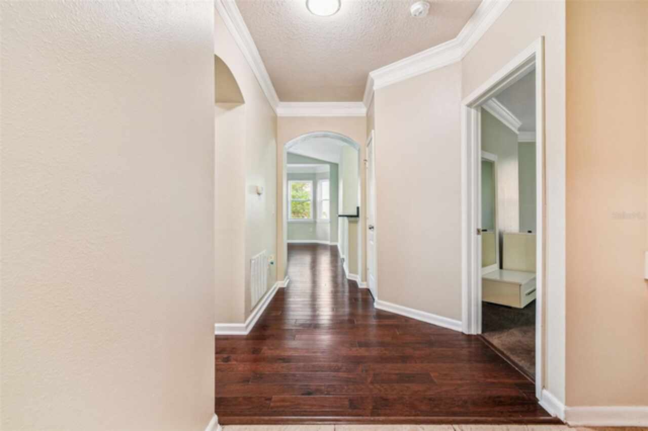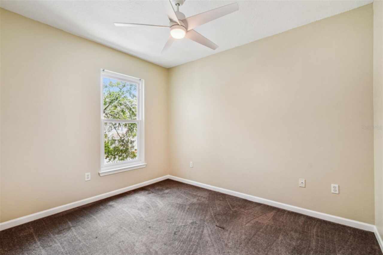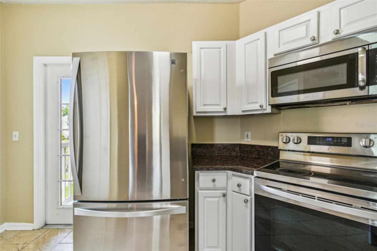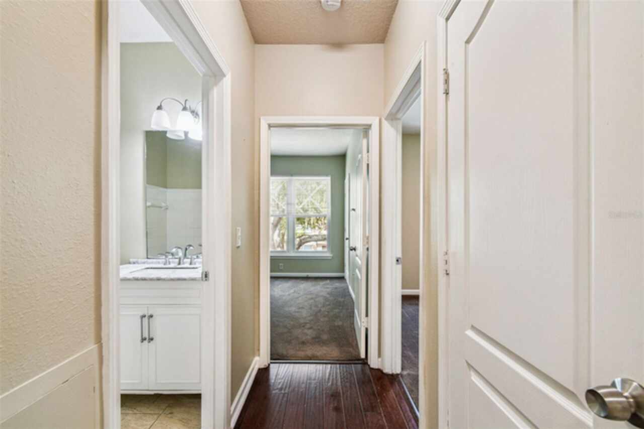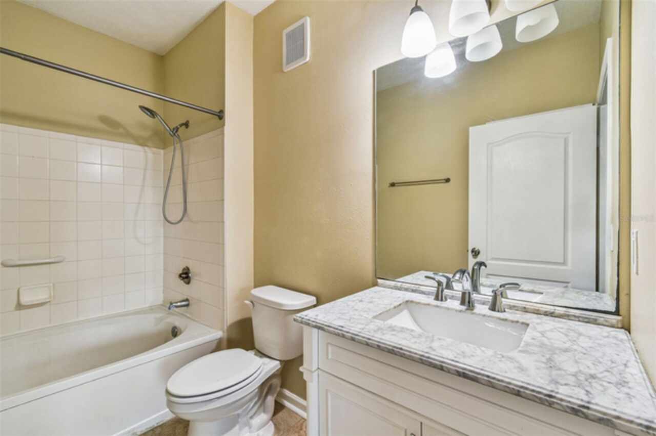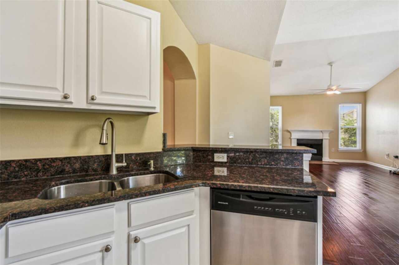 Updated corner unit with 3 bedrooms (split-floor plan), 2 full bathrooms is located at the Villas at Cross Creek. This home features high ceilings with an abundance of natural light. The unit is surrounded by mature landscaping providing a lovely, green privacy and offers a covered balcony overlooking the pond. Upon entry, you are greeted by an open floor plan with the great room encompassing a lovely living/dining room combination. BRAND-NEW WINDOWS (Energy-star rated, low-e) that reduce your utility bills. Ceramic tile floors in the foyer, kitchen & bathroom areas, and rich-looking engineered wood in the halls and main living areas. Brand new plush carpets in all bedrooms. Kitchen has polished/sealed granite countertop, newly installed double sink with Moen faucet, a great pantry/storage closet in kitchen. Adjacent to the living room there’s a dining nook in a bay area surrounded by windows. Enjoy gathering and entertaining at the breakfast bar or bring your morning coffee outside to enjoy on the covered balcony overlooking the pond. The three spacious bedrooms are separated by a main hallway that includes a built-in work desk area with shelving, spacious laundry room, and abundant closet space throughout the home! The master suite offers a king-sized room featuring a huge walk-in closet sure to please anyone! It has an en-suite bathroom with new vanity topped with Carrara marble, new faucets, toilet, new exhaust fan and shower hardware. HOA fees include internet plus gives you cable, entitling you to three boxes for cable access, and includes sewer and trash. The Villa Creek Community is built around a central pond, surrounded by conservation, offering many desirable amenities: community pool, fitness center, and fenced playground.