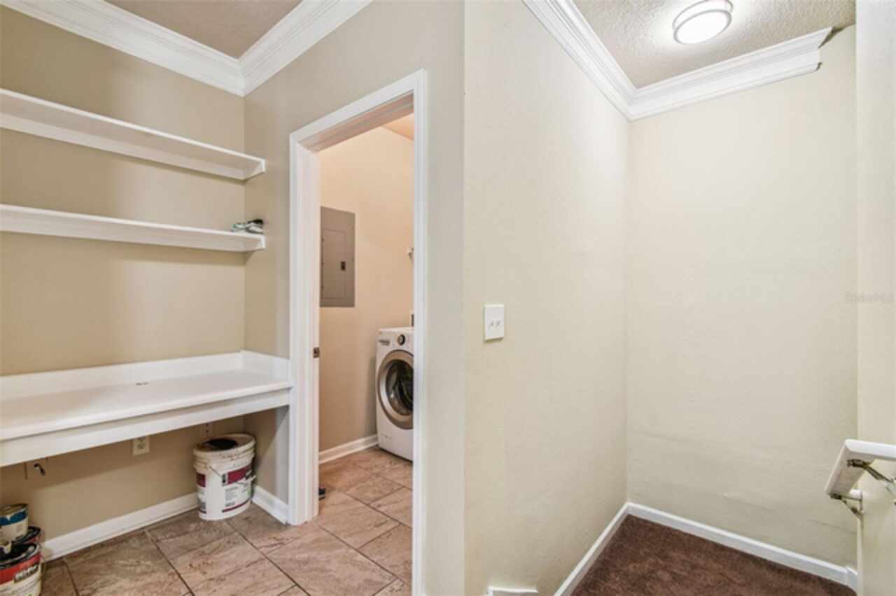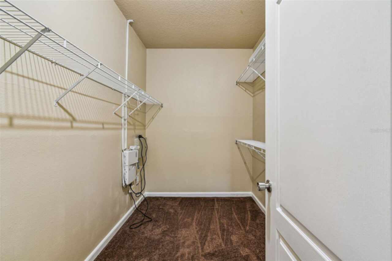 Built-in Features, Ceiling Fans(s), Crown Molding, Eat-in Kitchen, High Ceilings, Open Floorplan, Solid Wood Cabinets, Split Bedroom, Stone Counters, Thermostat, Walk-In Closet(s)