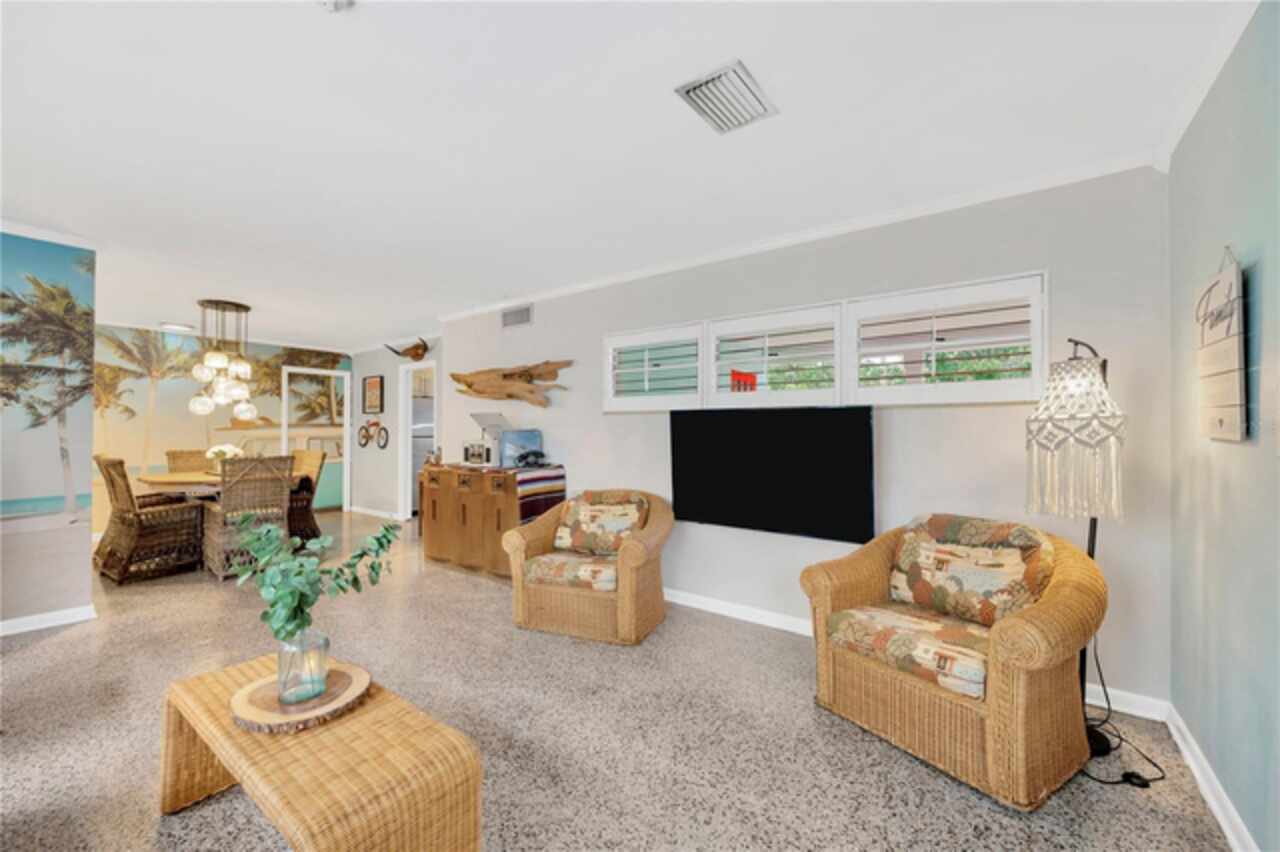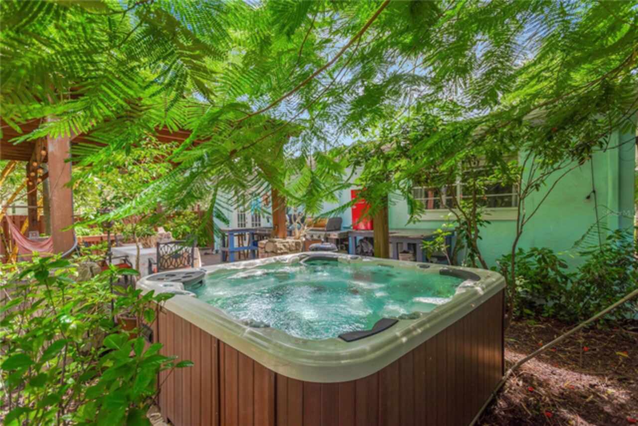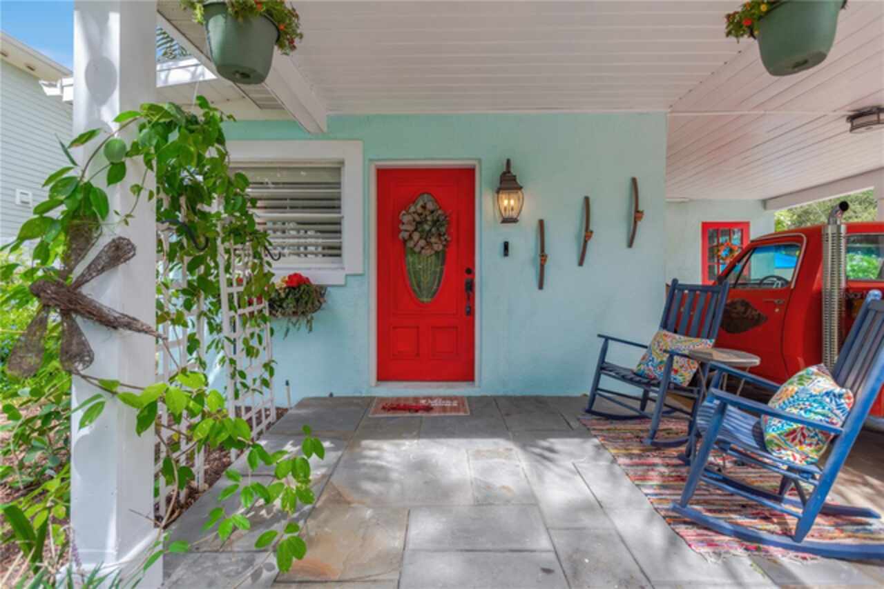 Escape to your secluded South Tampa sanctuary, where mornings begin with a quiet cup of coffee on your private deck and evenings offer serene moments by the tranquil koi pond, bathed in starlight. This beautifully updated 3-bedroom, 2-bath mid-century coastal cottage sits high and dry on a spacious corner lot—NO FLOOD INSURANCE REQUIRED HERE. From the moment you step inside, you’ll notice the unique mid-century architectural lines, fun coastal atmosphere and gleaming terrazzo floors that mirror the incoming natural light. This layout flows effortlessly and is a haven of simplicity, free from clutter and excess. French doors lead you an expansive backyard deck—perfect for morning yoga, afternoon lounging, or hosting unforgettable dinner parties under the twinkling lights. Cook up something amazing in your outdoor kitchen, dine al fresco, and listen to the peaceful trickle of the koi pond, waterfall and fountain. Enjoy the lush, pollinator-friendly gardens, bursting with vegetables, Jamaican cherry and cocktail trees. Whether you're a passionate gardener or simply enjoy the beauty of nature, this space was designed for both relaxation and abundance. This home’s solid block construction offers peace of mind and is low maintenance, and also includes a shady carport, storage shed and extended driveway, which is perfect for your golf cart, RV or boat. Enjoy the scenic route home, where your avenue is shaded by a canopy of oaks and is just minutes from Palma Ceia Golf & Country Club, Bayshore Boulevard, and the best dining and shopping South Tampa has to offer. And with zoning for some of Tampa’s top schools—Roosevelt, Coleman, and Plant—you’re not just buying a home; your investment is secure. Schedule your private showing today and experience the charm, comfort, and convenience of Golfview living!