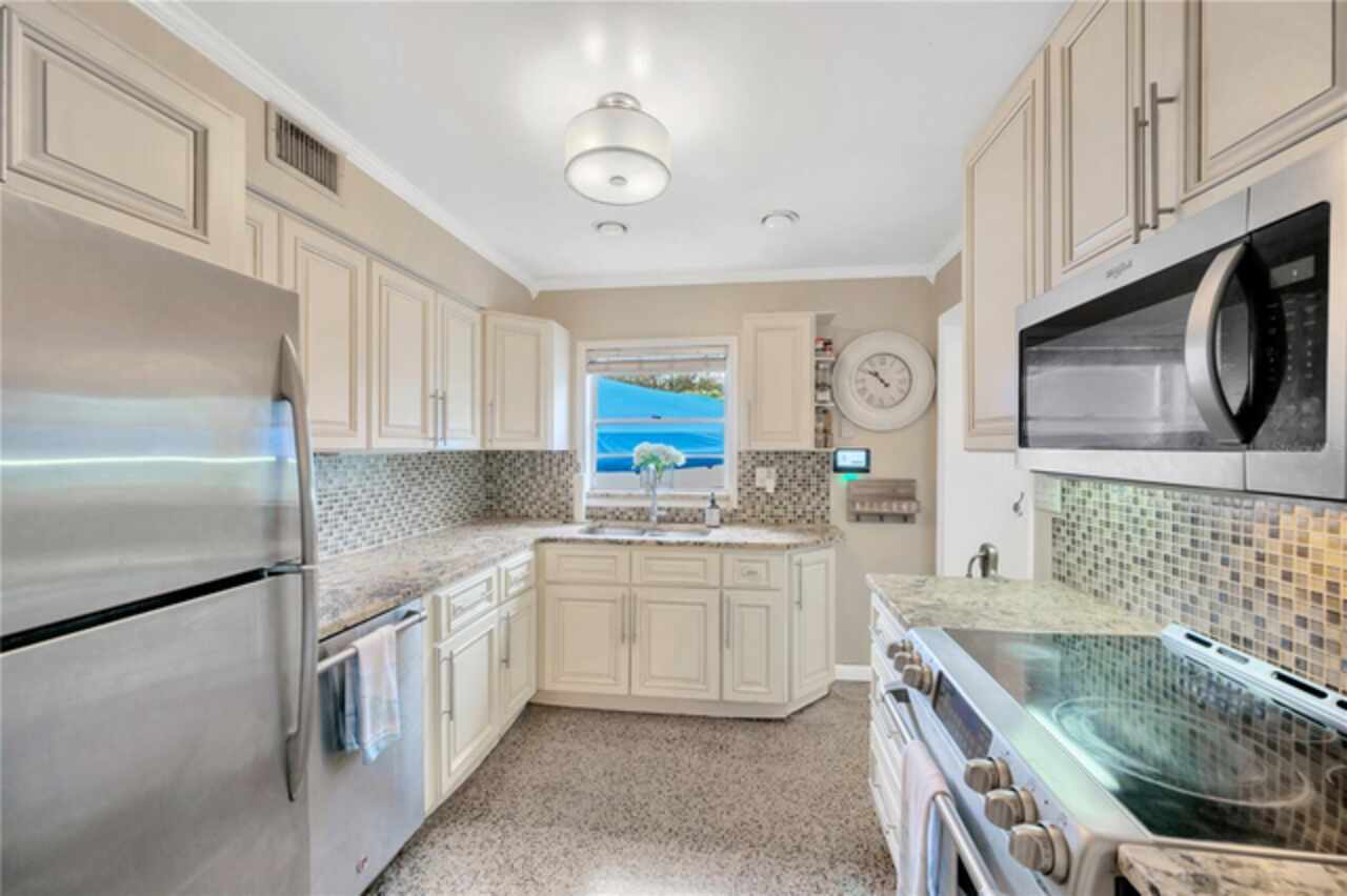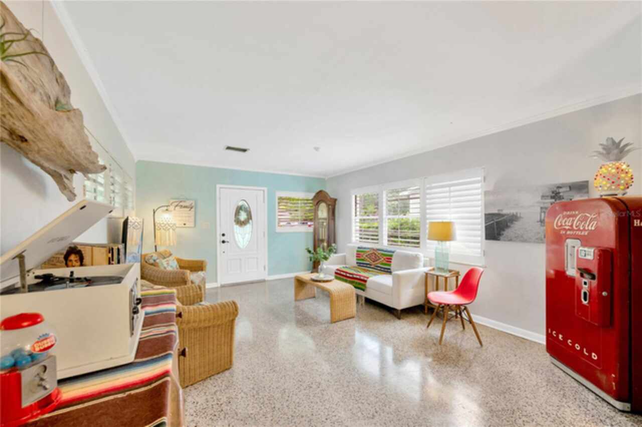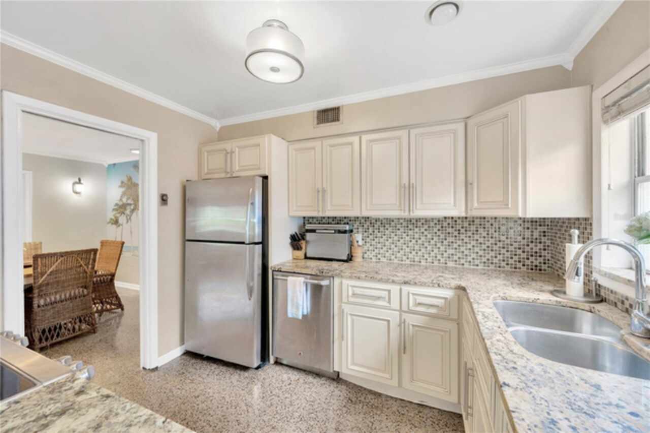Escape to your secluded South Tampa sanctuary, where mornings begin with a quiet cup of coffee on your private deck and evenings offer serene moments by the tranquil koi pond, bathed in starlight. This beautifully updated 3-bedroom, 2-bath mid-century coastal cottage sits high and dry on a spacious corner lot—NO FLOOD INSURANCE REQUIRED HERE. From the moment you step inside, you’ll notice the unique mid-century architectural lines, fun coastal atmosphere and gleaming terrazzo floors that mirror the incoming natural light. This layout flows effortlessly and is a haven of simplicity, free from clutter and excess. French doors lead you an expansive backyard deck—perfect for morning yoga, afternoon lounging, or hosting unforgettable dinner parties under the twinkling lights. Cook up something amazing in your outdoor kitchen, dine al fresco, and listen to the peaceful trickle of the koi pond, waterfall and fountain. Enjoy the lush, pollinator-friendly gardens, bursting with vegetables, Jamaican cherry and cocktail trees. Whether you're a passionate gardener or simply enjoy the beauty of nature, this space was designed for both relaxation and abundance. This home’s solid block construction offers peace of mind and is low maintenance, and also includes a shady carport, storage shed and extended driveway, which is perfect for your golf cart, RV or boat. Enjoy the scenic route home, where your avenue is shaded by a canopy of oaks and is just minutes from Palma Ceia Golf & Country Club, Bayshore Boulevard, and the best dining and shopping South Tampa has to offer. And with zoning for some of Tampa’s top schools—Roosevelt, Coleman, and Plant—you’re not just buying a home; your investment is secure. Schedule your private showing today and experience the charm, comfort, and convenience of Golfview living!