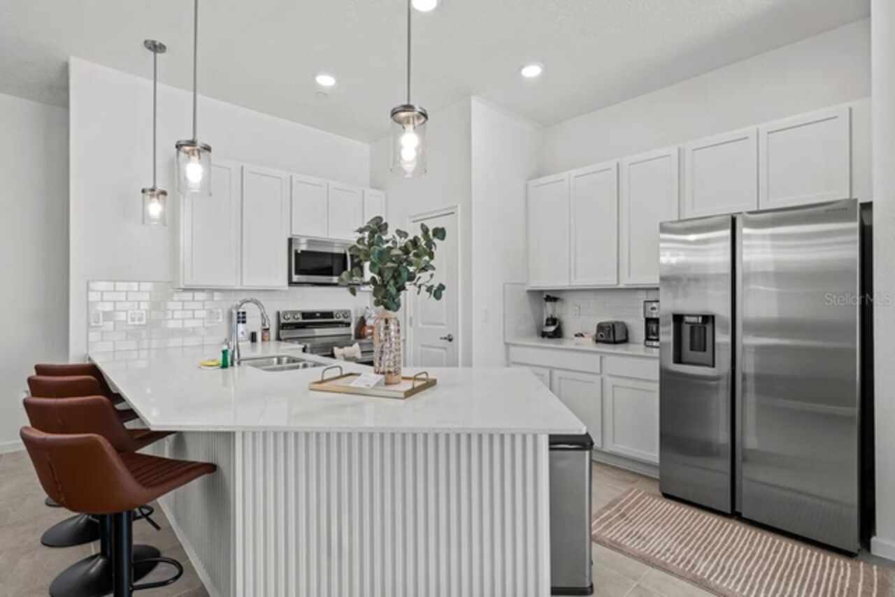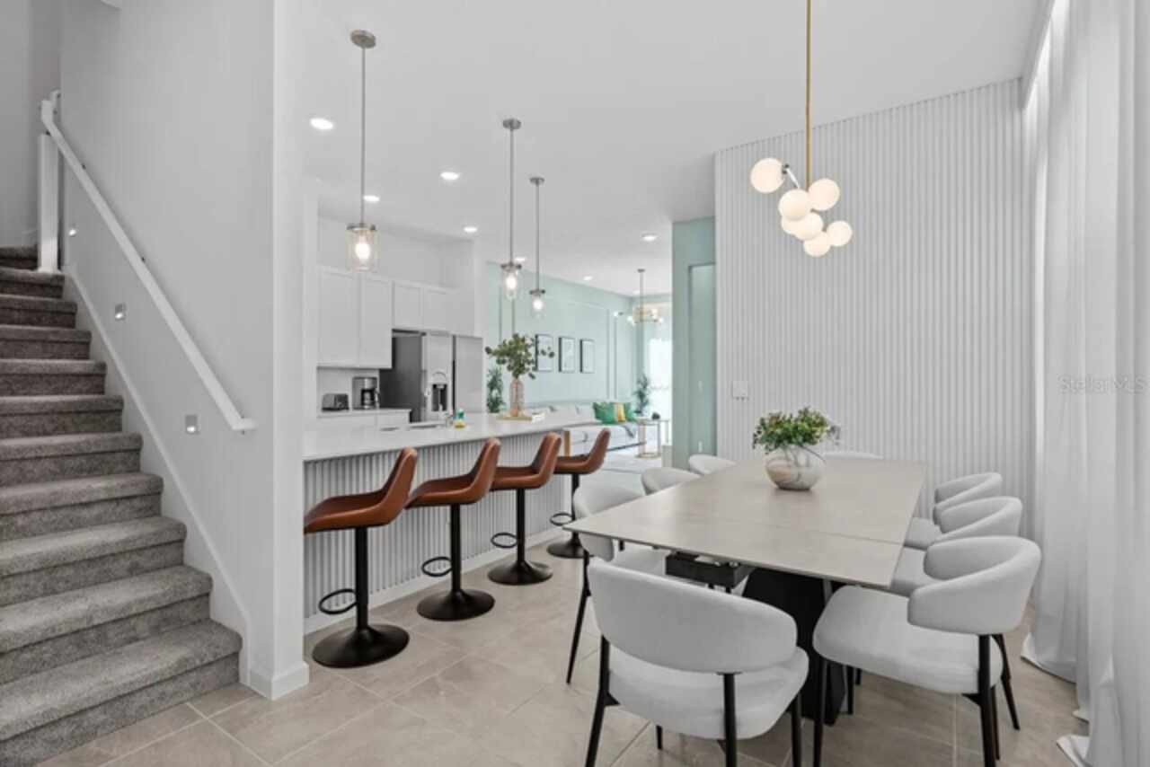 Prime, BRAND-NEW 5-bedroom, 5-bathroom townhome in Paradiso Grande – the short-term rental community on International Drive – now available for immediate occupancy! This fully upgraded residence boasts coveted conservation and tranquil water views with NO REAR NEIGHBORS, ensuring guest privacy and appeal. Property highlights include five luxurious en-suite bedrooms, a private HEATED POOL with jets, premium finishes throughout, elegant wood stairs, and stylish tile flooring. The modern light gray cabinetry and upgraded lighting package add a touch of sophistication. Enjoy peace of mind within this gated community, just minutes from Orlando's top attractions. Paradiso Grande's resort-style clubhouse features a lazy river, expansive pool, state-of-the-art fitness center, lounge, and bar, providing exceptional guest amenities. Capitalize on flexible ownership – short-term rental, long-term rental, or personal retreat. Skip the new construction delays and secure this turnkey investment or dream vacation home today!