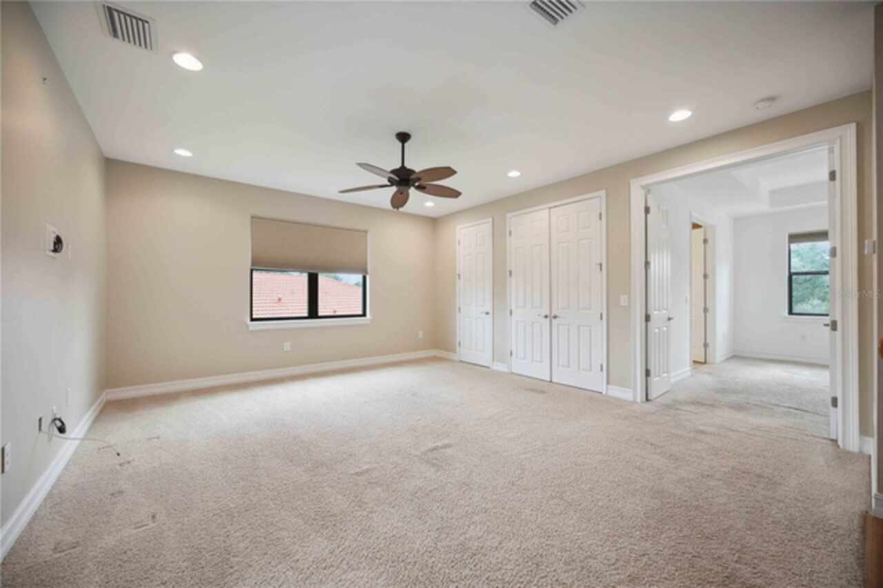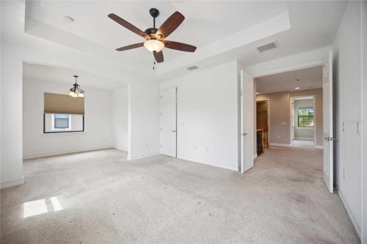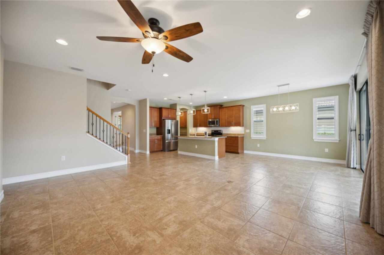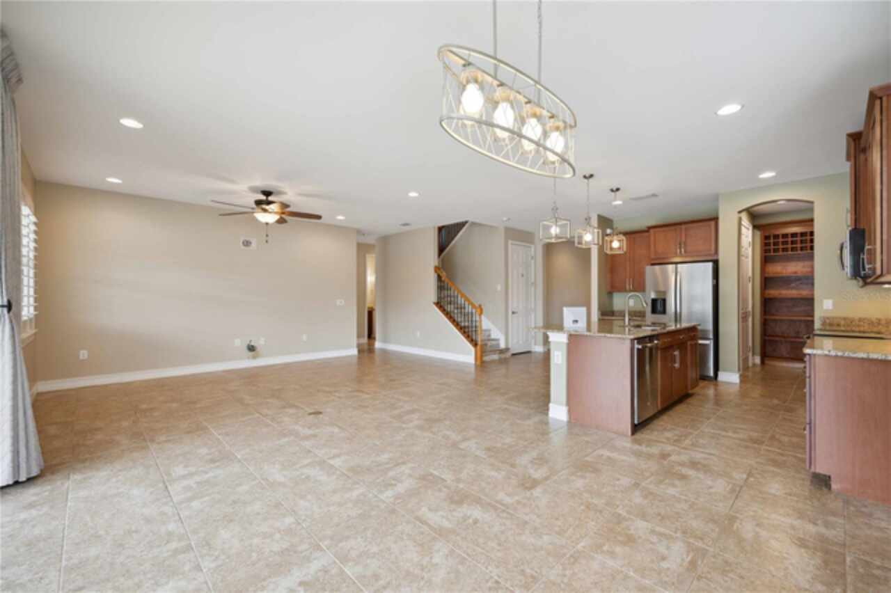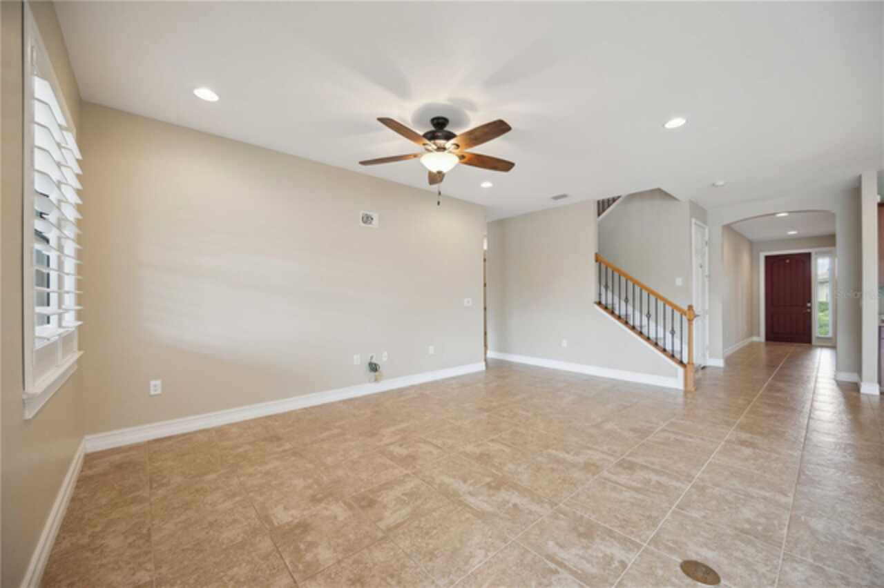 High Ceilings, Kitchen/Family Room Combo, Open Floorplan, PrimaryBedroom Upstairs, Solid Surface Counters, Thermostat, Walk-In Closet(s), Window Treatments