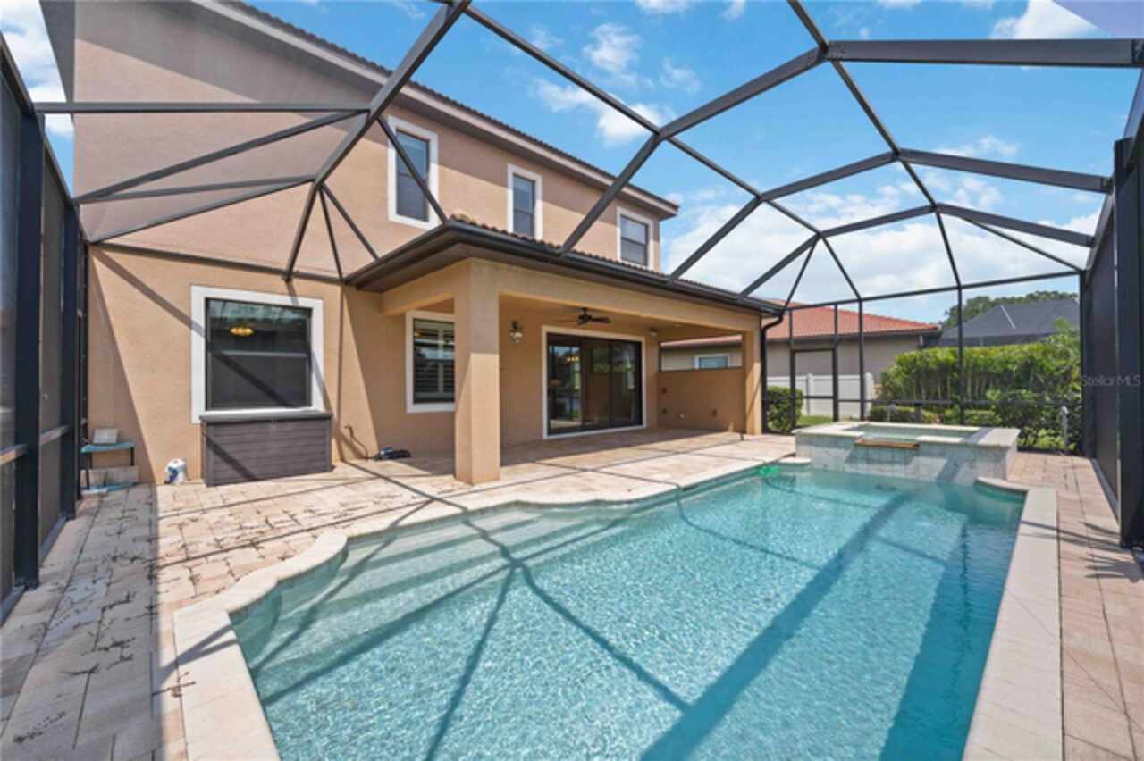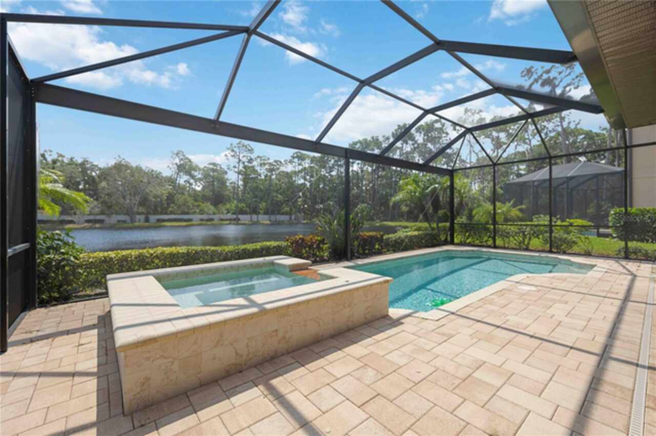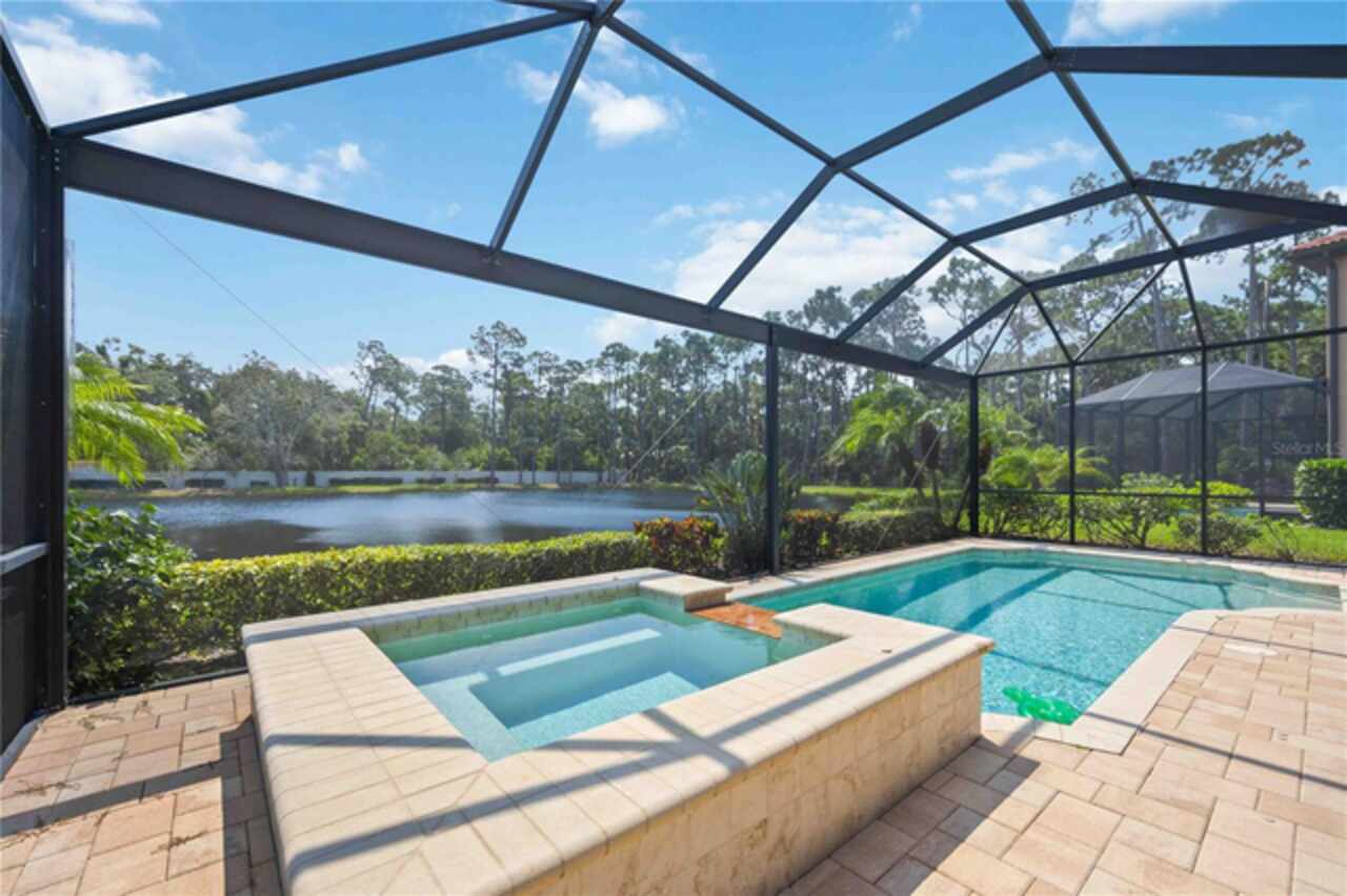 Just 2 BLOCKS from the Legacy Trail and 2 MILES from Nokomis Beach! Nestled in Calusa Park, a cozy gated community of 88 homes, this stunning 2015-built, 4BR/3BA home offers a perfect blend of luxury, comfort, and natural beauty. With 3164 square feet and two stories of thoughtfully designed living space, this residence is a true sanctuary. Step inside to be greeted by an expansive, open-concept floor plan featuring high ceilings, elegant finishes, and large, hurricane-rated windows that flood the space with natural light. The gourmet kitchen is a chef's dream, complete with granite countertops, stainless steel appliances, a massive island and incredible Butler's Pantry PLUS walk-in pantry that makes entertaining a breeze. The living and dining areas flow seamlessly, creating a perfect setting for gatherings of any size. On the first floor you'll also find a private Office/Den, as well as a Bedroom and full Bath. Through the triple-wide sliding glass door you'll find a private oasis, where a heated salt-water pool and spa await! The expansive lanai features pavers and hook-ups for an outdoor kitchen. Clear View screens give you an unobstructed view of a serene pond teeming with wildlife, providing a picturesque and peaceful backdrop for your outdoor activities. Whether you're relaxing in the spa, enjoying a swim, or simply taking in the stunning views, this space offers an unmatched level of tranquility. The upstairs features an Owner's Suite, with attached Sitting Room and to-die-for, fully customized Walk-In Closet. The Closet opens directly into an expansive Laundry Room (also accessible from the upstairs hall) complete with utility tub. A luxurious En-Suite Bathroom is the perfect finishing touch. A loft style Family Room, two large additional Bedrooms, two storage closets and a Full Bath with dual vanity provide ample space for family, all designed with comfort and style in mind. As a resident of Calusa Park, you’ll also have access to a sparkling community pool and enjoy complete lawn maintenance, included in the very low HOA fee. Nearby Laurel Park and Sandra Tims Terry Community Center feature a full complement of amenities and activities for everyone. With a 2-car garage, energy-efficient features, and a location that offers both incredible privacy and convenience, this home is truly a rare find! Don't miss your opportunity to live in a home where luxury meets nature in perfect harmony!