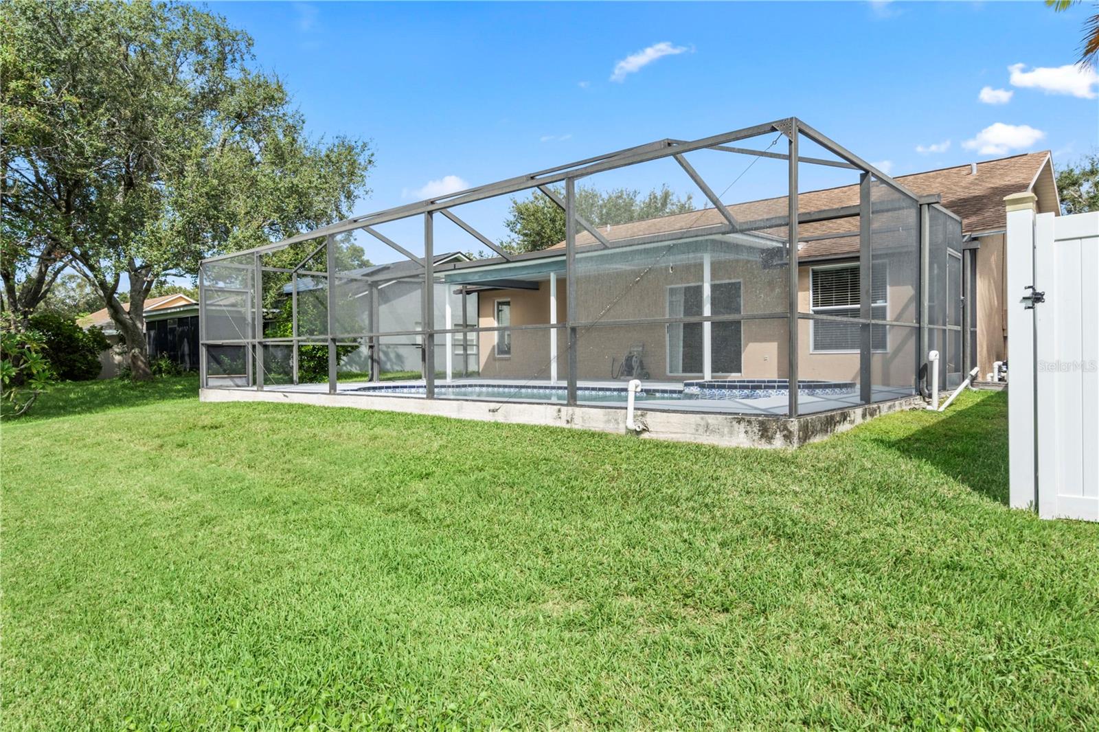 This Gem is back on the market - Buyers financing fell thru.... This highly desirable neighborhood of Waterside neighborhood of The Lakes, this 3 bedroom, 2 bathroom pool home offers a rare opportunity to bring your vision to life. Solidly built and well-loved, it’s ready for a modern refresh — but with great bones, soaring ceilings, and an ideal floorplan already in place, the foundation for your dream home is all here. Double front doors open to a spacious foyer and light-filled living room, where tall ceilings and views of the sparkling pool set the tone for what could be an incredible indoor-outdoor living space. The kitchen offers generous cabinet and counter space, a closet pantry, and a cozy eat-in nook—perfect to update into a true entertainer’s hub. A separate dining room with bay windows adds character and flexibility. The oversized owner’s suite features a walk-in closet and private ensuite bath, while the guest bedrooms are well-proportioned with a full bath conveniently close by. An indoor laundry room adds everyday functionality. Step outside to the screened-in lanai complete with inground pool and spa—just waiting to be revitalized into the ultimate backyard retreat. With low annual HOA fees, no CDD, and no flood zone, the value here is undeniable. Waterside at The Lakes offers tennis and pickleball courts, a playground, and scenic nature paths with gazebo and water views. Nearby Roosevelt Wetlands flaunts over 100 species of birds and wildlife along newly added walking trails. Centrally located near Mainlands Golf Course, Freedom Lake Park, Bill Jackson’s Shop for Adventure, Gulf beaches, shopping, dining, fitness centers, Helen Howarth Park, I-275, and both St. Pete/Clearwater and Tampa International Airports—this home combines potential, location, and lifestyle in one unbeatable package. Bring your creativity and make it shine—this is the Florida home you've been waiting to transform!