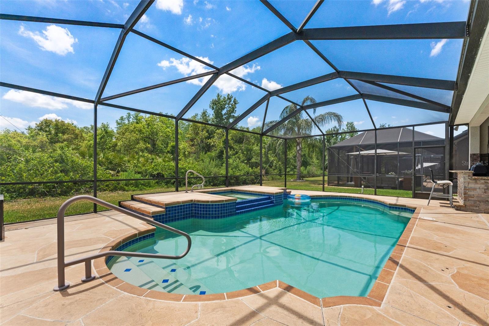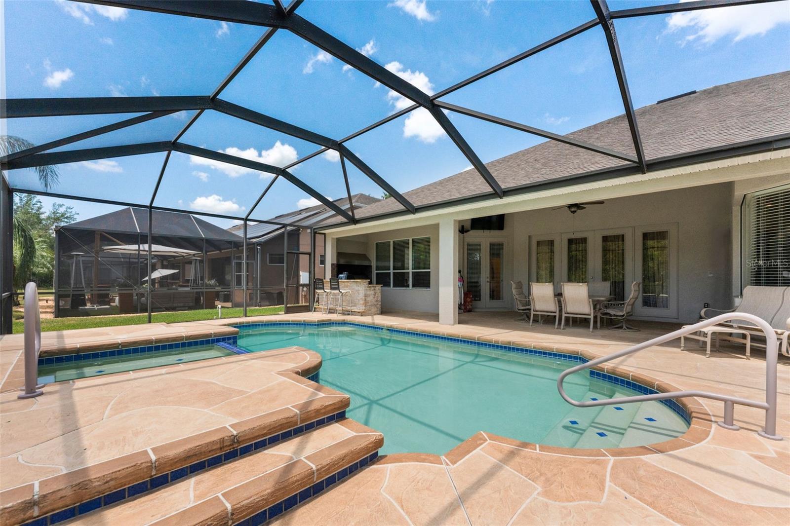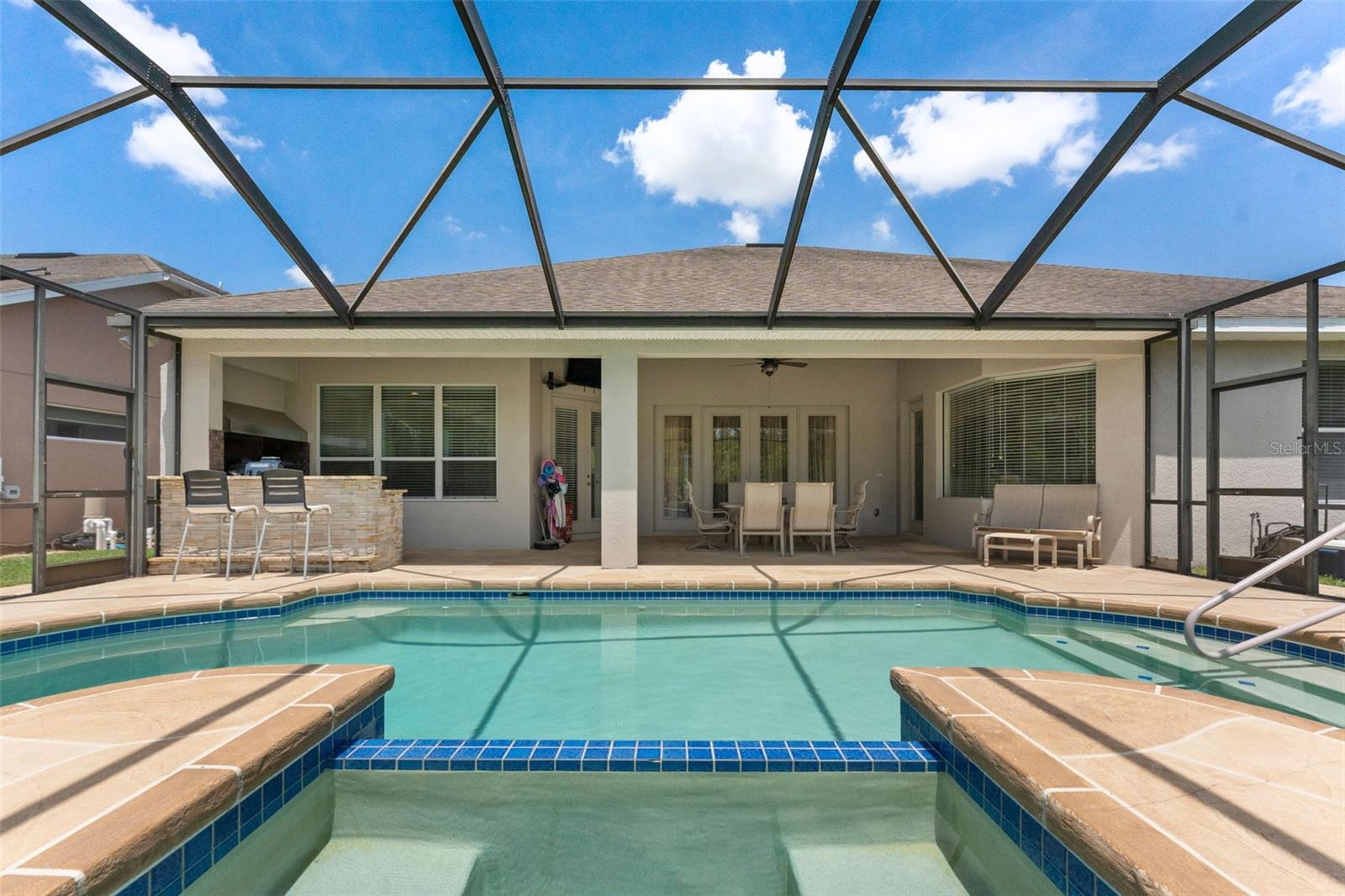 BACK ON THE MARKET DUE TO BUYER FINANCING FALLING THROUGH!!!! Welcome to 10511 Mistflower Lane, Tampa, FL 33647—a beautifully refreshed 4 bedroom, 4 bath home designed for true Florida living inside an amenity-rich community. Curb appeal pops with a brand-new roof, new AC, new water heater, fresh paint, and tidy landscaping. Inside, sunshine dances across natural wood flooring throughout the main living areas (carpet only in the bedrooms) for a warm, timeless feel. The layout is both elegant and practical. A dedicated formal dining room sets the tone for gatherings, while the central living area opens to an updated kitchen with 42" cabinetry, granite countertops, stainless steel appliances, and an upgraded backsplash. The kitchen island is a dream for cooking prep and is adjacent to the breakfast bar and sunny breakfast nook that overlooks the lanai. Step through the 8' French doors to your private outdoor retreat: a screened lanai with a sparkling pool and raised hot tub/spa, plus a built-in outdoor kitchen—perfect for weeknight grilling, Saturday game days, and sunset dinners. There’s no backyard fence—just low-maintenance privacy (no rear neighbors) within the screened enclosure. The oversized primary suite is a true sanctuary with dual walk-in closets and a spa-style bath featuring a jetted soaking tub, separate shower, and raised-height double vanity. Secondary bedrooms are roomy and well-placed for privacy and feature easy access to full baths. Upstairs, a generous loft/bonus room adds flexible living space—media room, play space, home gym, or hobby studio—and the projector and screen can convey. Additional touches you’ll love: 5¼" baseboards, thoughtful storage, an interior laundry room, and quick access to top New Tampa schools, shopping, dining, and commuter routes—tucked away yet convenient. If you’ve been hunting for a move-in-ready home that blends thoughtful updates with effortless indoor-outdoor living, 10511 Mistflower Lane delivers. Schedule your private showing today and experience why this K-Bar Ranch gem is the perfect backdrop for your next chapter.