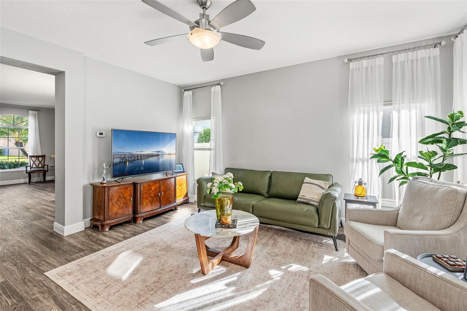 Under contract-accepting backup offers. Welcome to Woodland Lakes Preserve, one of East Orlando’s most sought-after gated communities, where resort-style amenities, tree-lined streets, and a prime location come together to create the ideal backdrop for daily living. This expansive two-story residence offers nearly 2800 square feet of thoughtfully designed space with five bedrooms, three full baths, generous living areas, a fully fenced backyard, and tranquil conservation views that provide privacy and a peaceful setting. The inviting curb appeal sets the tone with elegant stacked stone accents, a pavered driveway and stylish coach lights. Inside, the home opens with large living and dining rooms perfect for entertaining, leading into a spacious family room anchored by a beautifully renovated kitchen. Appointed with quartz countertops, stainless steel appliances, an apron sink, and modern cabinetry with stylish hardware, the kitchen is designed for both function and style. The breakfast nook overlooks the backyard, and the open concept makes gatherings seamless. Downstairs also features a full bedroom and bath, ideal for guests, in-laws, or a home office. Upstairs, the expansive owner’s suite impresses with dual closets, a tray ceiling, and a fully updated spa-like bath featuring dual vanities, a soaking tub, and a walk-in shower. Three additional bedrooms, luxurious designer baths, and a spacious loft allow for versatile use as a playroom, media room, or home gym. New luxury vinyl flooring is found throughout the home creating a modern aesthetic and a durable, low-maintenance foundation. Major system updates include a roof replacement in 2022 and a Brand New HVAC system, offering buyers peace of mind. This home also conveys with a long list of valuable inclusions like a pro-grade refrigerator, ceiling fans, chandeliers, framed mirrors, blinds, curtains, rods, and optional additional furnishings. Outdoor living is equally impressive with a sprawling covered lanai finished with pavers and ceiling fans, a fully fenced yard with irrigation, updated landscaping, and exterior lighting that enhances both curb appeal and functionality. The property has been well maintained with ongoing lawn and pest control so you can enjoy easy upkeep from day one. Within Woodland Lakes Preserve, residents enjoy access to a resort-style pool with shaded cabanas, clubhouse, covered playground, walking paths, and multiple scenic lakes that create a peaceful community feel. The gated entry and guardhouse provide security, while manicured landscaping and community pride enhance its appeal. Beyond the gates, the location offers convenience with proximity to Waterford Lakes Town Center, UCF, Lake Nona/Medical City, and major employers, as well as quick access to SR 408, 417, and 528 for commuting to Downtown Orlando or the Space Coast. Zoned for highly rated schools, the home blends space, upgrades, technology, and lifestyle in a way that few properties can match. Move-in ready with modern finishes, upgraded systems, and an unmatched package of included features, 10516 Willow Ridge is the perfect choice for buyers seeking a spacious, stylish, and well-equipped home in a thriving community.