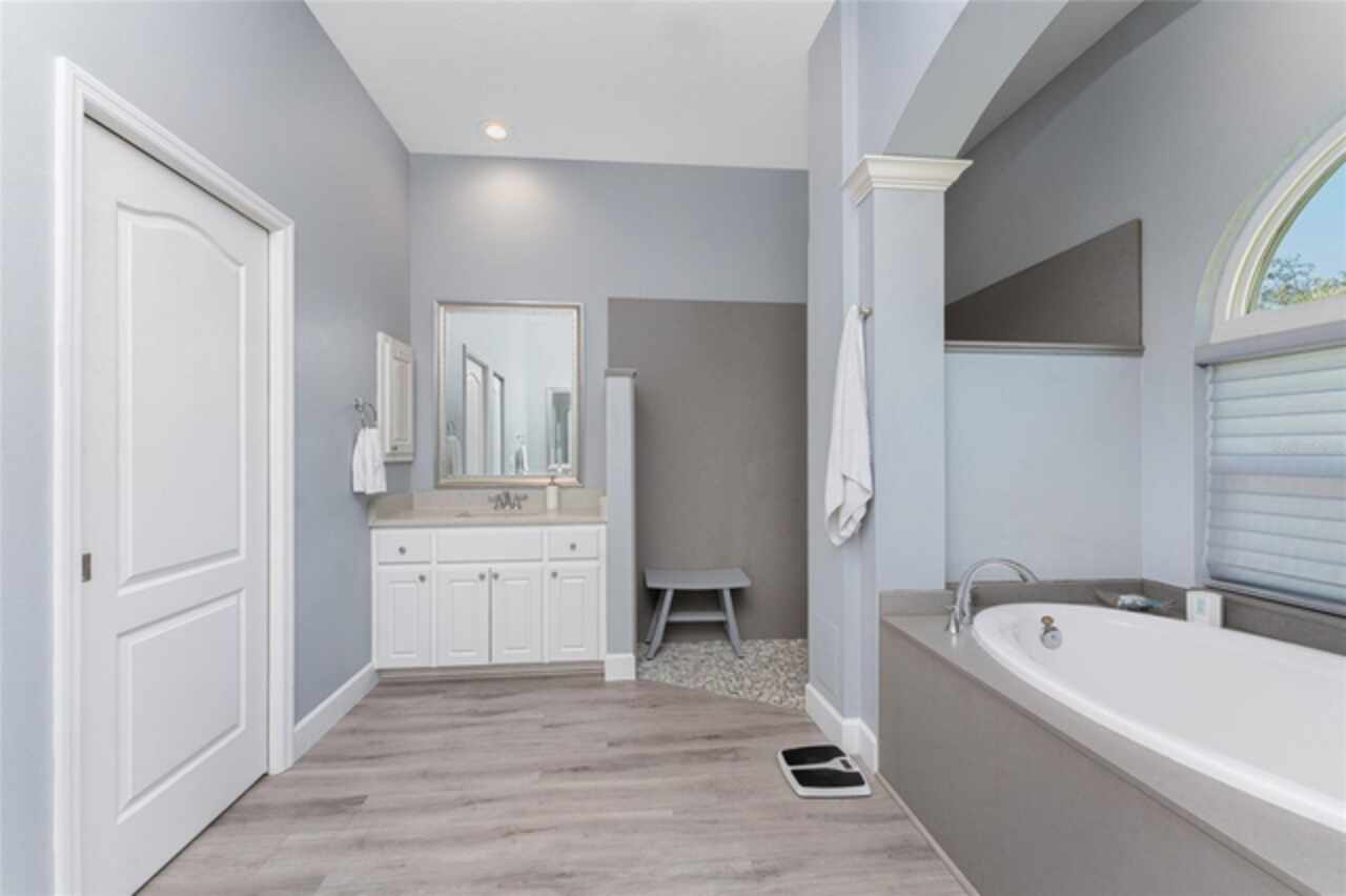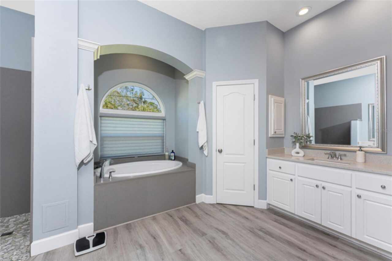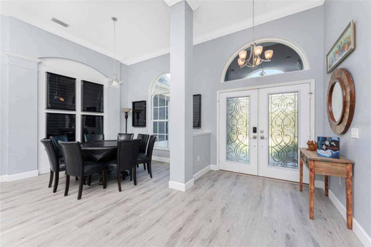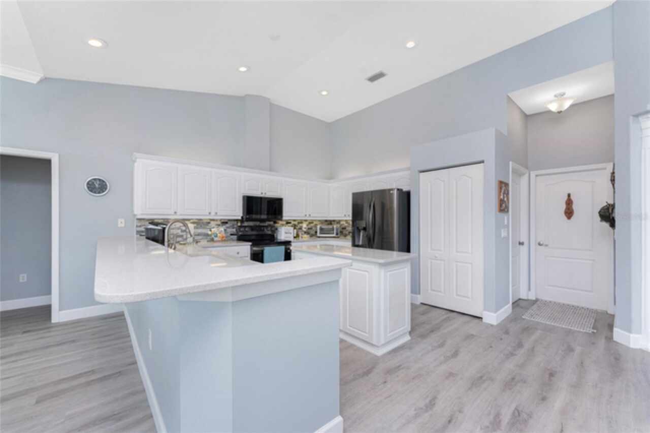 OUT OF FLOOD ZONE, DOUBLE LOT This stunning waterfront home sits on a rare double lot with 160 feet of water frontage, offering breathtaking views, a concrete seawall, and ample space for outdoor enjoyment. Located out of the flood zone, this property boasts a southeast-facing backyard, providing sunlight almost all day long, perfect for relaxing or entertaining. The home features a versatile and flexible floor plan, with a family room, living room, dining room, and a cozy dinette area framed by an aquarium window that brings the beauty of the outdoors inside. At the heart of the home is the spacious kitchen, designed with both style and functionality. Featuring quartz countertops, a tiled backsplash, a large island, a breakfast bar, and a pantry, this kitchen is ideal for cooking, entertaining, and creating memories. It seamlessly connects to the living areas, making it the perfect gathering space for family and friends. An indoor laundry room adds convenience and practicality to everyday living. The split floor plan provides privacy and comfort, with the primary bedroom suite located on the left side of the home and the two additional large bedrooms (12x13) on the opposite side. The luxurious primary suite features his-and-her closets, a spa-like bathroom with a large walk-in shower with quartz shower walls, his-and-her vanities, a garden tub, linen closet and a private water closet. Three sets of sliding glass doors lead to the inviting SALT-WATER swimming pool, creating a seamless connection between indoor and outdoor living. The tall ceilings with crown molding, elegant arches, and stately columns add a sense of grandeur, while updates like a new metal roof (2023), an HVAC system (2017), hurricane windows, and accordion shutters on the sliders provide peace of mind. Outdoors, the property is a true gem. It features new pilings and a 40x8 Trex boat dock, a concrete seawall, two spacious sheds (24x11 and 12x10), and a large area for RV or boat parking. The beautifully landscaped yard, with low-maintenance rocks surrounding the home, complements the property’s elegance. Additional features include city water, irrigation by well, and a three-car garage for all your storage needs. This home combines elegance, functionality, and waterfront living in a way that is truly unmatched. With its flexible layout, luxurious upgrades, and stunning outdoor spaces, it’s a one-of-a-kind property you won’t want to miss. Schedule your private showing today and discover all this home has to offer!