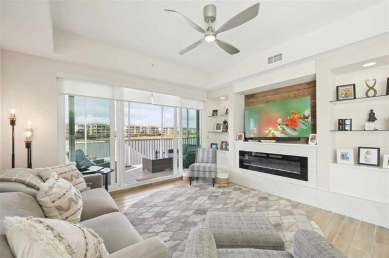 Under contract-accepting backup offers. Stunning Lakefront Luxury Condo at Waterfront at Main Street, Lakewood Ranch Experience the perfect combination of tranquility, luxury, and convenience with this immaculate Cayman model condo, offering 1, 558 sq. ft. of elegant living space. This rare end-unit features 3 bedrooms, 2 full bathrooms, and breathtaking panoramic views of Lake Uihlein, overlooking the Lakewood Ranch Country Club Golf Course. Enjoy peaceful mornings on your private screened-in balcony with a cup of coffee or unwind in the evening with a glass of wine while taking in stunning sunsets and views of local wildlife. Designed with high-end finishes, this condo offers: Wood-look porcelain tile flooring throughout the main living areas, custom built-in wall unit with fireplace in the family room, Granite countertops and dove-tail cabinetry in the kitchen and bathrooms, Moen upgraded fixtures and raised-height vanities in both bathrooms, GE Profile stainless steel appliances, Impact-resistant windows for added peace of mind, Split floor plan offering privacy with the primary suite separate from the guest bedrooms. The third bedroom offers flexibility and can easily function as a home office, den, or additional guest space. Community Amenities Living at Waterfront at Main Street offers resort-style amenities, including: Heated saltwater pool and spa with scenic lake views, Outdoor kitchen, grilling areas, and fire pit for gatherings, Fully equipped fitness center, Social clubhouse hosting regular events and activities, Walking, biking, and kayaking opportunities around Lake Uihlein - Convenient access to Lakewood Ranch Main Street with shops, restaurants, a movie theater, and miniature golf - Monthly events like free outdoor concerts, weekend vendor fairs, art shows, and antique car exhibits Additionally, this condo is just minutes from award-winning beaches, top-rated golf courses, the UTC Mall, Sarasota, Bradenton, and major highways. The current owners have loved living in this beautiful home and shared some of their favorite things: 1. The unbeatable location — everything they need is within walking distance. 2. Gorgeous views of wildlife and sunsets from the lanai. 3. A strong sense of community with friendly neighbors and frequent social events. 4. The perfect size — spacious but easy to maintain. Additional Highlights • This property qualifies for a 1% lender incentive with a preferred lender, subject to lender approval. • Furniture available separately This is a rare opportunity to own a beautiful lakefront condo in one of Lakewood Ranch’s most desirable communities. With its prime location, stunning views, and resort-style amenities. Schedule your private tour today!
