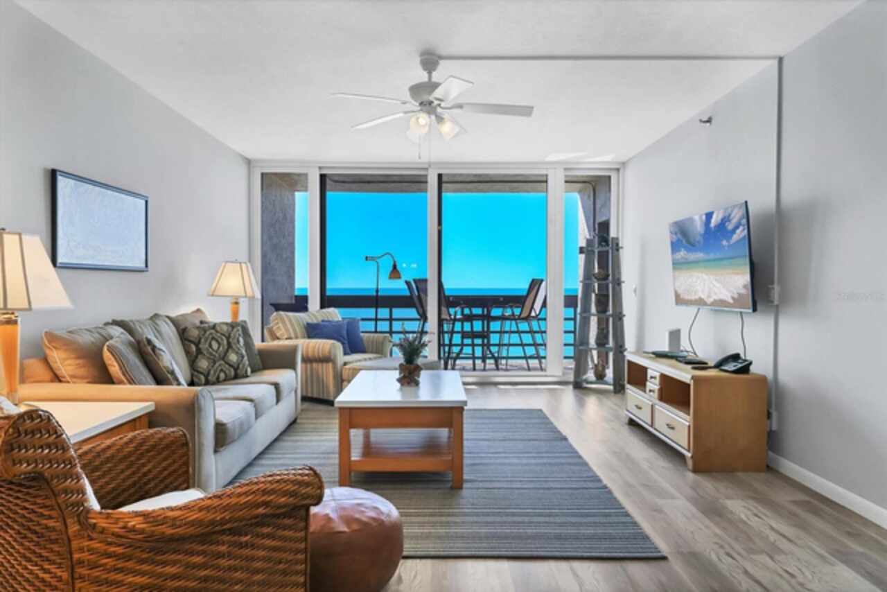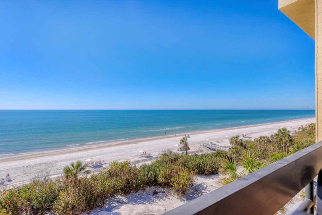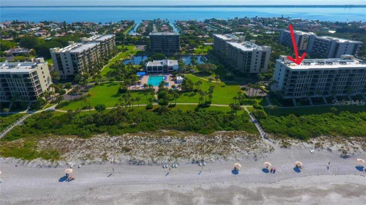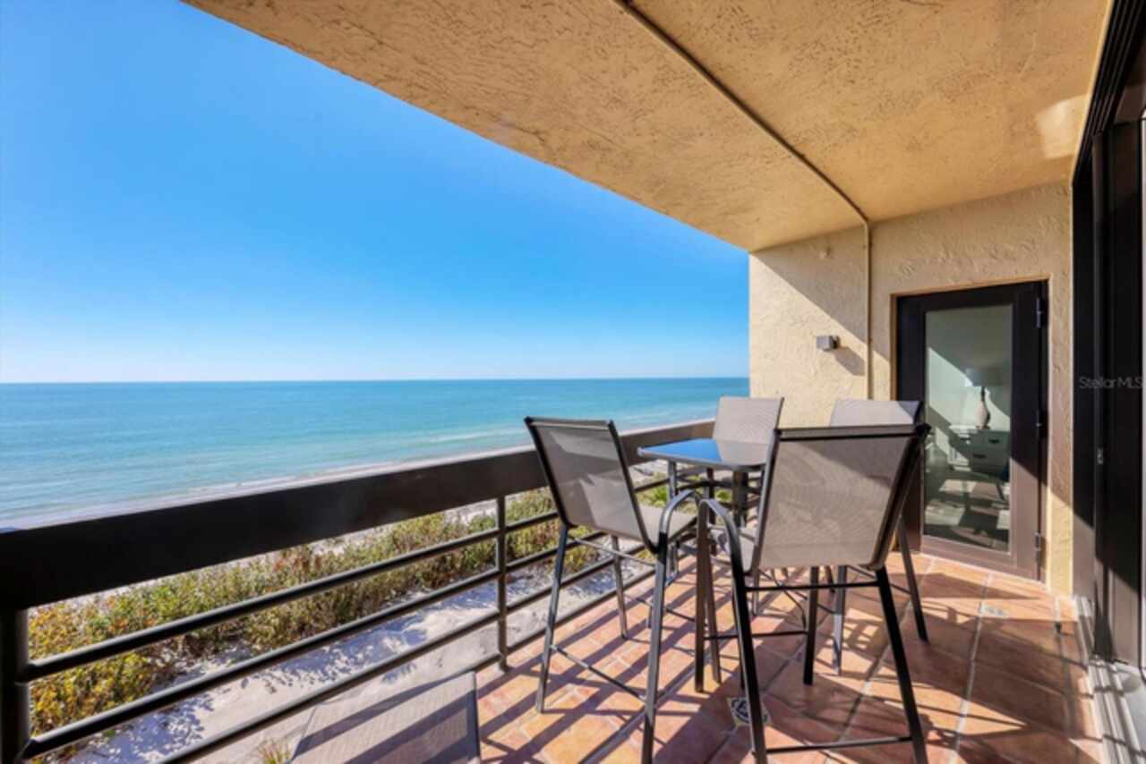 Your Beachfront Oasis Awaits! Unobstructed views of the Gulf of Mexico and Direct access to the beach! Welcome to your perfect getaway at Beachplace, nestled on the world-renowned sands of Longboat Key, just minutes away from the vibrant St. Armands Circle and lively downtown Sarasota. This Resort Style Community offers an array of amenities, including 24/7 manned guard gate, on-site management and maintenance staff, recently renovated Olympic-sized heated pool with lap lanes, heated small pool, spa, fitness center, Har-Tru tennis court day and night, pickleball courts, ping pong, barbeque grilling areas, clubhouse, electric car charging stations, and car wash. The beautifully landscaped grounds are enhanced with lush tropical surroundings and serene walking paths. Umbrellas and lounge chairs for the beach are provided by the Beachplace community. This completely renovated unit is located on the 4th floor reached by elevator or stairs. Recently remodeled, including new entry doors, hurricane proof windows, new flooring, paint, ceiling texture, recessed lighting, new appliances, Quartz counters and new bath vanities. It features spacious living area, thoughtfully designed for comfort and style, where the open concept living room seamlessly connects to the lanai, offering an indoor-outdoor retreat with panoramic ocean views; kitchen with laundry and pantry closets, large island and window for added ventilation; storage or office as an extra space; roomy guest bedroom with attached bathroom, also accessible from the hallway; breathtaking 180-degree Gulf water views from master bedroom with private doors to access the balcony, ensuite bathroom with plenty of closet space, and double vanity. This gorgeous property was used by owners for their vacations and rented for the season. Sold turnkey furnished except for the wall art and some personal items.