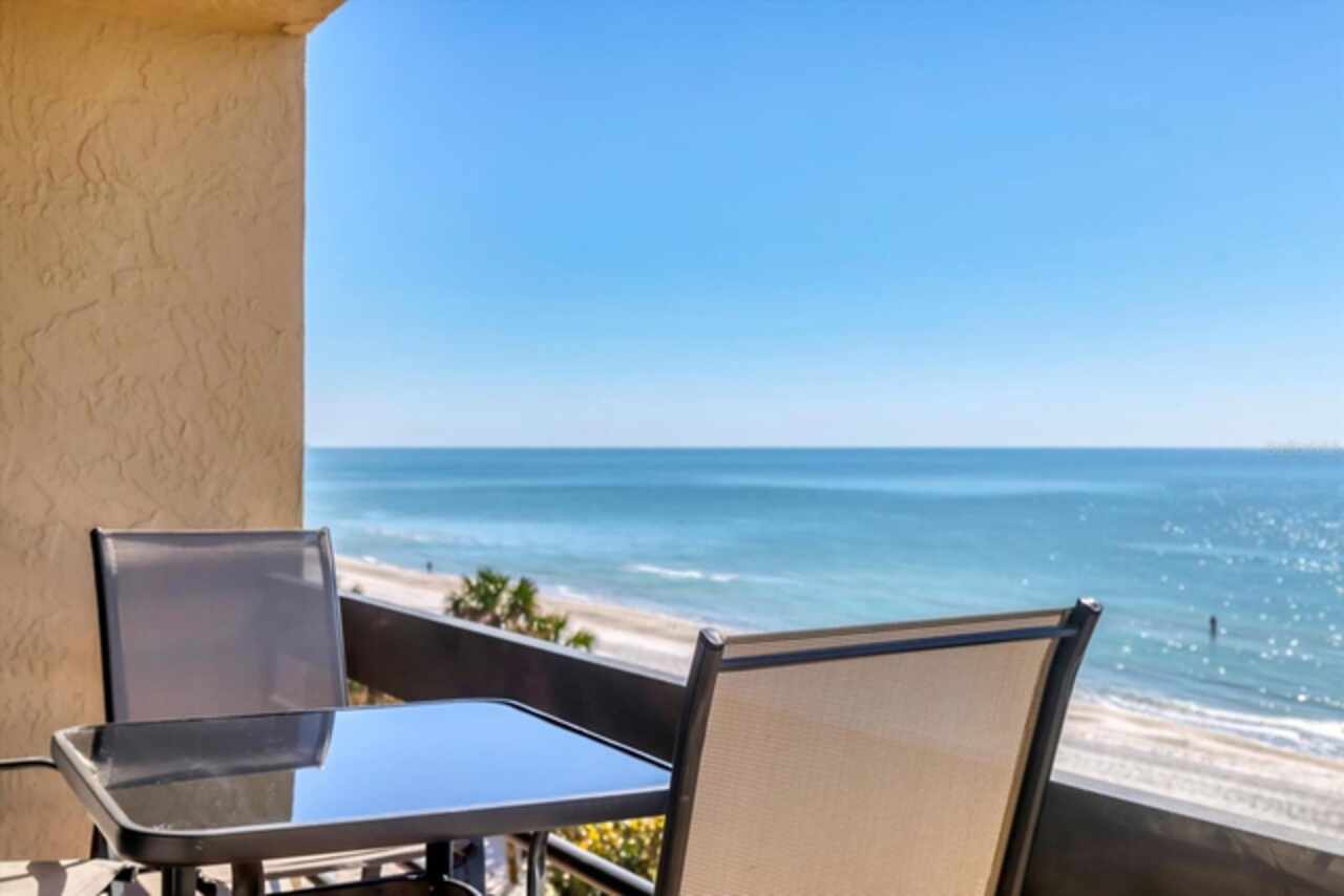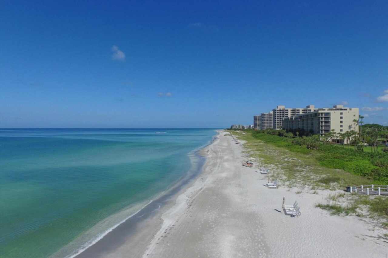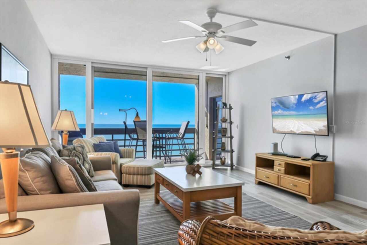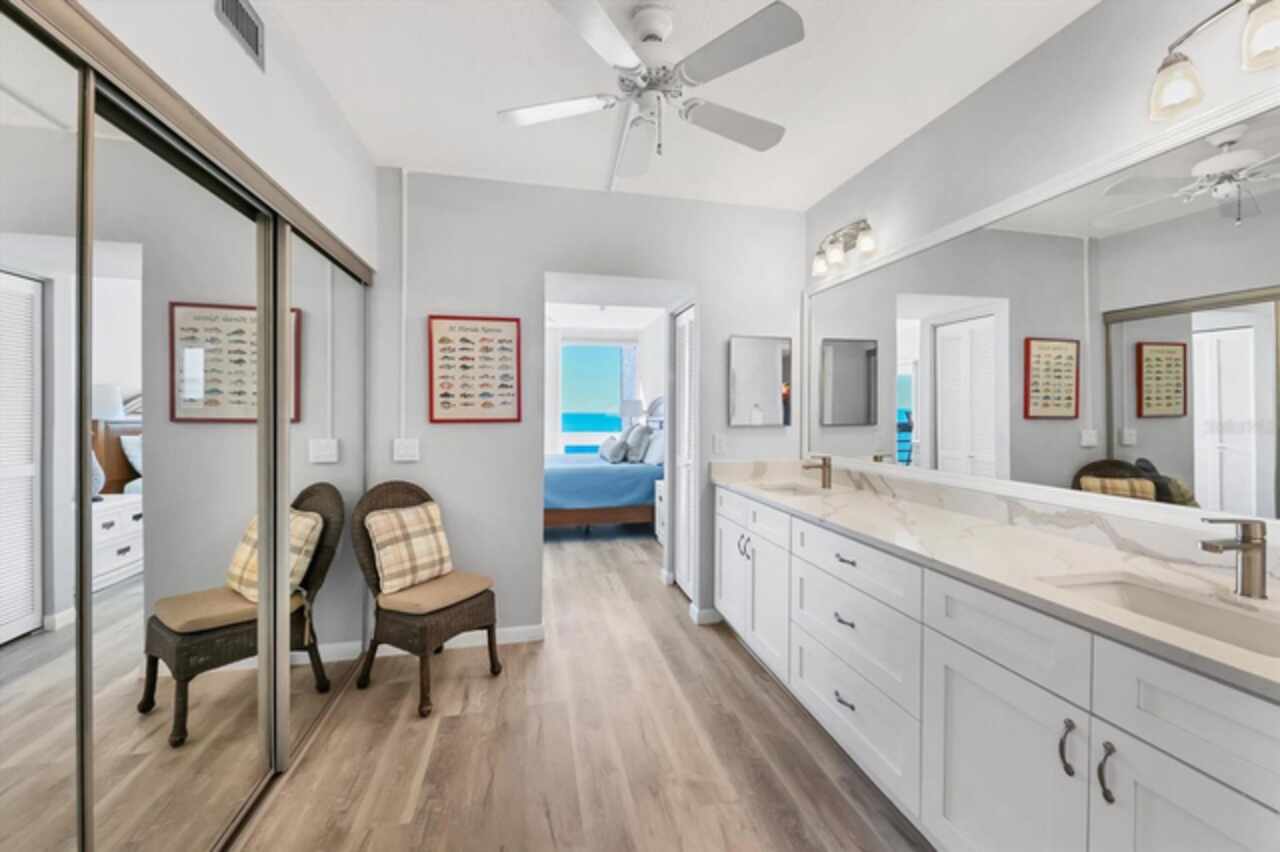 Your Beachfront Oasis Awaits! Unobstructed views of the Gulf of Mexico and Direct access to the beach! Welcome to your perfect getaway at Beachplace, nestled on the world-renowned sands of Longboat Key, just minutes away from the vibrant St. Armands Circle and lively downtown Sarasota. This Resort Style Community offers an array of amenities, including 24/7 manned guard gate, on-site management and maintenance staff, recently renovated Olympic-sized heated pool with lap lanes, heated small pool, spa, fitness center, Har-Tru tennis court day and night, pickleball courts, ping pong, barbeque grilling areas, clubhouse, electric car charging stations, and car wash. The beautifully landscaped grounds are enhanced with lush tropical surroundings and serene walking paths. Umbrellas and lounge chairs for the beach are provided by the Beachplace community. This completely renovated unit is located on the 4th floor reached by elevator or stairs. Recently remodeled, including new entry doors, hurricane proof windows, new flooring, paint, ceiling texture, recessed lighting, new appliances, Quartz counters and new bath vanities. It features spacious living area, thoughtfully designed for comfort and style, where the open concept living room seamlessly connects to the lanai, offering an indoor-outdoor retreat with panoramic ocean views; kitchen with laundry and pantry closets, large island and window for added ventilation; storage or office as an extra space; roomy guest bedroom with attached bathroom, also accessible from the hallway; breathtaking 180-degree Gulf water views from master bedroom with private doors to access the balcony, ensuite bathroom with plenty of closet space, and double vanity. This gorgeous property was used by owners for their vacations and rented for the season. Sold turnkey furnished except for the wall art and some personal items.