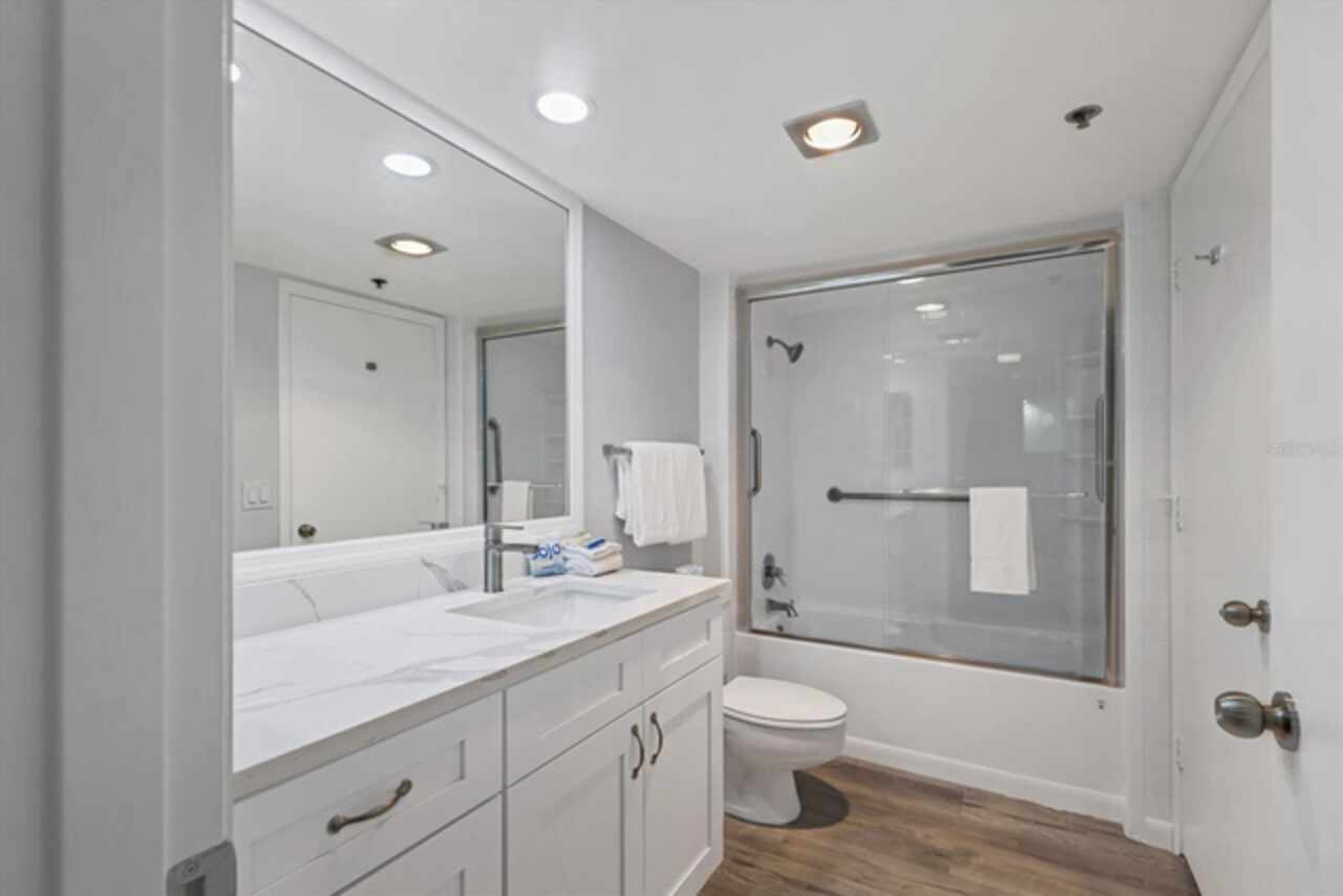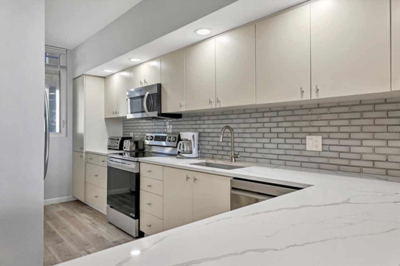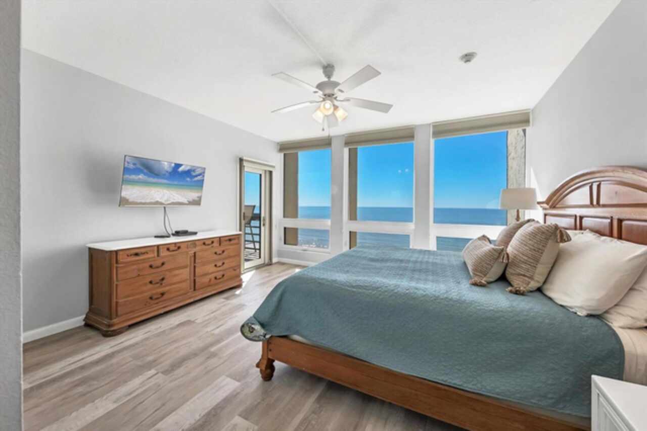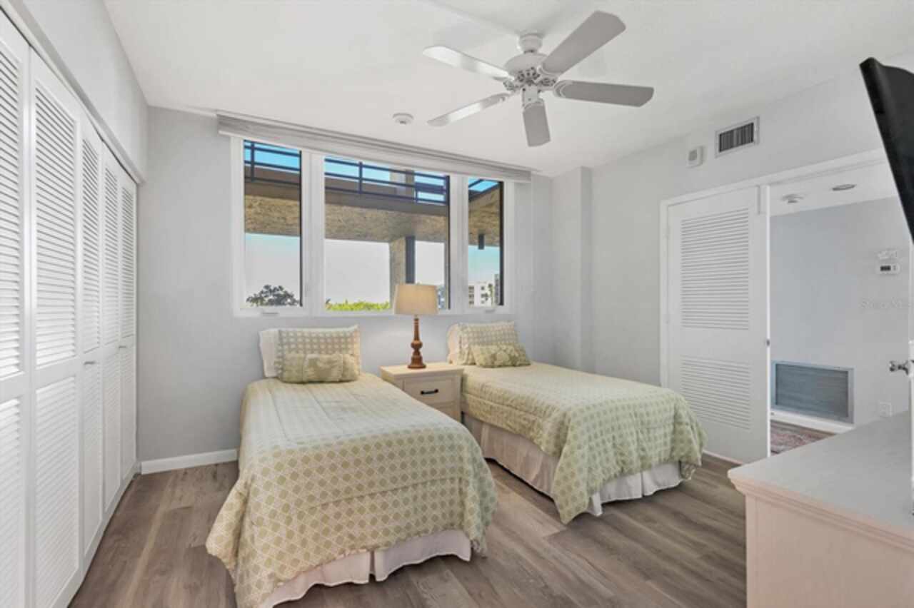 Your Beachfront Oasis Awaits! Unobstructed views of the Gulf of Mexico and Direct access to the beach! Welcome to your perfect getaway at Beachplace, nestled on the world-renowned sands of Longboat Key, just minutes away from the vibrant St. Armands Circle and lively downtown Sarasota. This Resort Style Community offers an array of amenities, including 24/7 manned guard gate, on-site management and maintenance staff, recently renovated Olympic-sized heated pool with lap lanes, heated small pool, spa, fitness center, Har-Tru tennis court day and night, pickleball courts, ping pong, barbeque grilling areas, clubhouse, electric car charging stations, and car wash. The beautifully landscaped grounds are enhanced with lush tropical surroundings and serene walking paths. Umbrellas and lounge chairs for the beach are provided by the Beachplace community. This completely renovated unit is located on the 4th floor reached by elevator or stairs. Recently remodeled, including new entry doors, hurricane proof windows, new flooring, paint, ceiling texture, recessed lighting, new appliances, Quartz counters and new bath vanities. It features spacious living area, thoughtfully designed for comfort and style, where the open concept living room seamlessly connects to the lanai, offering an indoor-outdoor retreat with panoramic ocean views; kitchen with laundry and pantry closets, large island and window for added ventilation; storage or office as an extra space; roomy guest bedroom with attached bathroom, also accessible from the hallway; breathtaking 180-degree Gulf water views from master bedroom with private doors to access the balcony, ensuite bathroom with plenty of closet space, and double vanity. This gorgeous property was used by owners for their vacations and rented for the season. Sold turnkey furnished except for the wall art and some personal items.