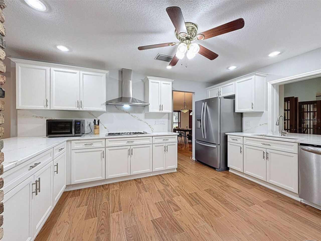 SERENE LUXURY ESTATE LIVING - BEST BUY IN NEIGHBORHOOD, and conveniently located near historic downtown TARPON SPRINGS, FL. Looking for a place with space? Look no further than this custom-built home with a North Carolina flair. From the porch that extends across the entire front of this amazing home to the redwood deck extending across the entire back complete with an in-ground jacuzzi, you have everything you need to enjoy luxury living at its finest. Situated on 1.34 acres, this home has a lovely wood-burning fireplace in the family room, and a chef’s dream kitchen with ALL NEW CABINETS, GORGEOUS QUARTZ COUNTERTOPS WITH GOLD VEINS RUNNING THROUGHOUT, NEW RANGE HOOD, SINK /FAUCET, and OVEN PANEL. The other appliances are within 4 years old. There is a separate eat-in area with a bay window so one can enjoy looking at nature while having breakfast. The family room, just adjacent to the kitchen, features an inlaid wood ceiling and built-in bookshelves, along with a counter area where one can pull up a stool; have a sandwich; and gaze at the newly remodeled kitchen. There is a large living room with double-door entrance and dining area with vaulted ceilings and skylights. There is also an additional formal dining room surrounded by lovely French doors, which features a pass-through window, two large pantry closets, and skylights. The formal dining room provides access to the deck where the inviting jacuzzi resides inside a screen enclosure. The primary bedroom features a sitting area and plantation shutters for added privacy. The primary bathroom has a large garden tub, and a separate shower which was renovated in 2023, that includes grab bars for added safety. There are two above counter bowl sinks on top of the vanity, and there is a separate water closet. The large walk-in closet has plenty of space, as well as the large closet on the other side of the primary bedroom, just off the living room. Lots of stuff? It's no problem for this home. There are two bedrooms on the left side of the house, both containing window seats/boxes for added storage. There is a guest bathroom in this area with granite countertop and above bowl sink. Moreover, there is a tub-shower combo. On the right side of the home, just off the kitchen, there is a fourth bedroom, which can also double as an office. There is an additional bathroom in this area, and it features an above bowl sink over a granite-top vanity and walk-in shower. Unique to this bath is a special octagon accent window. Just off this hallway is the inside laundry room which leads to the spacious garage which features an attic fan and pull-down ladder. The back of the house opens to a patio featuring redwood decking with plenty of room to entertain while taking in the sights and sounds of nature from your private preserve. There is plenty of room in the backyard to add a picnic table, as well as other amenities. Speaking of amenities, Riverside borders Salt Lake, so one can launch their kayak or canoe from the commons area and take in a sunset paddle and not even leave the neighborhood. This community is approximately 2 miles East of historic downtown Tarpon Springs, and not far from Pinellas County's pristine beaches and Tampa Airport. And for those who enjoy biking, the Pinellas Trail is a mere stones-throw away. DON'T MISS OUT ON THIS ONE-OF-A-KIND LUXURY COMMUNITY WITH ACREAGE, NEAR EVERYTHING YOU NEED! THIS PROPERTY IS PRICED TO MOVE! Note: Property did not flood during hurricanes.