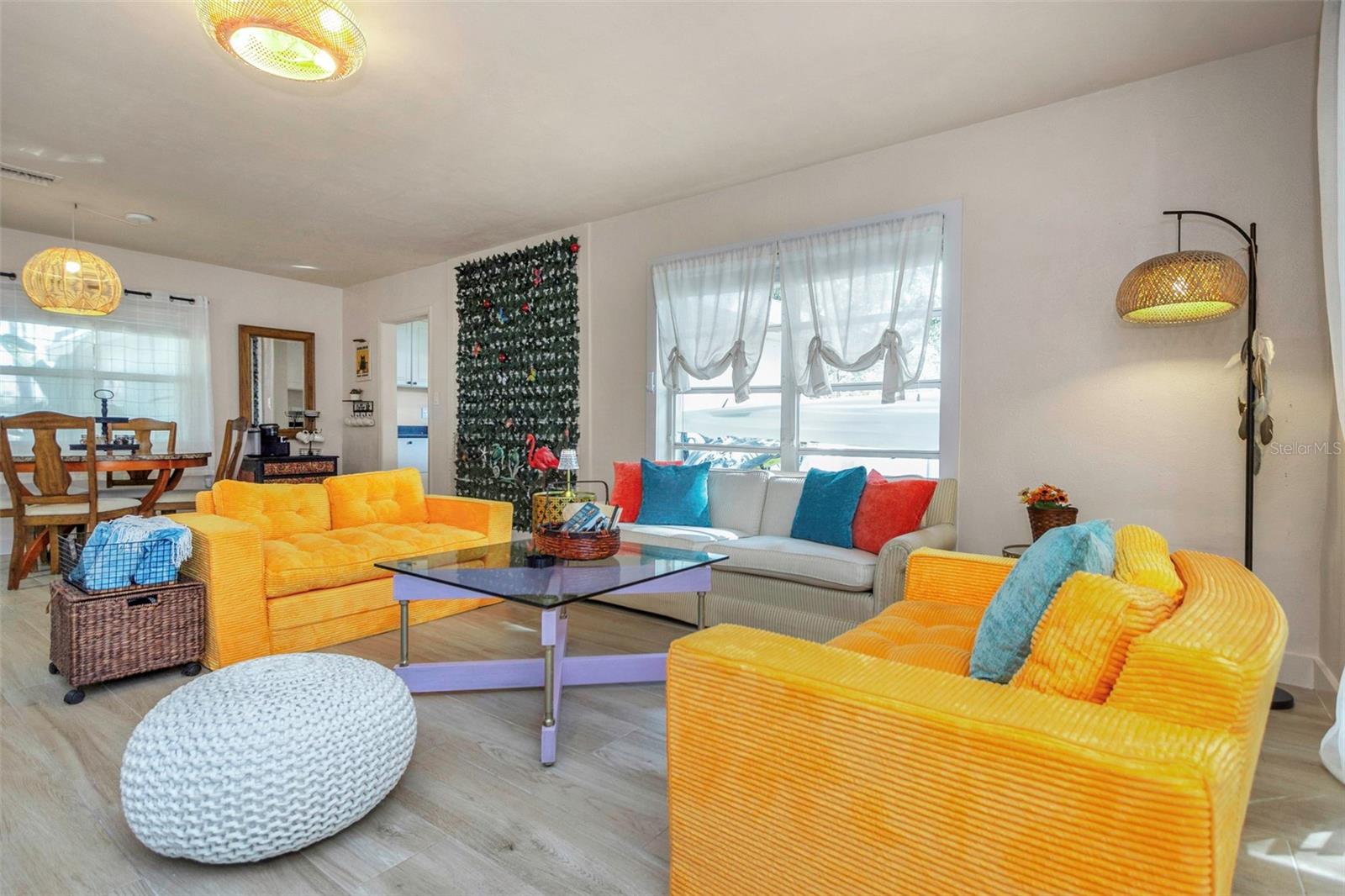 This charming home is more than a place to live, it’s a lifestyle. A coastal retreat ready for fun, relaxation, and unforgettable moments. Live steps from Old Clearwater Bay, this fully furnished coastal retreat invites you to watch sunsets over the water, spot playful dolphins or manatees, and enjoy the best of the quaint Dunedin living. Nestled on a quiet corner lot, it’s less than a mile from local restaurants, boutique shopping, and vibrant community events year round. Vine accents on the exterior create instant curb appeal, while inside, a thoughtfully designed accent wall ties the living spaces together with style and warmth. The kitchen features new appliances, generous counter space, and plenty of cabinets, perfect if you love to cook or entertain. The primary suite is a private haven with space to unwind, and an ensuite with a walk-in shower. Two additional bedrooms have terrazzo flooring and share a beautifully updated guest bath. Family time comes alive in the oversized 2-car garage, complete with new epoxy flooring and a ping pong table which is ideal for lively game nights or casual play. Outdoors, the screened lanai overlooks a large backyard, perfect for relaxing, or enjoying quiet evenings under the stars. Adventure is right outside your door. Take the nearby Pinellas Trail for a bike ride or walk, or head to award winning BEACHES: Clearwater Beach, Honeymoon Island, and Caladesi Island for boating, kayaking, fishing, and sun-filled beach days. Recent updates include: Roof (2024), Appliances (2024), HVAC (2022), Electrical (2022), Doors (2022), Vinyl Fence (2020). See... Fall in LOVE... Make it YOUR own!!!