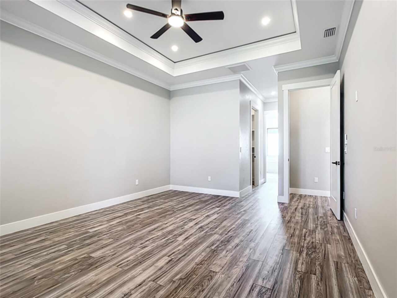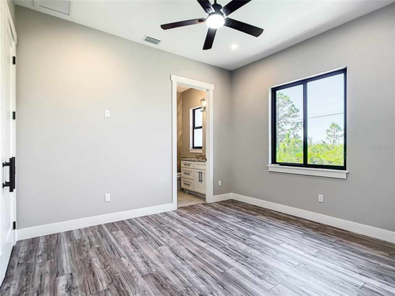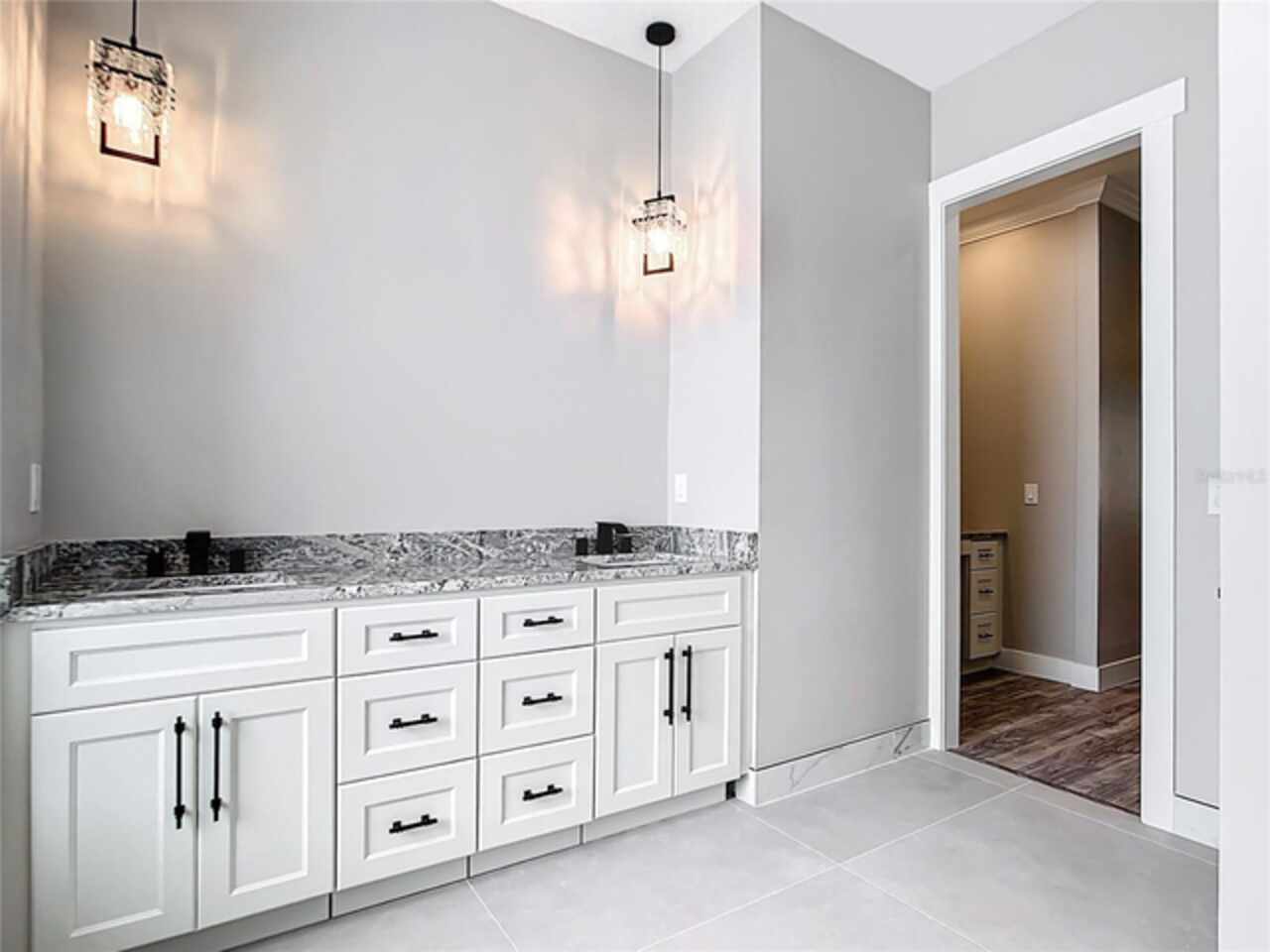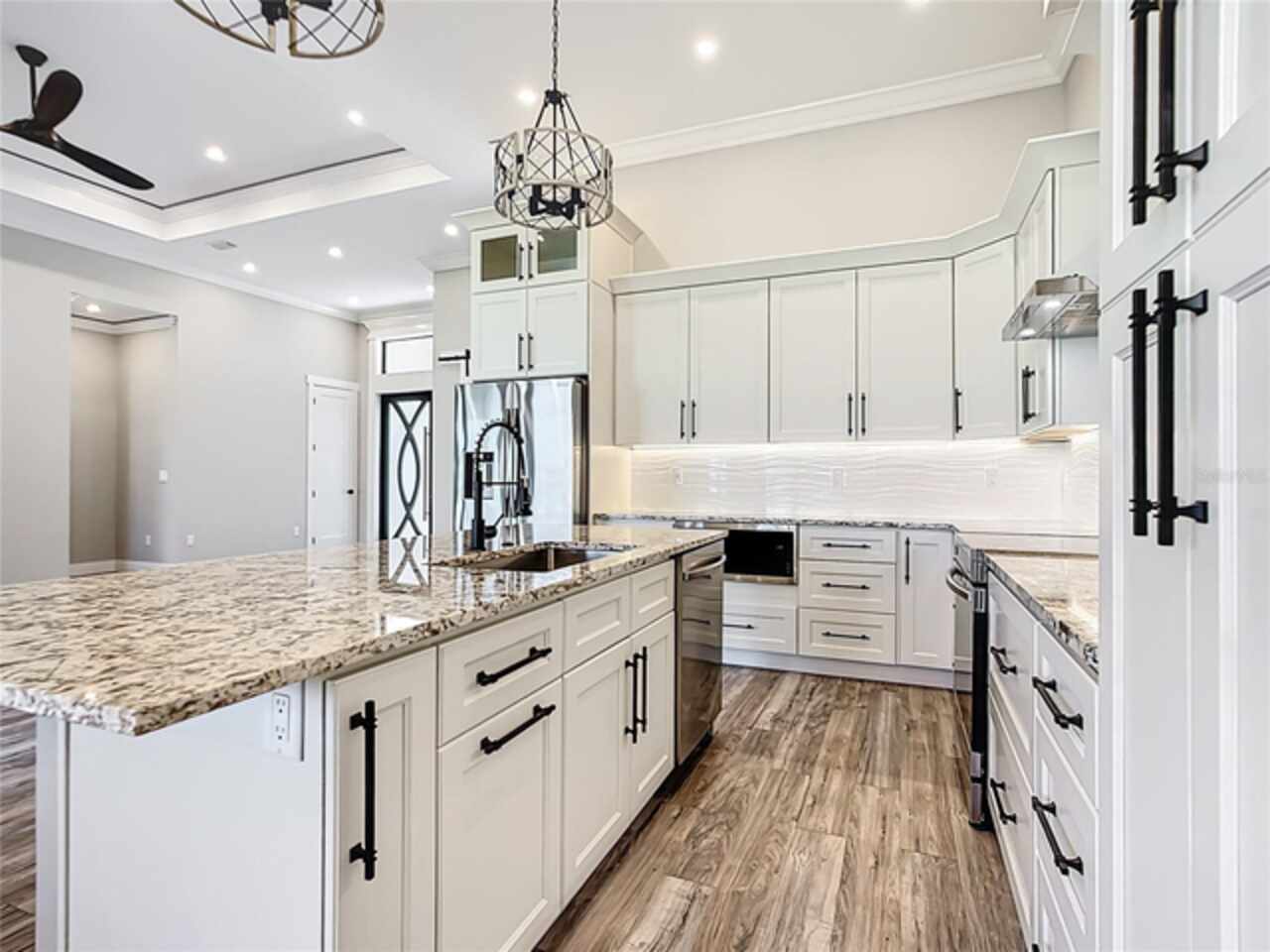 This brand new luxury 3 bedroom, 3-bathroom and a 3 car garage house, is a single-family home of 2, 150 sq. of open living space with high ceilings. The kitchen has upgraded granite countertops with large counter island, along with a HIDDEN WALKTHROUGH CABINET pantry and plenty of cabinet space. The Master Bedroom includes oversized walk-in closet with build in shelves, HAS MAKEUP AREA, separate sink vanities, enormous wall-to-wall walk-in shower and private water closet, and oversize free standing bath tub. Guest bedroom with its own ensuite bathroom, build in closet shelves. Ecofriendly and smart home, surround with security cameras, HURRICANE PROOF WINDOWS AND DOORS, sound isolation from outside noise, GARAGE EPOXY FLOOR COVERINGS . Large lanai area with space designed for OUTDOOR KITCHEN.