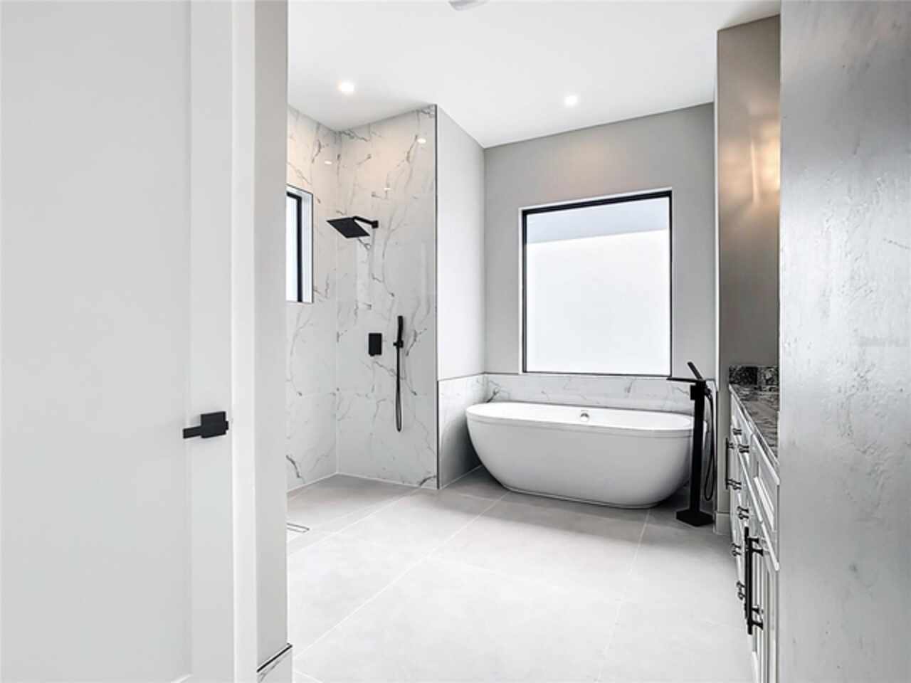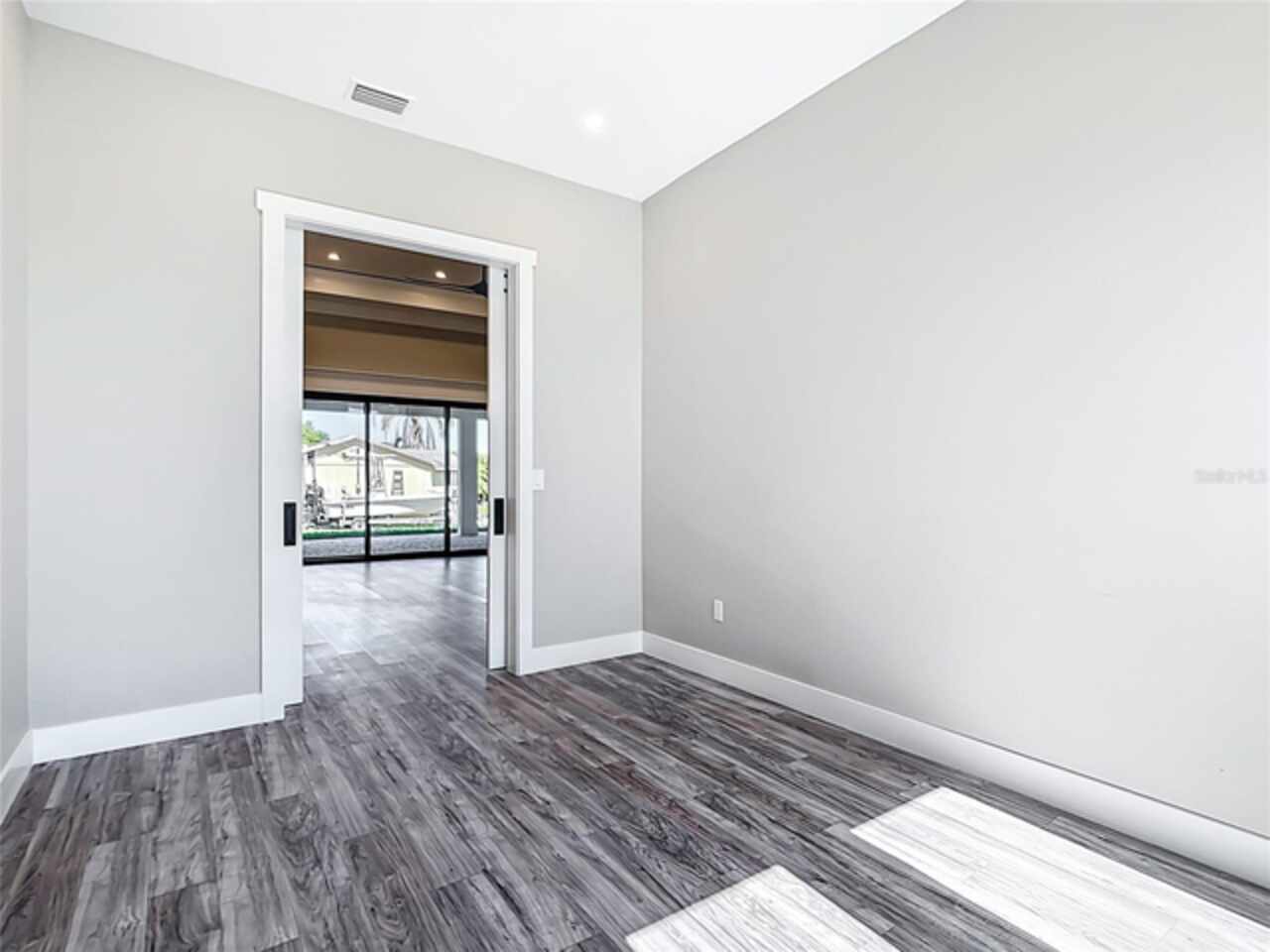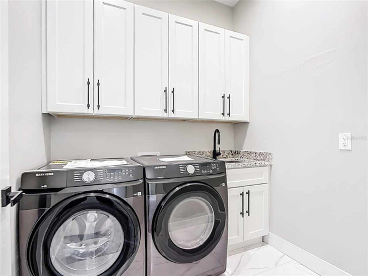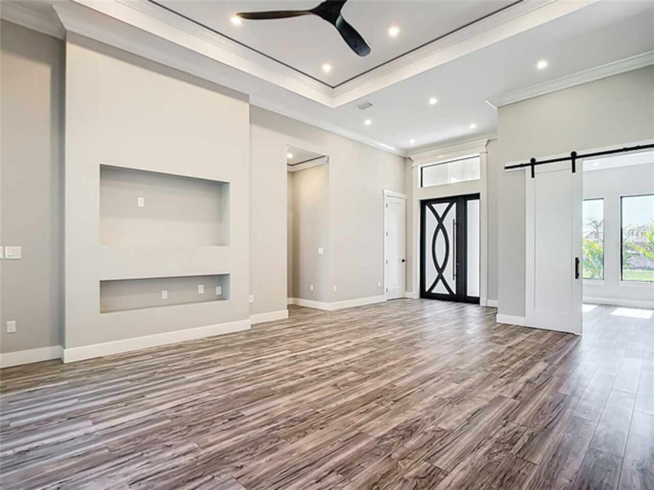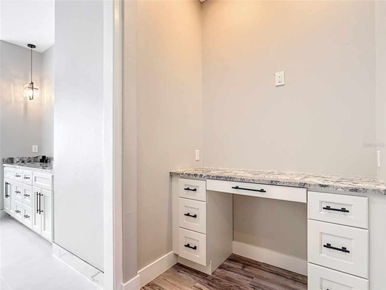 This brand new luxury 3 bedroom, 3-bathroom and a 3 car garage house, is a single-family home of 2, 150 sq. of open living space with high ceilings. The kitchen has upgraded granite countertops with large counter island, along with a HIDDEN WALKTHROUGH CABINET pantry and plenty of cabinet space. The Master Bedroom includes oversized walk-in closet with build in shelves, HAS MAKEUP AREA, separate sink vanities, enormous wall-to-wall walk-in shower and private water closet, and oversize free standing bath tub. Guest bedroom with its own ensuite bathroom, build in closet shelves. Ecofriendly and smart home, surround with security cameras, HURRICANE PROOF WINDOWS AND DOORS, sound isolation from outside noise, GARAGE EPOXY FLOOR COVERINGS . Large lanai area with space designed for OUTDOOR KITCHEN.