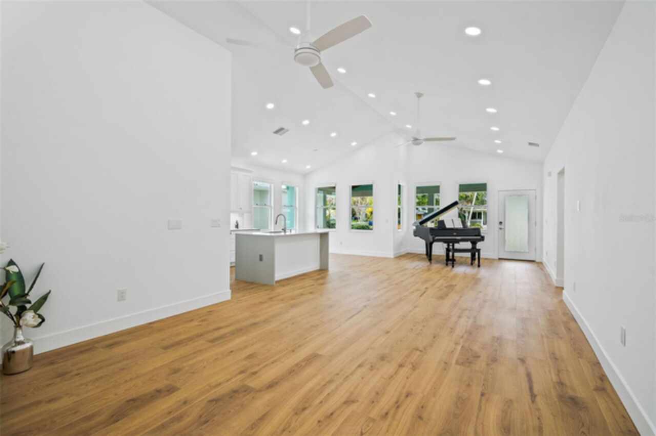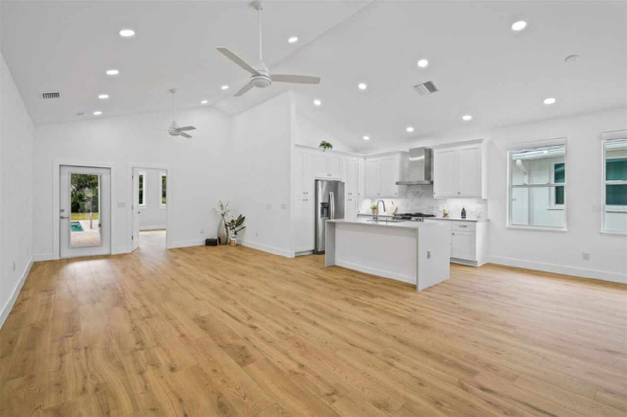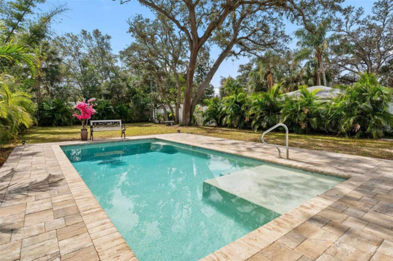 DRASTIC PRICE REDUCTION! Gorgeous new construction (2023) POOL HOME 3/2 just one block from Intercoastal! Situated in one of the nicest area of Clearwater, walking and bicycling distance from Downtown Dunedin and only 7 minutes from Downtown Clearwater. Open floor plan with split bedrooms and cathedral high ceilings thorough the home. The light and open space of this beautiful home is breathtaking. It features a spacious, ceiling insulated, back porch great for entertaining and a beautiful salt water pool surrounded by mature vegetation that give you lots of privacy and that overlooks an extra deep backyard. Home was newly rebuild and upsized and it was completed in 3/2023. Top of the line construction and upscale finishes. You have to see it this gorgeous home in person to appreciate how beautiful it looks and appreciate all the details. Also plans done for future additional detached dwelling unit in the oversized backyard.
