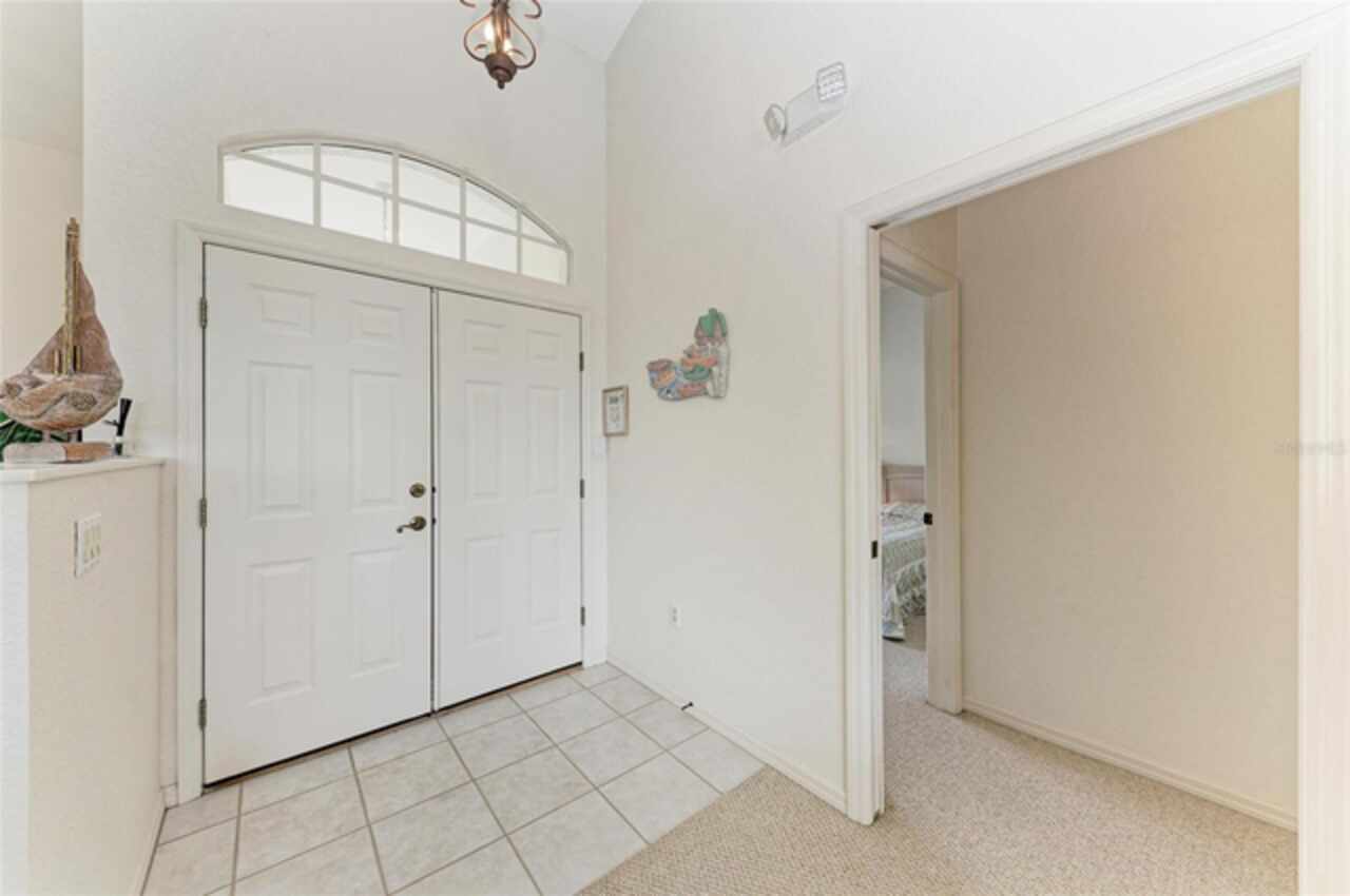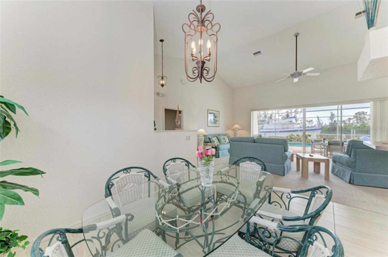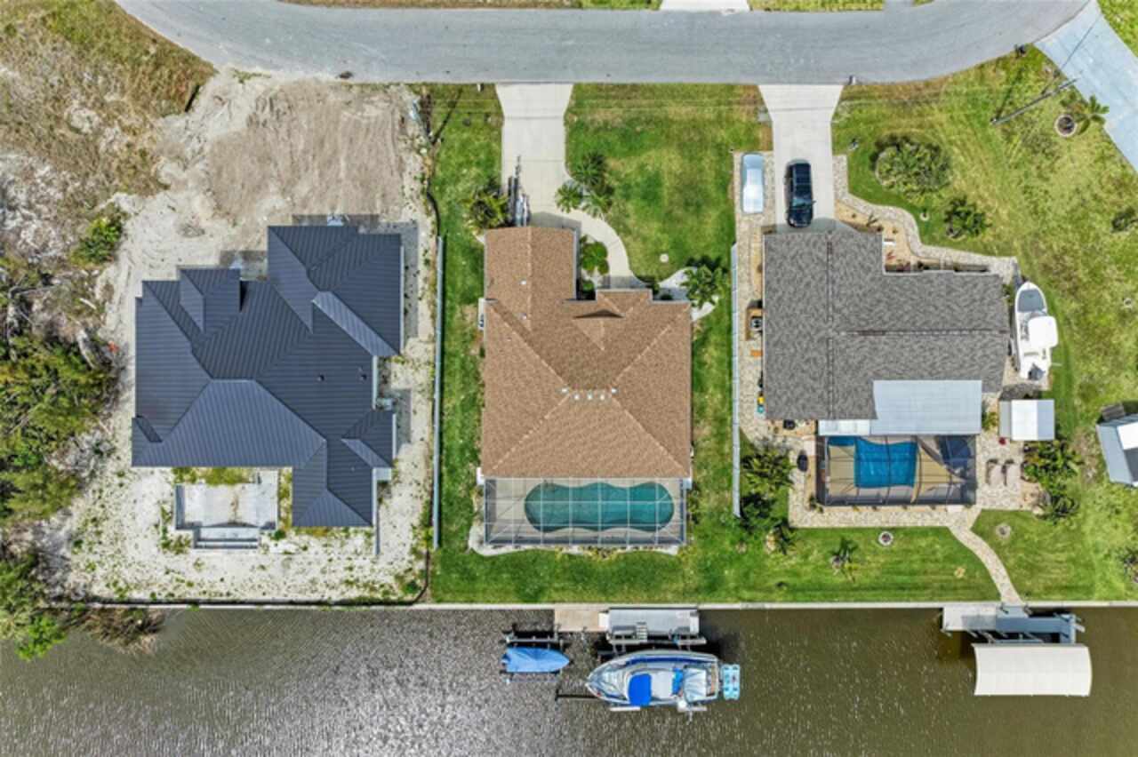 This waterfront home offers breathtaking, unobstructed views across the serene Santa Cruz Canal to a designated preserve area, ensuring privacy and tranquility. Abutting sailboat waters, this property provides the ideal setting for waterfront living. Upon arriving, you’re greeted by a pristine white vinyl fence that runs from the front down both sides of the home, leading to the spacious lanai. Step through double doors into a tiled entryway, where natural light pours in through the transom above, illuminating the soaring cathedral ceiling. The expansive open floor plan flows seamlessly between the kitchen, dinette, and great room, creating an inviting and airy space perfect for both everyday living and entertaining. The kitchen-dinette combo features rectangular tile floors, a convenient pantry, breakfast bar, and all essential appliances. The adjacent great room is carpeted and opens up through sliders, inviting in fresh air and sunlight, enhancing the light, bright ambiance of the home. For privacy, two guest bedrooms are tucked away behind a pocket door, creating a quiet retreat. One of these rooms boasts an ensuite bath with a shower stall, single vanity, and serves as the pool bath with convenient access from the lanai. The second guest bath, located in the hallway, features a single vanity and a combo tub/shower unit. The spacious primary bedroom, located on the opposite side of the home, is a private sanctuary with two sets of sliders leading directly to the lanai and pool area. The suite also offers his-and-her walk-in closets and an ensuite bath with a double vanity, separate tub, and shower, all accented with wall to wall carpet. Step outside to discover your own private oasis—an oversized heated pool (approximately 36' x 12') with a cool deck that promises comfort underfoot. The lanai (22' x 11') and pool area are screened, ensuring peaceful enjoyment of the beautiful views and refreshing breezes. At water's edge, a two-tiered dock (26' x 6') with dual boat lifts (40K lbs & 6K lbs) awaits your watercraft, making this home a true boater's dream. The canal waters also flow through the property’s sprinkler system, keeping your landscaping lush and vibrant year-round. Recent upgrades include a new pool pump, irrigation pump, and water heater all replaced in 2025, and a new roof installed in 2022. With several airports in southwest Florida nearby, as well as a wealth of dining, hiking and biking trails, and Gulf Coast beaches, this location provides both convenience and recreation. The area is renowned for world-class tarpon fishing and abundant outdoor activities. This is a great opportunity to own a waterfront property that blends comfort and privacy with nature's beauty. Bring your vision to life and start living the waterfront lifestyle you deserve.