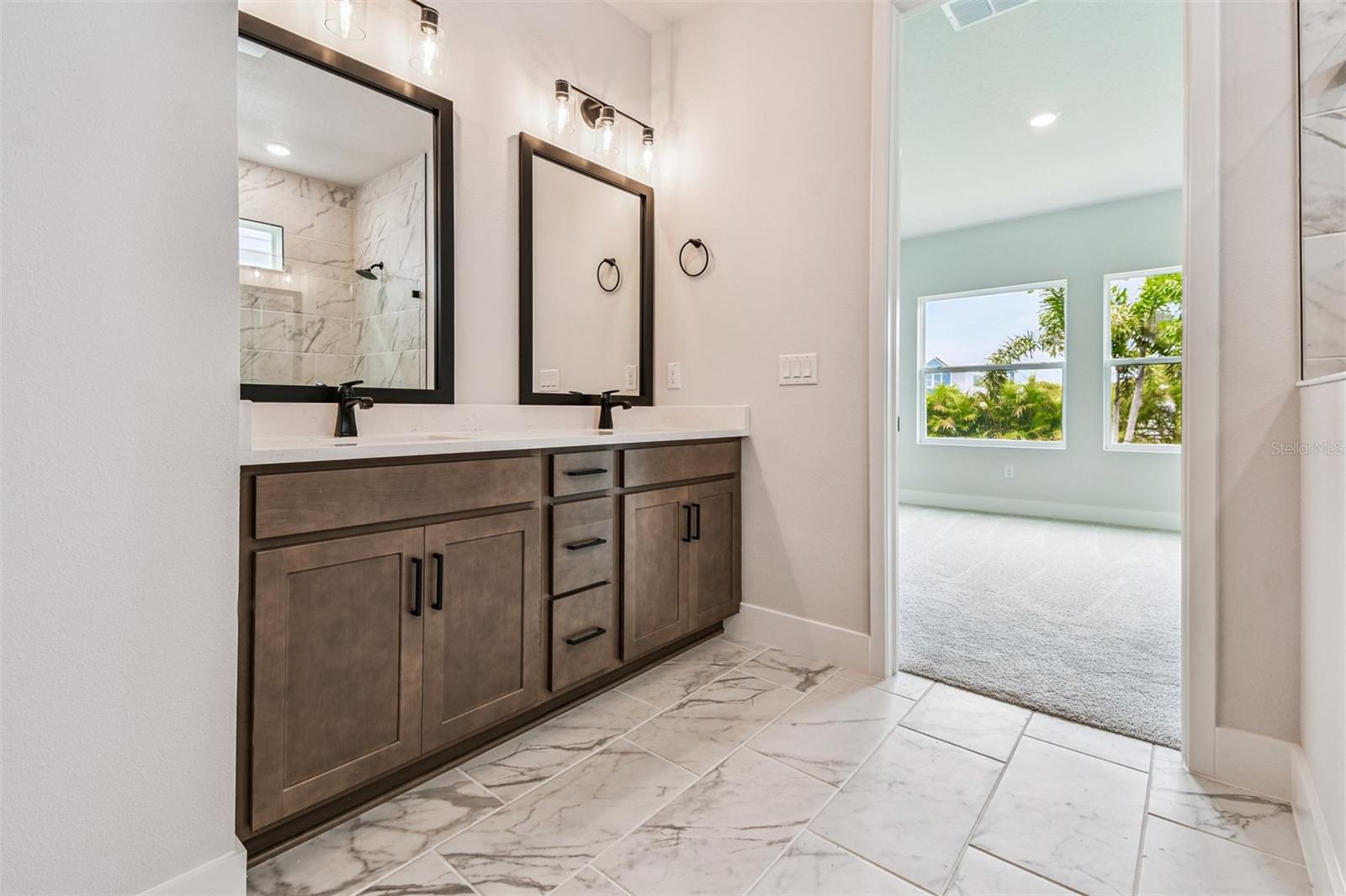 Welcome to The Zander, where comfort and innovative design come together in a striking open layout. Situated on a desirable corner lot with a rear fence and lush areca palms, this home offers added privacy and a touch of natural seclusion to enjoy Florida living at its best. This impressive two story residence features 4 bedrooms, 3.5 bathrooms, a generous upstairs retreat, and a 2 car garage, making it an ideal sanctuary for both family living and entertaining. From the moment you step inside, you are greeted by a stunning 19 foot grand ceiling, with natural light flooding through expansive windows that line the staircase. The open concept design fluidly connects the dining area and kitchen, with sunlight enhancing the home’s inviting atmosphere. At the heart of The Zander lies a chef inspired kitchen, complete with 42 inch upper cabinets, elegant quartz countertops, a cooktop, stainless steel hood, and an undermount sink, perfect for gatherings and culinary creativity. A spacious walk in pantry with custom wood shelving adds both charm and functionality, giving you an organized and beautiful space to store everything you need. The family room flows seamlessly onto the lanai and backyard, extending your living space outdoors. The owners suite, privately situated on the first floor, serves as your personal retreat. Its en suite bath rivals a luxury spa, featuring a super shower, double sink vanity with quartz countertops, and a spacious walk in closet designed for comfort and indulgence. Upstairs, you will discover three generously proportioned bedrooms, two full baths, and a roomy retreat, ideal for movie nights, playtime, or a home office. The overlook into the dining area below adds an element of architectural charm. Nestled in the highly desirable North River Ranch community of Parrish, FL, The Zander offers more than just a home, it delivers a lifestyle. Enjoy resort style amenities, community trails, pools, fitness, and a true neighborhood spirit that makes every day feel connected. Experience the bold beauty and thoughtful design of The Zander for yourself. Schedule your tour today and make this extraordinary home yours. **When you purchase a select David Weekley Quick Move-in Home in the Tampa, Manatee and Sarasota area from September 1 – December 31, 2025, qualified buyers may be eligible for a starting rate as low as 3.99% (4.271% APR) when the home purchase is financed with a conventional 7/6 adjustable rate mortgage home loan from our preferred lender.