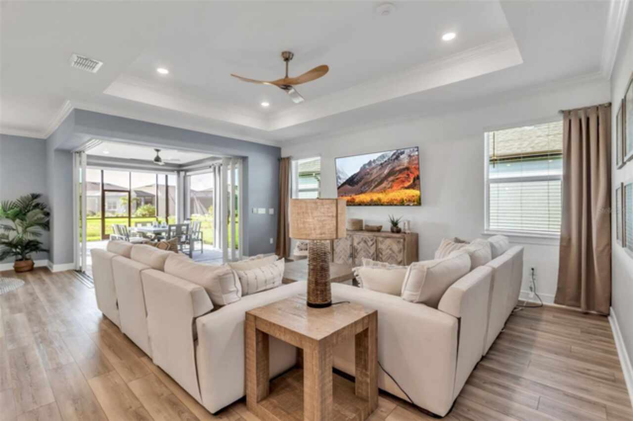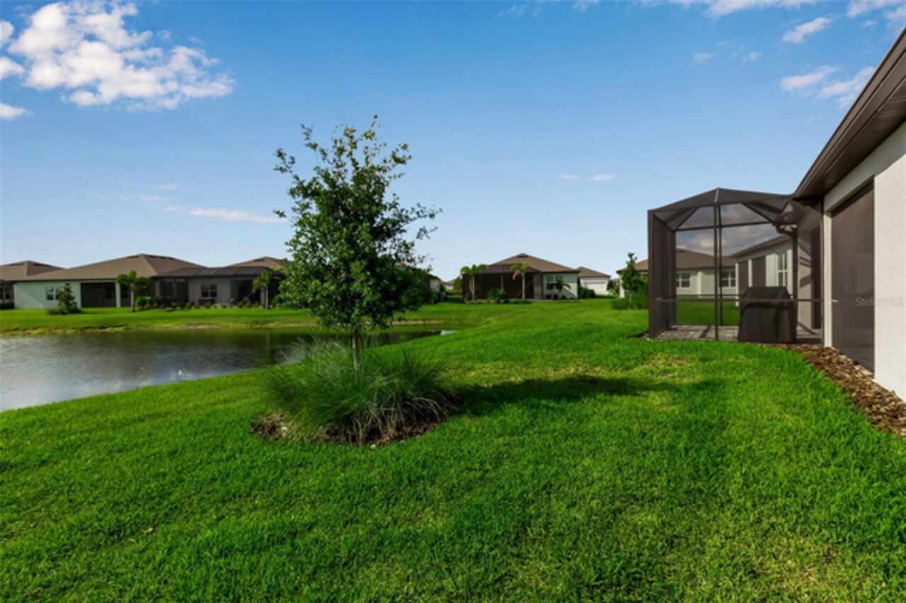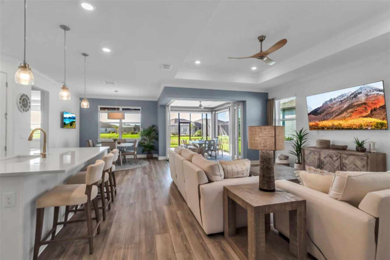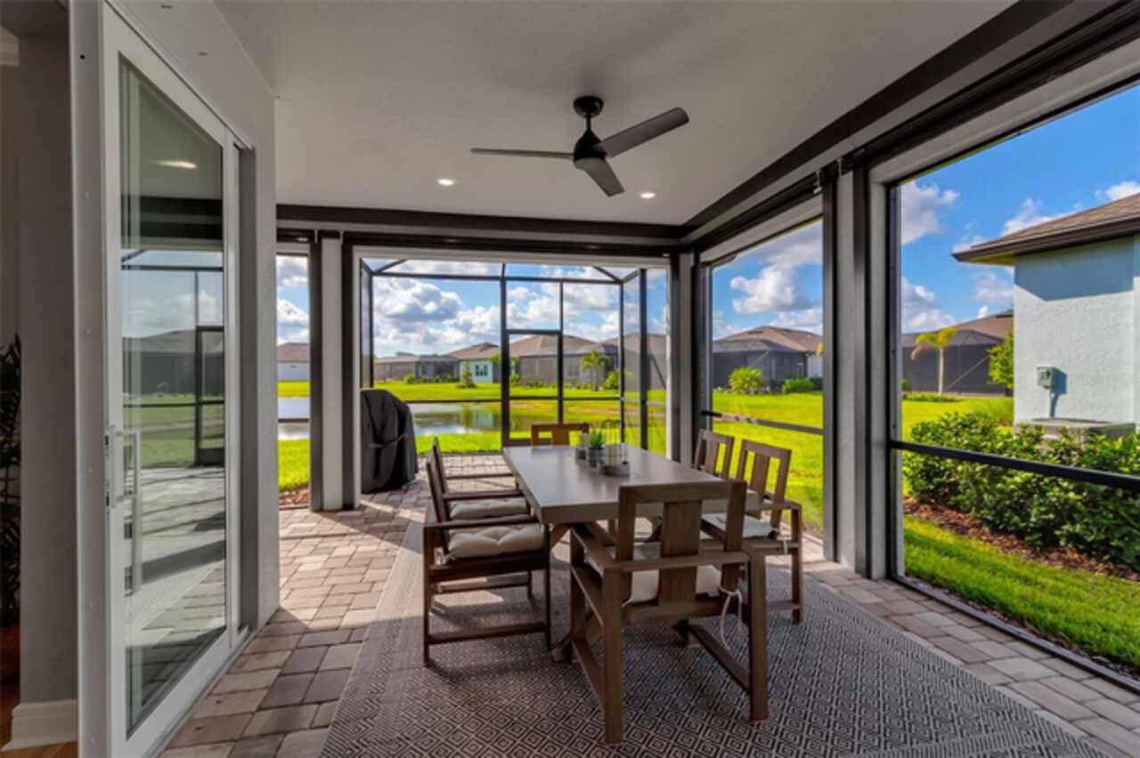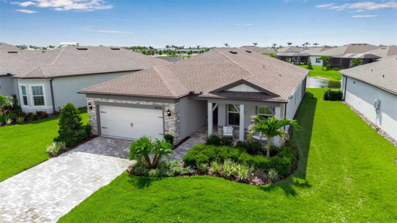 HUGE PRICE REDUCTION!!!! Upgrades Galore in this 3/3 in Parrish!! Welcome to your dream home in the premier 55+ community - Del Webb BayView! This beautifully designed Mystique model offers the upgraded 3 spacious bedrooms, 3 full bathrooms, stone facade, and refined living spaces ideal for both entertaining and everyday comfort. You’ll love the gourmet kitchen with granite countertops, modern cabinetry, and stainless-steel appliances. The main living area features an open-concept that flows seamlessly through the zero corner slider into the enclosed porch. The screened lanai with one-touch automatic "Storm Smart®" hurricane shutters is the perfect space for enjoying Florida evenings and breathtaking pond views. Designer furnishings and luxury finishes throughout make the interior feel second to none (fully furnished sale is optional and negotiable). Del Webb's BayView Community Amenities include, resort-style luxury pool with ample lounging areas, state-of-the-art Pickleball courts, tennis courts and activities for active living, and the Sailfish Restaurant – an exclusive on-site dining experience. Grounds also contain a fitness center, clubhouse, walking trails, and a calendar full of social events. This meticulously maintained home is the perfect blend of luxury, convenience, and low-maintenance living in one of Parrish’s most desirable active adult communities.