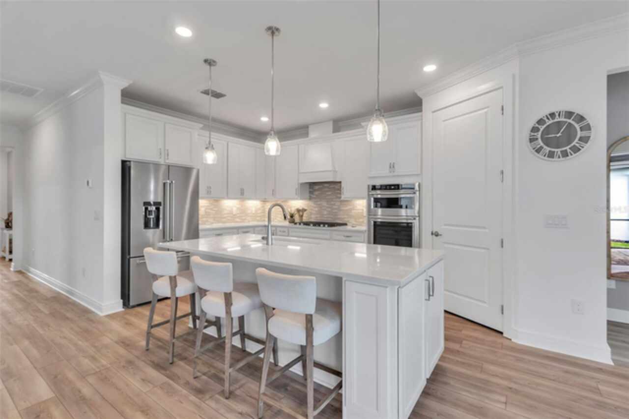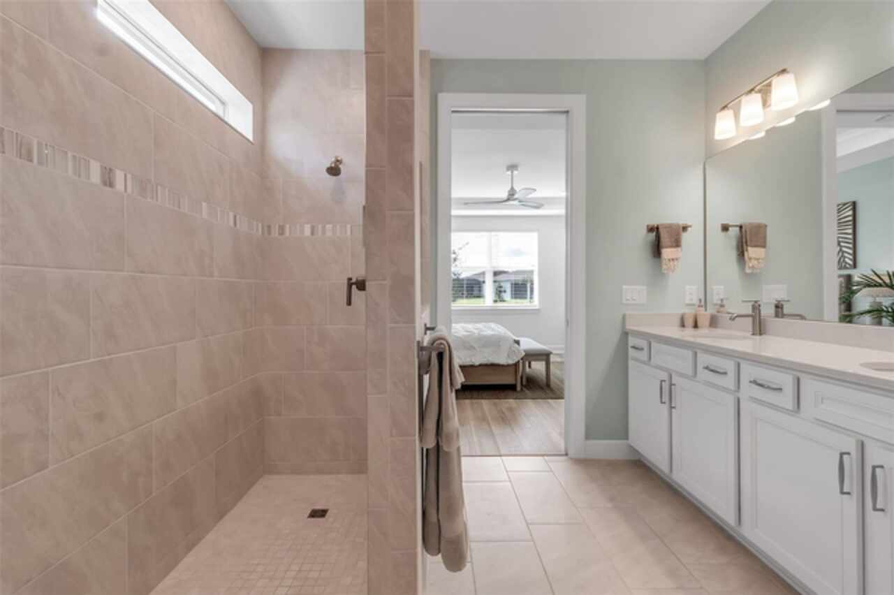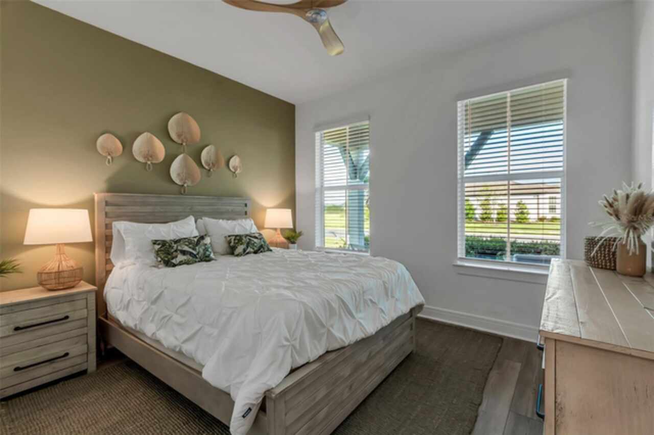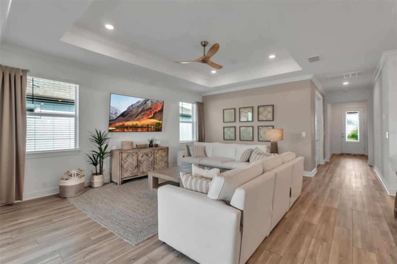 HUGE PRICE REDUCTION!!!! Upgrades Galore in this 3/3 in Parrish!! Welcome to your dream home in the premier 55+ community - Del Webb BayView! This beautifully designed Mystique model offers the upgraded 3 spacious bedrooms, 3 full bathrooms, stone facade, and refined living spaces ideal for both entertaining and everyday comfort. You’ll love the gourmet kitchen with granite countertops, modern cabinetry, and stainless-steel appliances. The main living area features an open-concept that flows seamlessly through the zero corner slider into the enclosed porch. The screened lanai with one-touch automatic "Storm Smart®" hurricane shutters is the perfect space for enjoying Florida evenings and breathtaking pond views. Designer furnishings and luxury finishes throughout make the interior feel second to none (fully furnished sale is optional and negotiable). Del Webb's BayView Community Amenities include, resort-style luxury pool with ample lounging areas, state-of-the-art Pickleball courts, tennis courts and activities for active living, and the Sailfish Restaurant – an exclusive on-site dining experience. Grounds also contain a fitness center, clubhouse, walking trails, and a calendar full of social events. This meticulously maintained home is the perfect blend of luxury, convenience, and low-maintenance living in one of Parrish’s most desirable active adult communities.