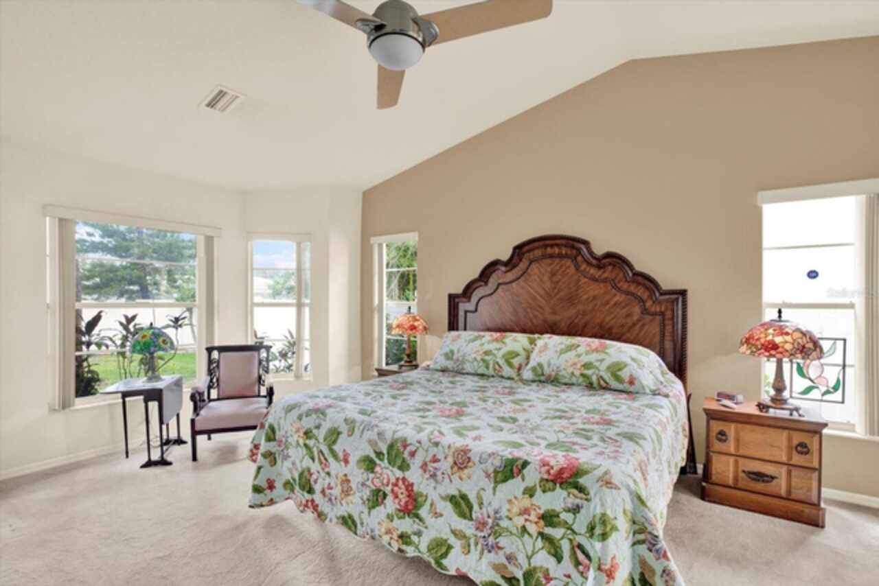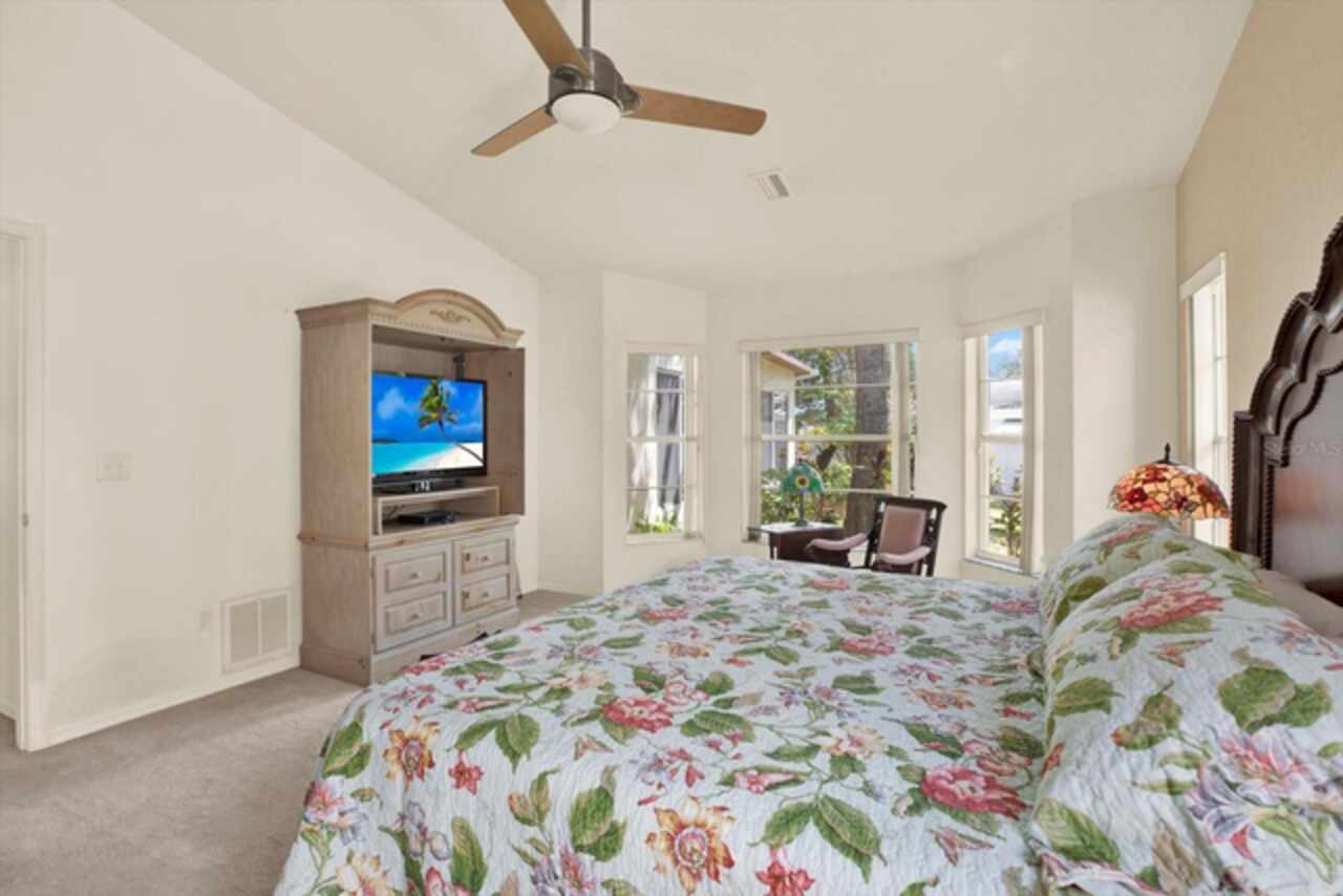 Cathedral Ceiling(s), Ceiling Fans(s), Primary Bedroom Main Floor, Thermostat, Walk-In Closet(s), Window Treatments