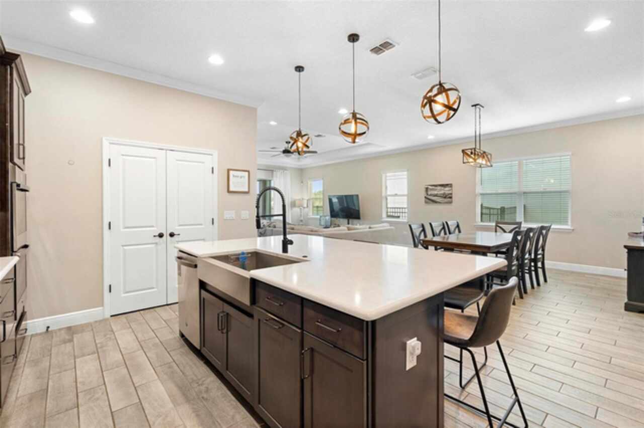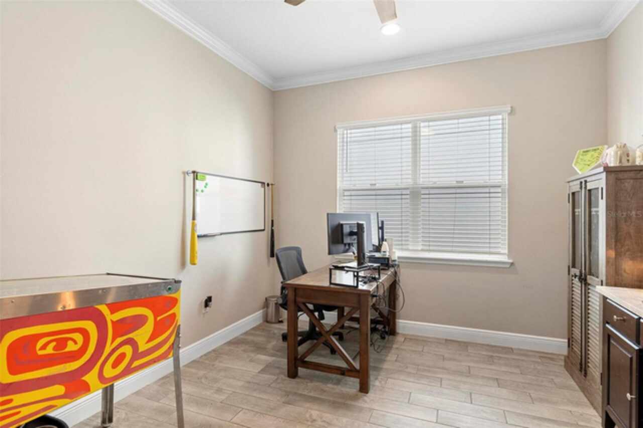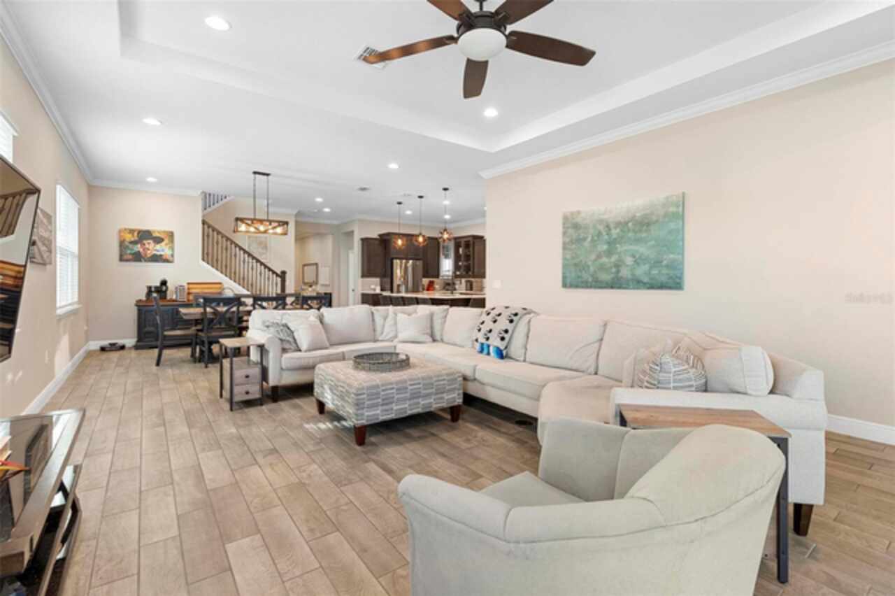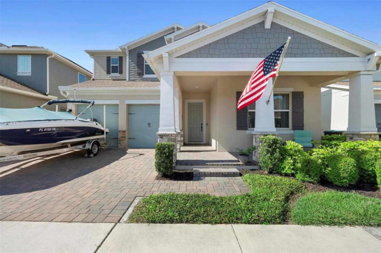 Live the Florida Dream! Welcome to the (en)suite life — luxury, comfort, and sunsets await! Built in 2020, this stunning 2-story POOL home sits in a sought-after Horizon West community with LOW HOA FEES — modern living and great value combined. Inside, enjoy elegant crown molding throughout and the spacious Grayson floorplan with a rare 3-CAR TANDEM GARAGE . The gourmet kitchen features a huge island and stone countertops — perfect for gatherings and everyday living. The first-floor Owner’s Suite offers peaceful pool and pond views, a tray ceiling, and a spa-like bath. A second ensuite bedroom downstairs is ideal for guests or multi-gen living, plus a private office for work or study. Upstairs, you’ll find three more bedrooms ( two ensuites ) with walk-in closets, a large loft for games or play, and a theater/media room for movie nights. Step out to your screened-in pool overlooking tranquil pond views — the perfect sunset backdrop for relaxing or entertaining. This move-in ready oasis has room for everyone and is priced to sell fast — schedule your private tour today! Home is where your story begins — let me help you start your story!