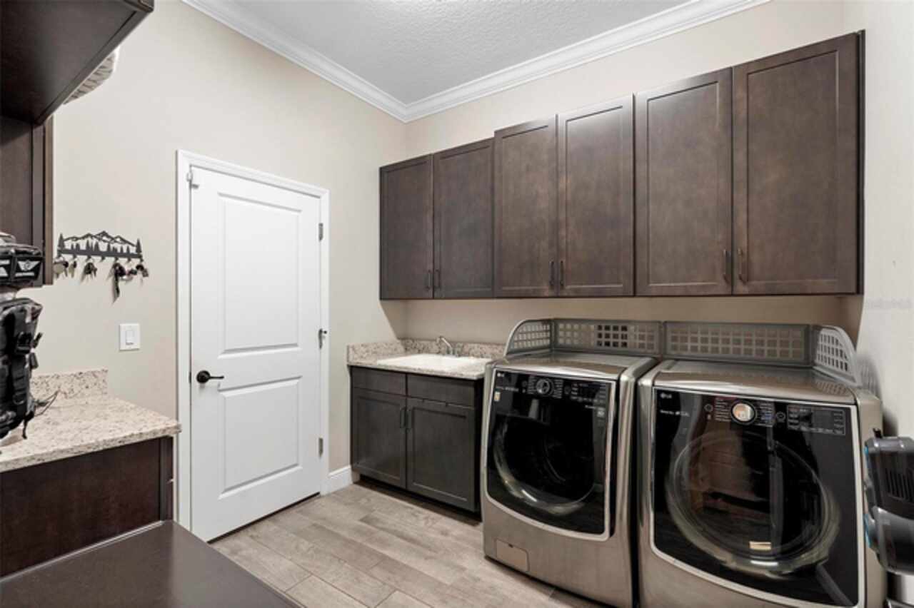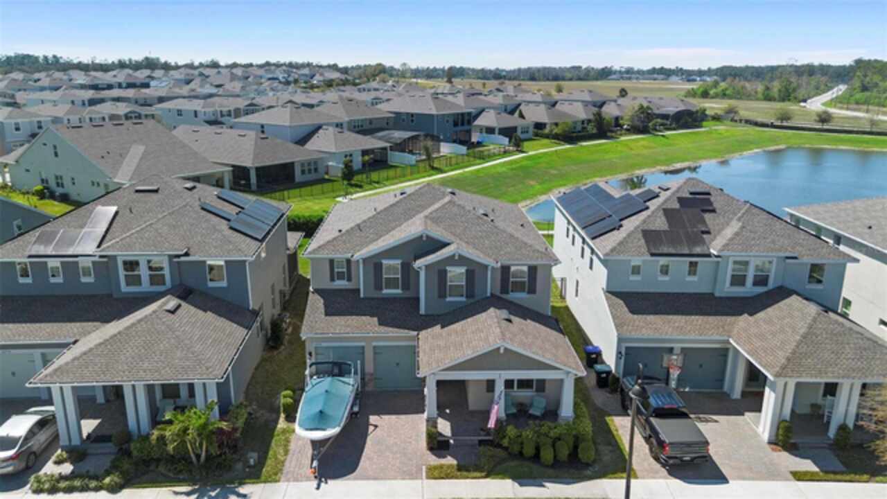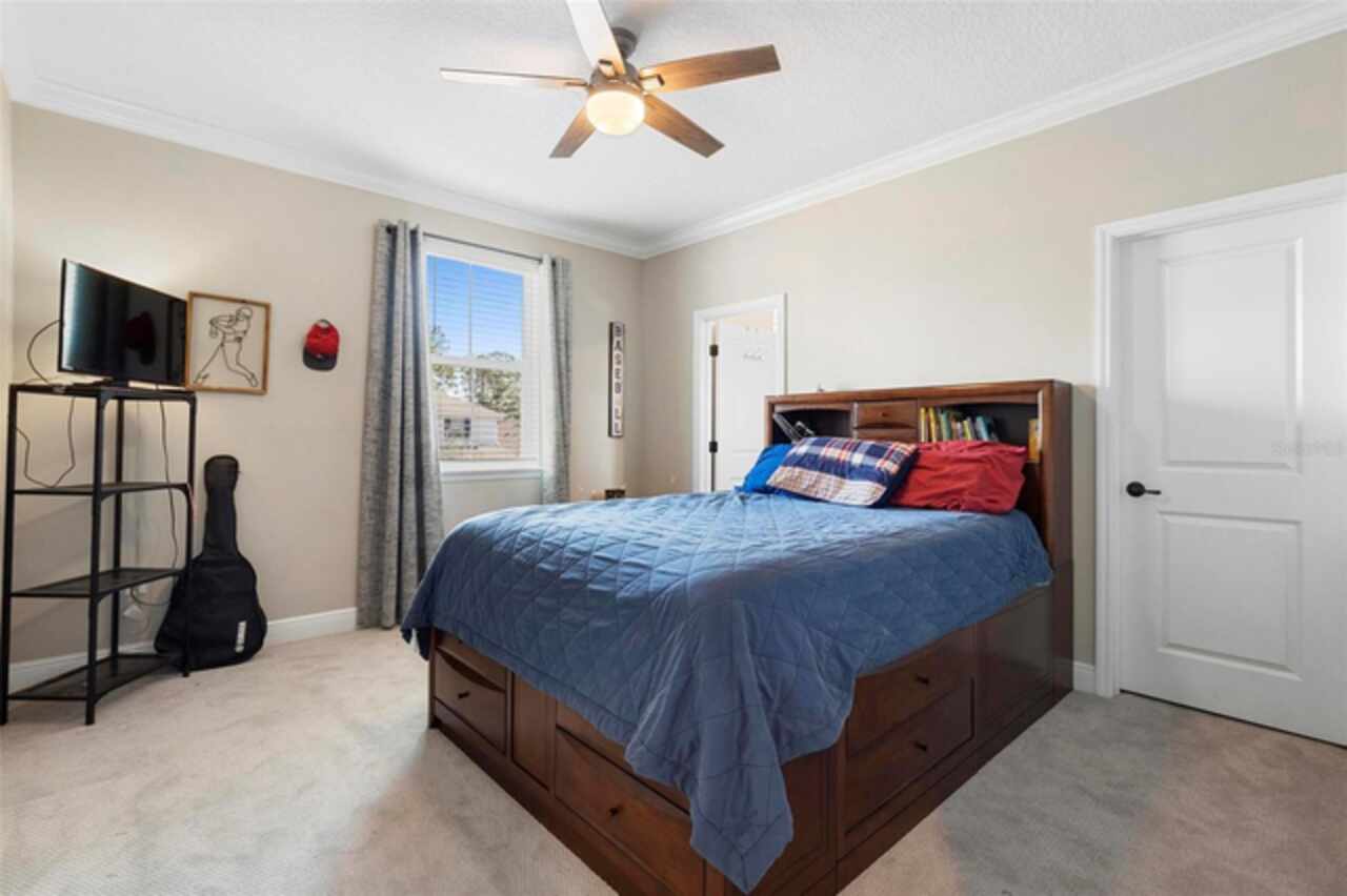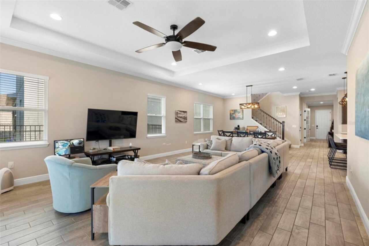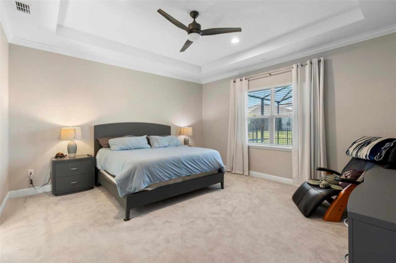 Live the Florida Dream! Welcome to the (en)suite life — luxury, comfort, and sunsets await! Built in 2020, this stunning 2-story POOL home sits in a sought-after Horizon West community with LOW HOA FEES — modern living and great value combined. Inside, enjoy elegant crown molding throughout and the spacious Grayson floorplan with a rare 3-CAR TANDEM GARAGE . The gourmet kitchen features a huge island and stone countertops — perfect for gatherings and everyday living. The first-floor Owner’s Suite offers peaceful pool and pond views, a tray ceiling, and a spa-like bath. A second ensuite bedroom downstairs is ideal for guests or multi-gen living, plus a private office for work or study. Upstairs, you’ll find three more bedrooms ( two ensuites ) with walk-in closets, a large loft for games or play, and a theater/media room for movie nights. Step out to your screened-in pool overlooking tranquil pond views — the perfect sunset backdrop for relaxing or entertaining. This move-in ready oasis has room for everyone and is priced to sell fast — schedule your private tour today! Home is where your story begins — let me help you start your story!