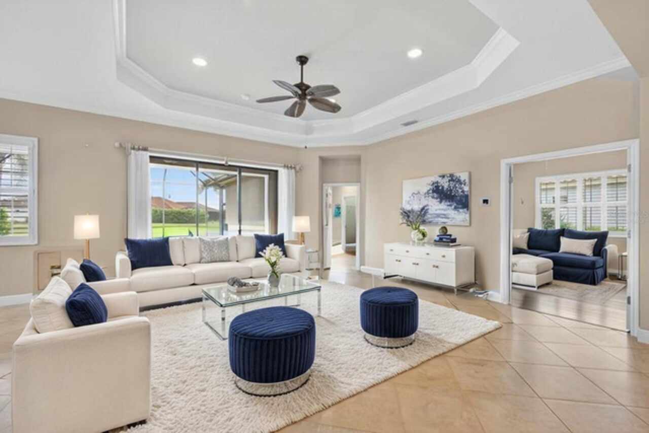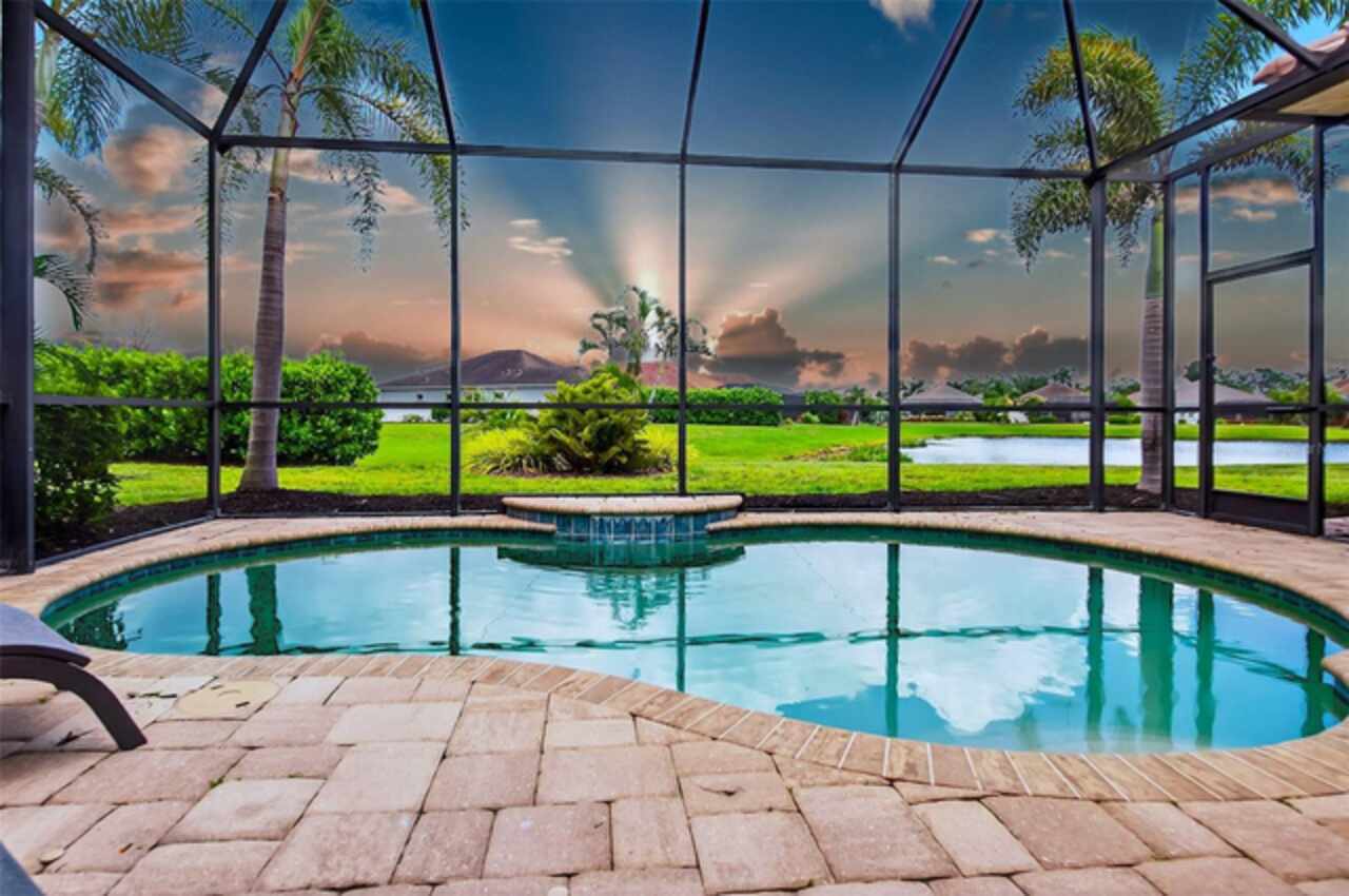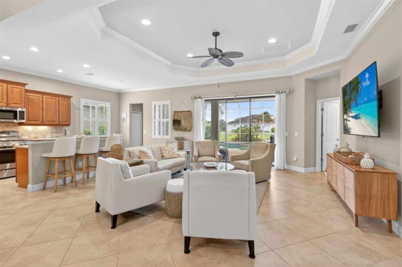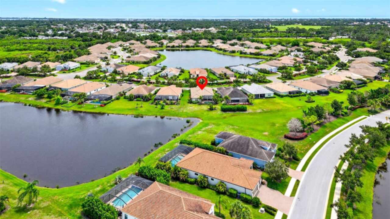 One or more photo(s) has been virtually staged. *LAKE VIEW*, *PRIVATE HEATED POOL*, *LARGE EXTENDED LANAI*, *MANY CUSTOM UPGRADES THROUGHOUT* *SOCIAL & FITNESS MEMBERSHIP DUES ARE INCLUDED IN THE HOA FEE* *NO CDD FEE* *NOT IN A FLOOD ZONE* The COMMUNITY POOL AND SPA are just block away. *BRAND NEW FLOORING IN THE DEN/OFFICE*, *NEW HVAC SYSTEM*, *NEW WATER HEATER*, *NEW POOL & HEAT PUMP*, *NEW WATER PURIFYING SYSTEM*, *HURRICANE SHUTTERS*, *ELECTRIC SHUTTERS AT THE LANAI*, *PLANTATION SHUTTERS*, *TRAY CEILING*, *CROWN MOLDING*, *CERAMIC TILES IN THE LIVING AREA* and more. The HOA fees include landscape maintenance (lawn mowing, fertilizing, mulching, fungus/insect treatment etc), irrigation, the electronically monitored gated entry systems for the homeowners and new gate with 24hr guard, maintenance of the private roads, full-time on-site manager, a large heated community pool with spa and a large gas grill plus social & fitness membership. Very welcoming CUSTOM-DESIGNED property boasts 2231 sq ft with 3BD / 2.5BA + large DEN / OFFICE and a HEATED PRIVATE POOL overlooking the lake. This home features open concept gourmet kitchen with a gas stove, breakfast bar, real wood cabinets, granite counters and walk-in pantry, -laundry room with custom cabinets for extra storage, -very spacious, airy and inviting living space with a formal dining area, -private, luxury primary en-suite with large bedroom, walk-in closets and a oversized bathroom with 2 separate vanities, fully tiled walk-in shower and a private toilet. 2 additional good size bedrooms with built-in closets share the elegant guest bathroom with single vanity, bathtub with overhead shower, and the linen closet. The split-bedroom floor plan gives lots of privacy for the guests to ensure comfort of their stay. Extended lanai with a private pool overlooking the lake is an ideal place for you to spend time outdoors, enjoying your time with family & friends grilling, swimming, relaxing or simply chilling admiring the beauty of the view! This very popular community of Boca Royale offers many optional activities like playing golf, tennis, fitness center, community pool, spa, pickleball, dining restaurant, dog park and more. Fantastic location to enjoy the natural beauty of the Sunshine State with access to multiple nature parks nearby, beautiful trails, world-famous public beaches within a few miles of the community and much more. Just minutes from local restaurants, shopping and medical centers.THIS IS A MUST SEE WATERFRONT HOME. Everything you've desired is right here! Take action to call this beautiful, like-model home and this dream lifestyle yours! Schedule your showing today! ***Please check out the 3D tour!***