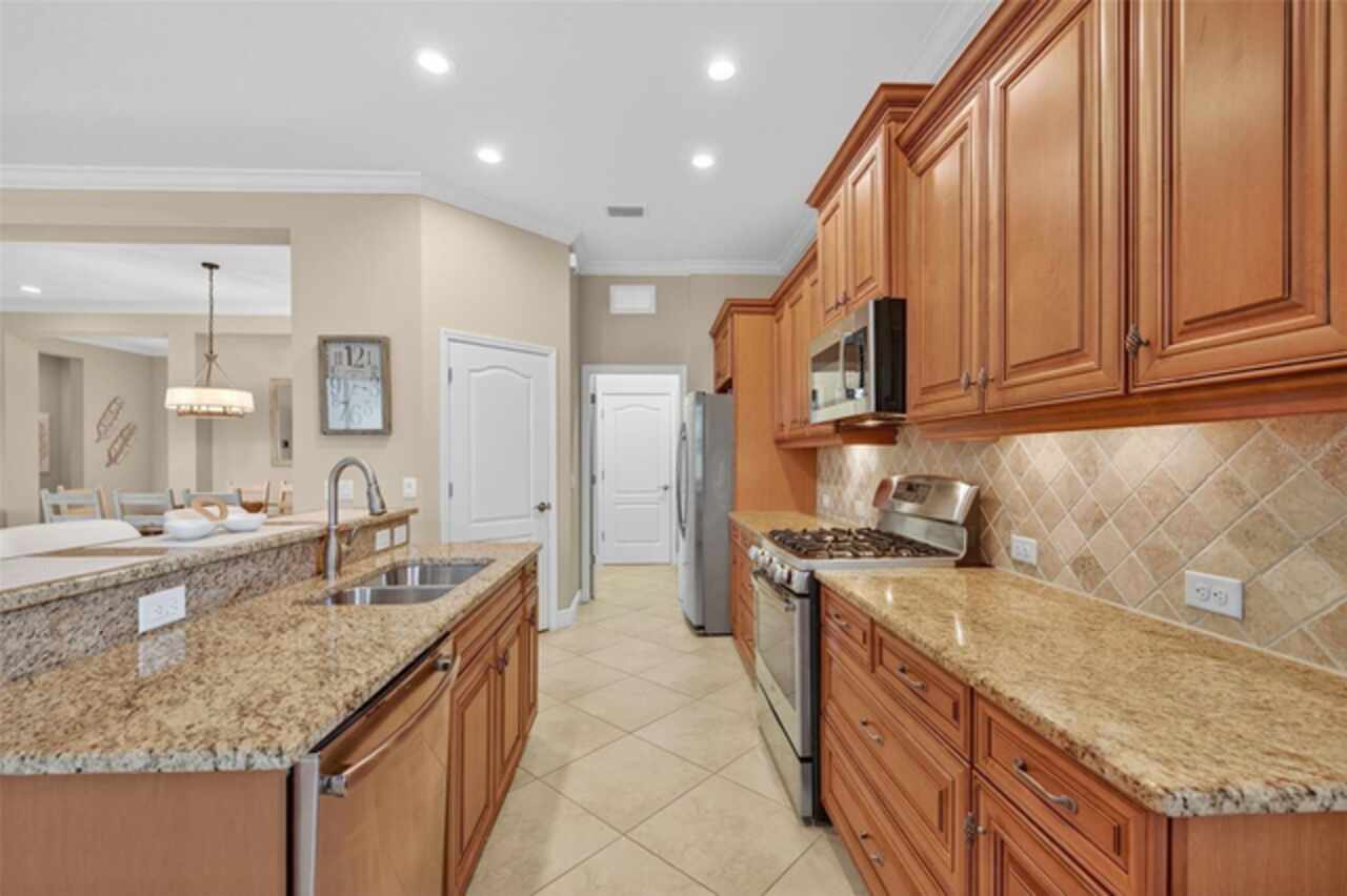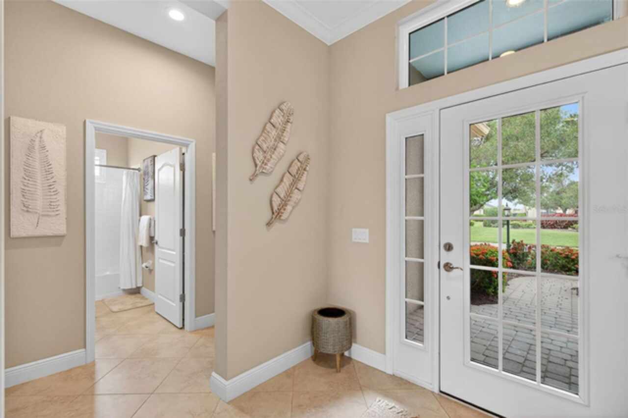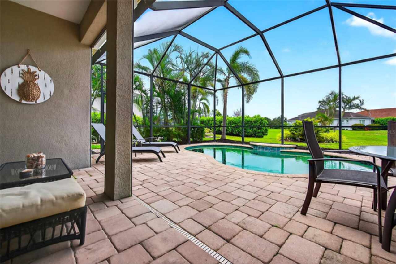 One or more photo(s) has been virtually staged. *LAKE VIEW*, *PRIVATE HEATED POOL*, *LARGE EXTENDED LANAI*, *MANY CUSTOM UPGRADES THROUGHOUT* *SOCIAL & FITNESS MEMBERSHIP DUES ARE INCLUDED IN THE HOA FEE* *NO CDD FEE* *NOT IN A FLOOD ZONE* The COMMUNITY POOL AND SPA are just block away. *BRAND NEW FLOORING IN THE DEN/OFFICE*, *NEW HVAC SYSTEM*, *NEW WATER HEATER*, *NEW POOL & HEAT PUMP*, *NEW WATER PURIFYING SYSTEM*, *HURRICANE SHUTTERS*, *ELECTRIC SHUTTERS AT THE LANAI*, *PLANTATION SHUTTERS*, *TRAY CEILING*, *CROWN MOLDING*, *CERAMIC TILES IN THE LIVING AREA* and more. The HOA fees include landscape maintenance (lawn mowing, fertilizing, mulching, fungus/insect treatment etc), irrigation, the electronically monitored gated entry systems for the homeowners and new gate with 24hr guard, maintenance of the private roads, full-time on-site manager, a large heated community pool with spa and a large gas grill plus social & fitness membership. Very welcoming CUSTOM-DESIGNED property boasts 2231 sq ft with 3BD / 2.5BA + large DEN / OFFICE and a HEATED PRIVATE POOL overlooking the lake. This home features open concept gourmet kitchen with a gas stove, breakfast bar, real wood cabinets, granite counters and walk-in pantry, -laundry room with custom cabinets for extra storage, -very spacious, airy and inviting living space with a formal dining area, -private, luxury primary en-suite with large bedroom, walk-in closets and a oversized bathroom with 2 separate vanities, fully tiled walk-in shower and a private toilet. 2 additional good size bedrooms with built-in closets share the elegant guest bathroom with single vanity, bathtub with overhead shower, and the linen closet. The split-bedroom floor plan gives lots of privacy for the guests to ensure comfort of their stay. Extended lanai with a private pool overlooking the lake is an ideal place for you to spend time outdoors, enjoying your time with family & friends grilling, swimming, relaxing or simply chilling admiring the beauty of the view! This very popular community of Boca Royale offers many optional activities like playing golf, tennis, fitness center, community pool, spa, pickleball, dining restaurant, dog park and more. Fantastic location to enjoy the natural beauty of the Sunshine State with access to multiple nature parks nearby, beautiful trails, world-famous public beaches within a few miles of the community and much more. Just minutes from local restaurants, shopping and medical centers.THIS IS A MUST SEE WATERFRONT HOME. Everything you've desired is right here! Take action to call this beautiful, like-model home and this dream lifestyle yours! Schedule your showing today! ***Please check out the 3D tour!***