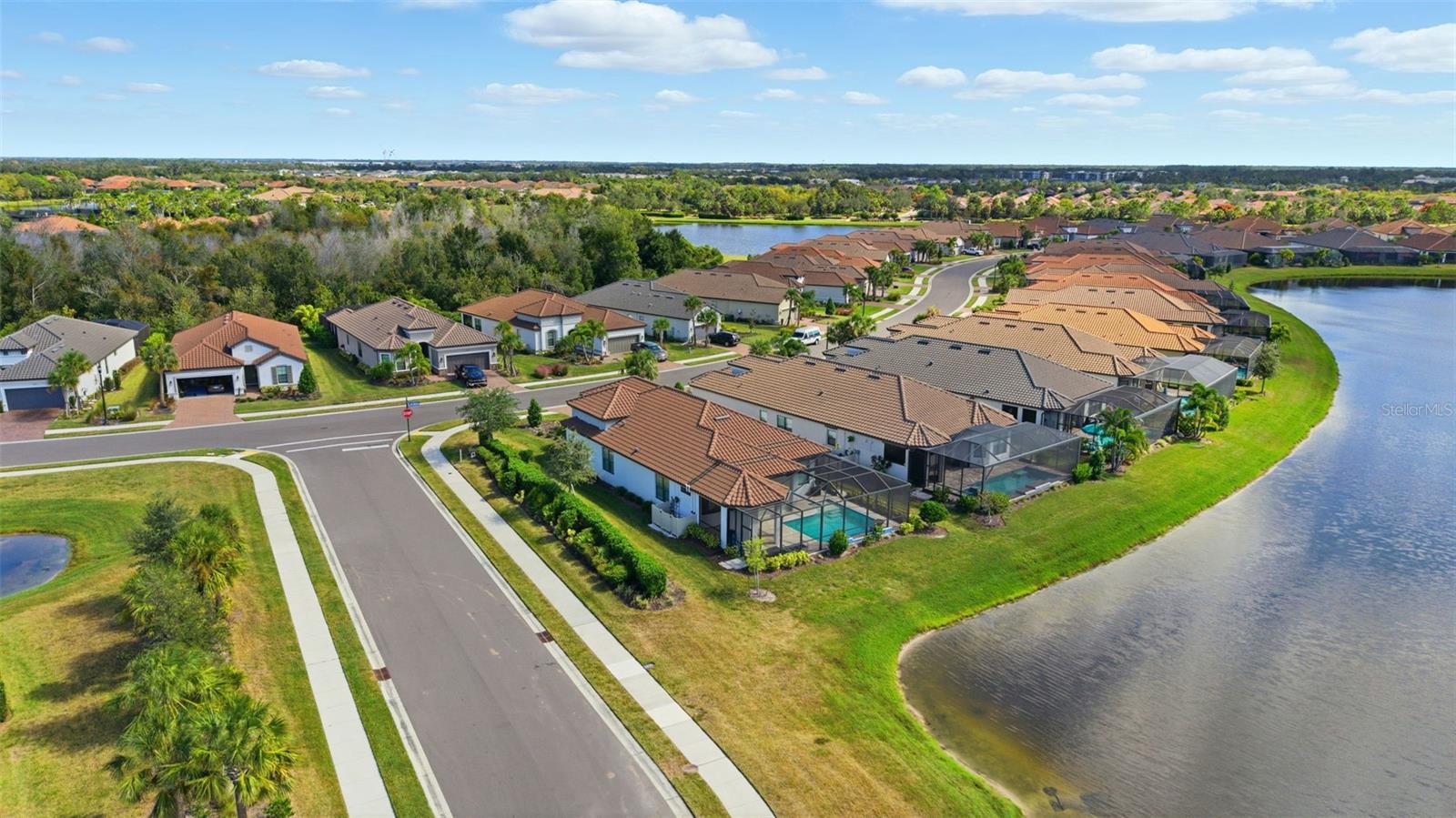 Experience the best of Florida living in this no-flood, no-evacuation zone luxury residence located in the exclusive gated community of Esplanade at Artisan Lakes. This stunning 3-bedroom, 3.5-bath home—with a private office/den or formal dining room—sits on a premium waterfront corner lot, offering exceptional privacy and spectacular sunset views. Designed for both elegance and everyday comfort, this model-quality home showcases high-end upgrades throughout, from tray ceilings and decorative moldings to custom lighting, wainscoting, and upgraded tile flooring. The open-concept layout creates an expansive, airy atmosphere that’s perfect for entertaining or relaxing in style. The gourmet kitchen is a chef’s dream, featuring quartz countertops, 42" upgraded wood cabinetry, built-in stainless steel appliances, and abundant storage. Step outside to your own private backyard oasis, where you’ll find a solar-heated pool and spa, a custom outdoor kitchen, gas fireplace lounge area, travertine-paved lanai, outdoor dining space, and motorized retractable shades—ideal for year-round indoor-outdoor living. The tandem 3-car garage offers additional flexibility for a workshop, golf cart, or recreational storage. The tandem 3-car garage offers added flexibility for a workshop, golf cart, or recreational storage. Beyond your doorstep, enjoy a vibrant, resort-inspired lifestyle with world-class amenities including two luxurious amenity centers with resort-style pools and spas, pickleball and tennis courts, a state-of-the-art fitness center, and a full calendar of social events and activities. The all-inclusive HOA covers lawn care, cable, internet, and more—providing truly effortless, maintenance-free living. Perfectly located just minutes from Tampa, St. Petersburg, Sarasota, and the Gulf Coast beaches, this move-in-ready gem delivers the ultimate Florida lifestyle upgrade.