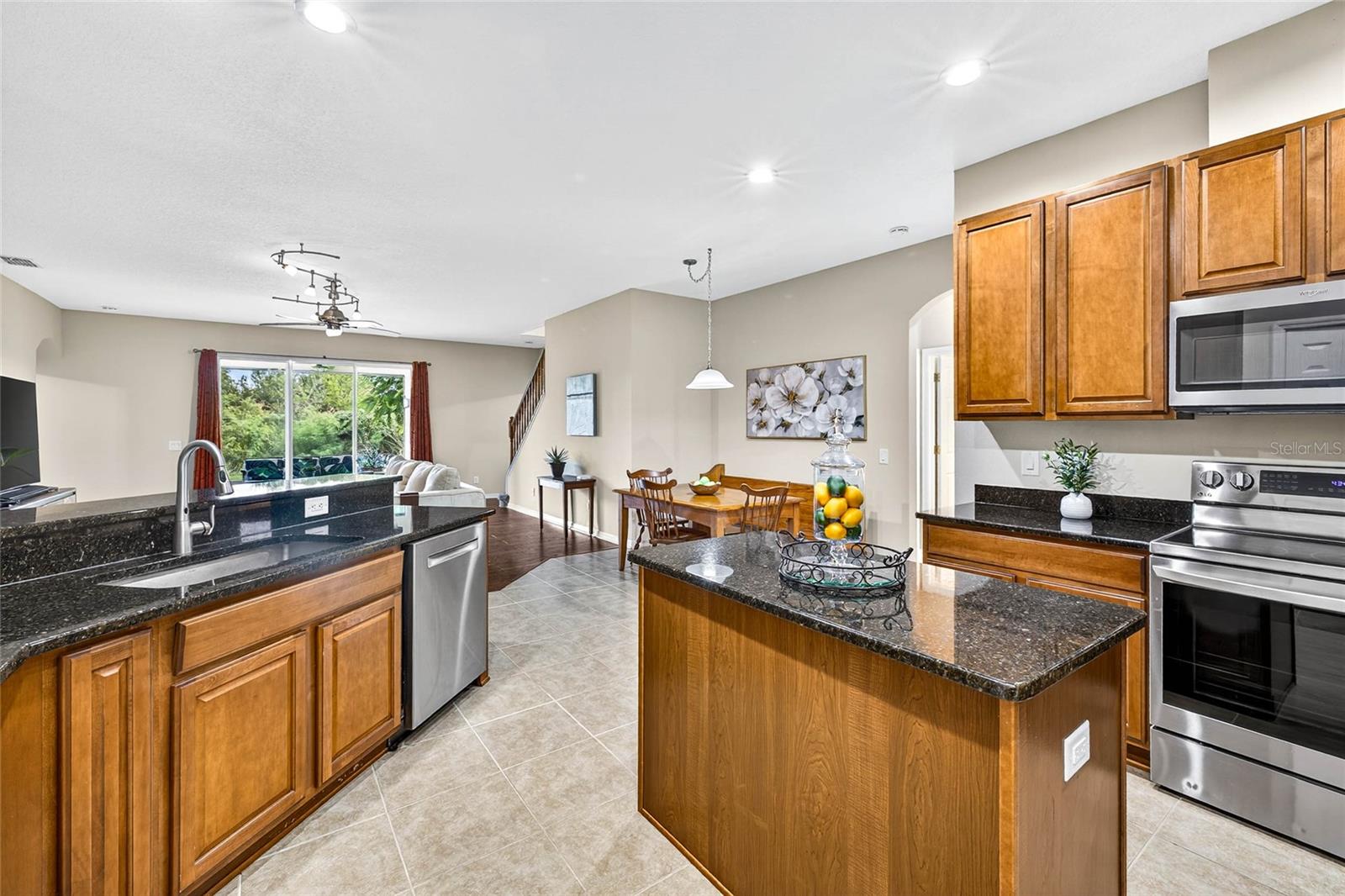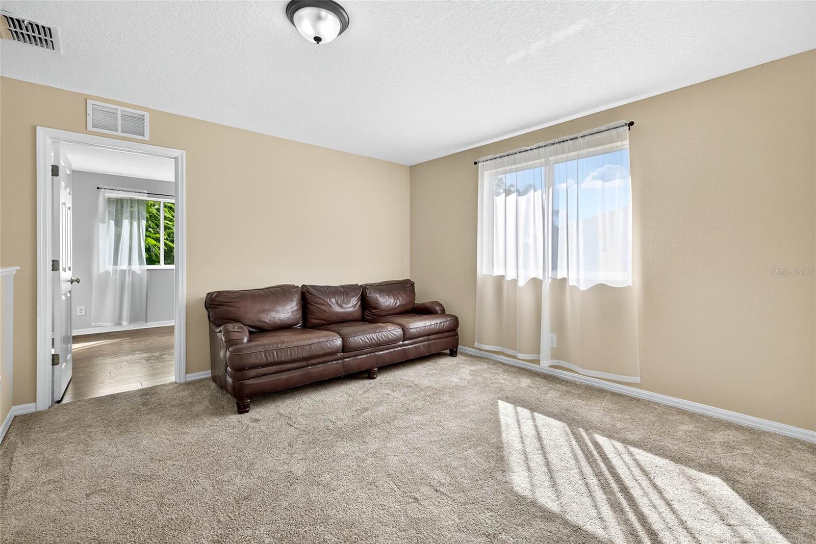 Welcome to this lovingly maintained 5-bedroom, 3-bathroom home with 2, 908 sq. ft. of living space in the desirable community of Easton Park in New Tampa. From the moment you arrive, you’ll appreciate the inviting curb appeal and the convenience of a spacious 3-car garage. Step inside to discover an open and functional floor plan featuring no carpet downstairs, generous living and dining areas, and tons of storage throughout. The laundry room includes extra storage and is pre-plumbed for a sink, adding everyday convenience. The kitchen is a standout with granite countertops, upgraded appliances and ample cabinetry, making it the perfect hub for family meals and entertaining. The primary suite and three bedrooms are located downstairs for every day convenience. Upstairs, the bonus room, 5th bedroom and bathroom provide privacy and flexibility. Out back, enjoy the screened in lanai and privacy of a yard that backs up to serene conservation views, creating a quiet backdrop for morning coffee or evening gatherings. Best of all, you’re just a short walk to the community amenities, including parks, trails, and a community pool the whole family will love. Easton Park is conveniently located near top-rated public, private, magnet, and charter schools, as well as Pasco Hernando State College, St. Leo University, the University of South Florida, and the University of Tampa. Nearby shopping and dining options include Tampa Premium Outlets, Wiregrass Mall, and Krate at the Grove. A Publix plaza and three daycares just outside of Easton Park add to the convenience. Downtown Tampa, Tampa International Airport, and the area's beautiful beaches are all easily accessible. For entertainment, B&B Movie Theater, Advent Health Center Ice Rink, Main Event, Urban Air Trampoline Park, Busch Gardens, and Adventure Island are all close by. This home combines space, functionality, and location — all in one package. Don’t miss the chance to make it yours!