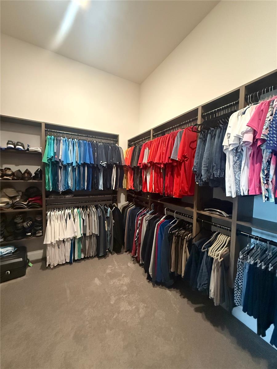 Eat-in Kitchen, High Ceilings, Kitchen/Family Room Combo, Open Floorplan, Primary Bedroom Main Floor, Solid Surface Counters, Solid Wood Cabinets, Split Bedroom, Thermostat, Tray Ceiling(s), Walk-In Closet(s), Window Treatments