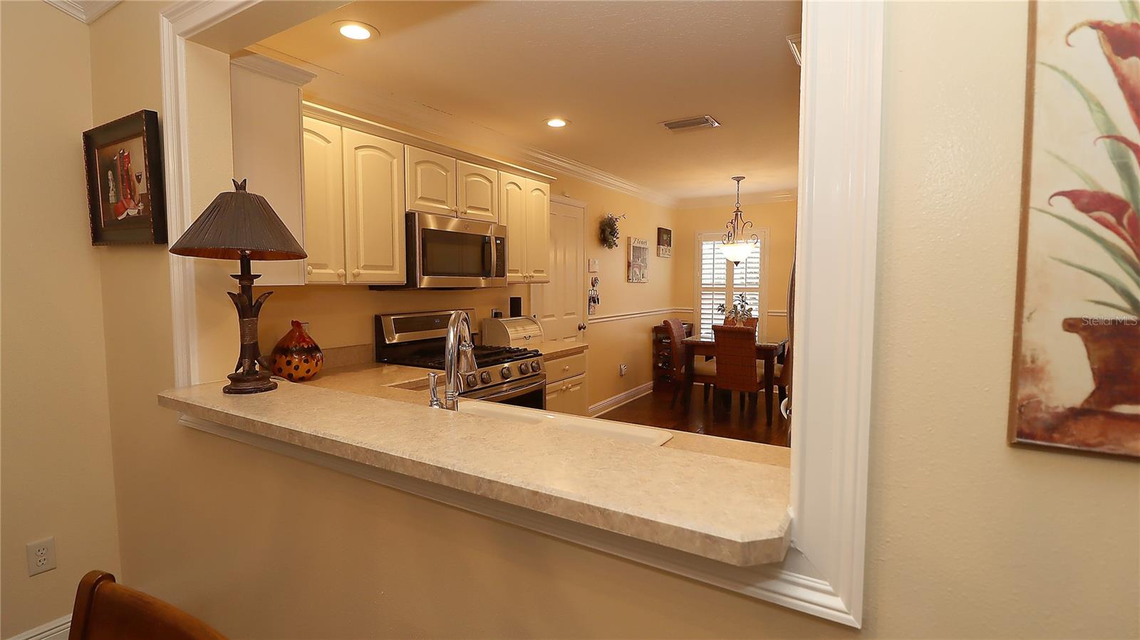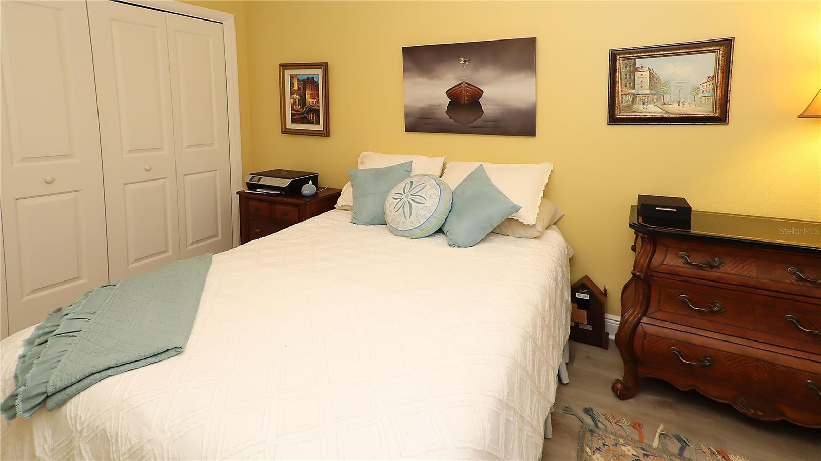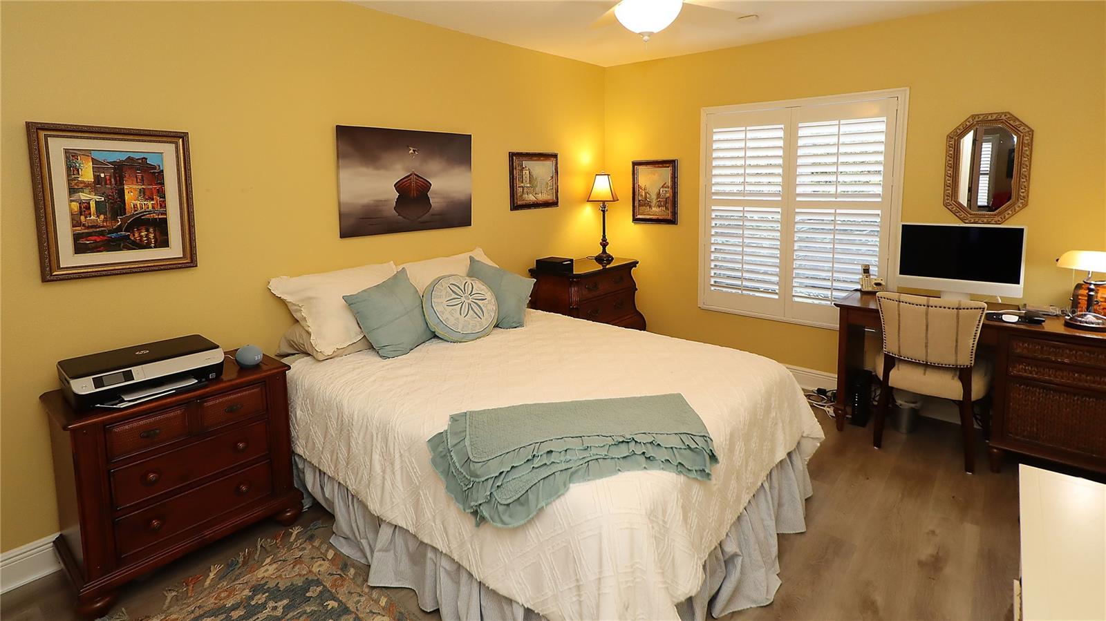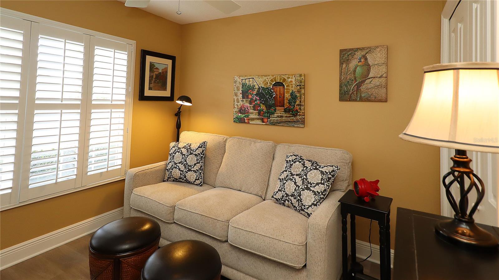 Under contract-accepting backup offers. Motivated Seller agrees to a NEW PRICE. If you would like to live a short way away from the town square, this home may be for you. It is just a short drive to Sumter Landing, entertainment, music, shopping and dining. Golf courses are all around the Village of Largo ( Bogart and Bacall courses and the Bacall recreation center where you can take classes). This beautiful block and stucco 3/2 Jasmine designer is located in the Village of Largo and has so much for you. First the street appeal is lovely with the trimmed hedges and trees, the cement textured driveway and walk way. As you enter through the leaded glass front door you will enjoy the beautiful hickory wood flooring in the dining, living, and kitchen. The kitchen has an eat in nook and new stainless appliances and the door to the double car garage (with enhanced lighting) is right off the kitchen. Vaulted ceilings and crown molding, and a solar tube grace the living room and dining room. Through the sliders you can enjoy the Florida Room which has its own HVAC, shades and a finished floor. There is also a door to the outdoor patio where you can put your grill or enjoy the Florida sunshine. As you come back into the center of the home you will see that it is a split floorplan with the Primary bedroom on the right. There are plantation shutters in this room as well as the rest of the home. Overhead fans are in every room. The Primary has a large custom walk-in closet. The Primary bath has double sinks and a soothing shower. On the opposite side of the home are two guest bedrooms both with closets and wood laminate flooring and plantation shutters. The guest bath has a tub/shower combo. This home has two HVAC units 2020, roof is 10 years old with architectural shingles. There is also a Termite warranty on this home which means it has been treated to keep termites away. Stop and see this unique home before its gone. Maint. $590.03, Bond annual pmt $1, 608.96, Fire $320.71, Taxes $1, 744.05