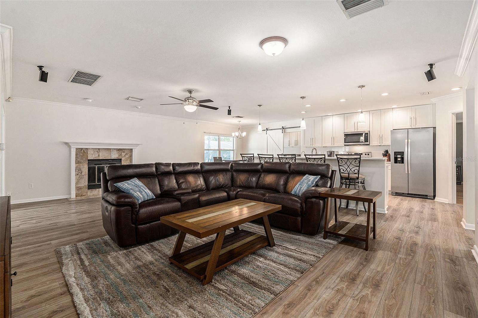 Crown Molding, Open Floorplan, Primary Bedroom Main Floor, Solid Wood Cabinets, Stone Counters, Thermostat, Walk-In Closet(s)