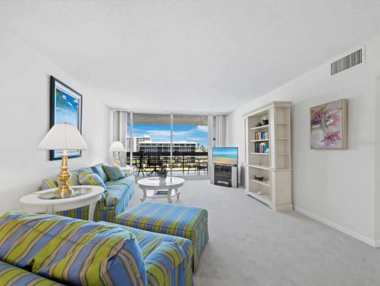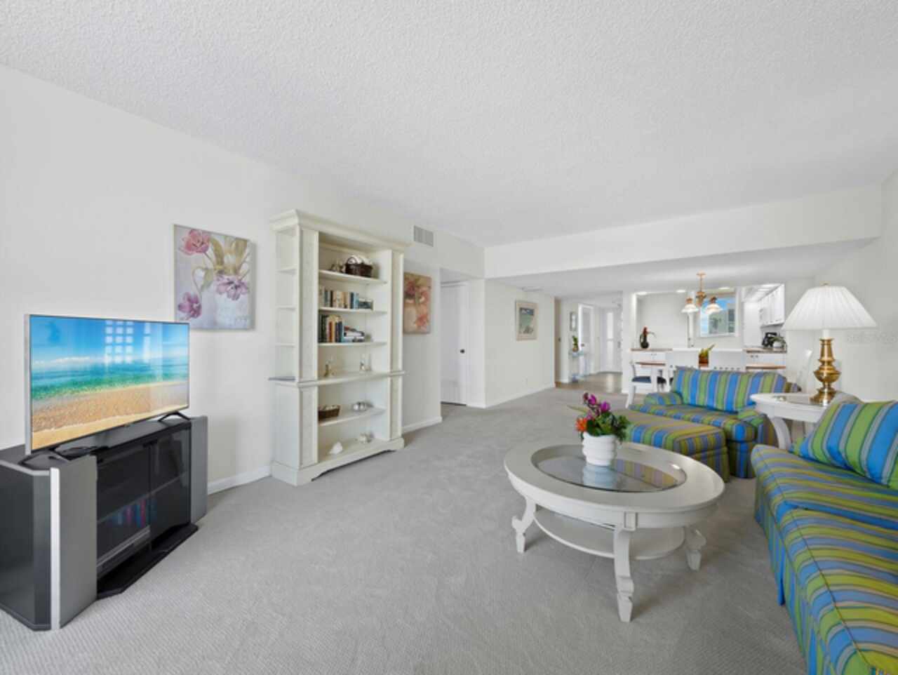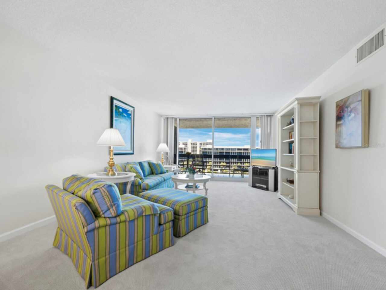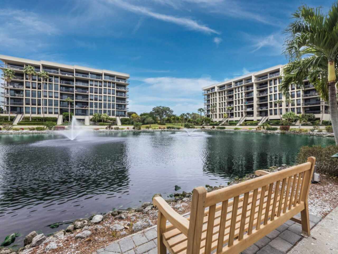 One or more photo(s) has been virtually staged. Enjoy comfortable, coastal living in this well-appointed 2BR/2BA residence on the sought-after south end of Longboat Key. With over 1, 500 sq. ft., this home features a neutral color palette and thoughtful design that enhances the natural beauty just outside. The kitchen offers classic white cabinetry with glass accents, granite countertops, stainless-steel appliances, and recessed lighting. A breakfast bar opens to the dining area, which flows into the spacious living room. Large sliding glass doors lead to the terrace, offering views of Sarasota Bay, the peaceful community lake and fountain, and the Gulf of Mexico - perfect for watching sunsets. The primary suite is light and airy, with terrace access and a full wall of glass. The en suite bath includes dual vanities, a walk-in shower, and a separate water closet. The guest suite also features generous space, plenty of storage, and its own full bath. Beachplace is a 31-acre gated community known for its mid-century modern design by Tim Seibert and its outstanding amenities: private beach access, a Jr. Olympic-sized pool, spa, kiddie pool, clubhouse with social activities, two fitness centers, sauna, tennis and pickleball courts, EV charging, and grilling stations. Rentals are allowed 12 times per year with a 30-day minimum. Residents also enjoy proximity to the prestigious Longboat Key Club, offering an exceptional lifestyle with 45 holes of championship golf, a world-class tennis center, a full-service marina, spa and wellness center, fine dining, and a private beach club - making it easy to enjoy the best of resort-style living just moments from home.