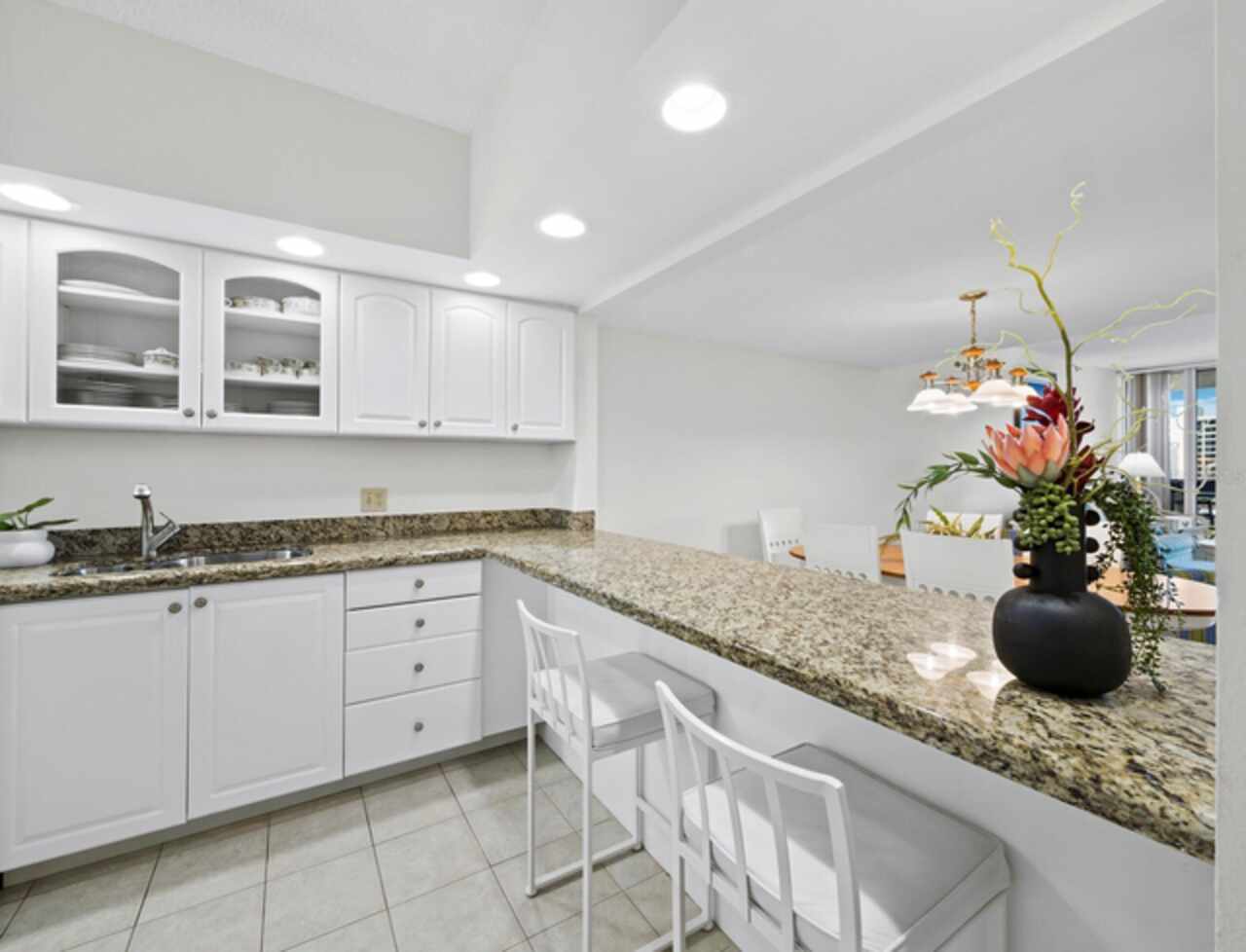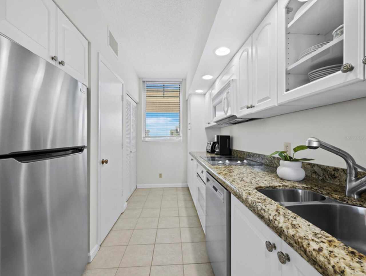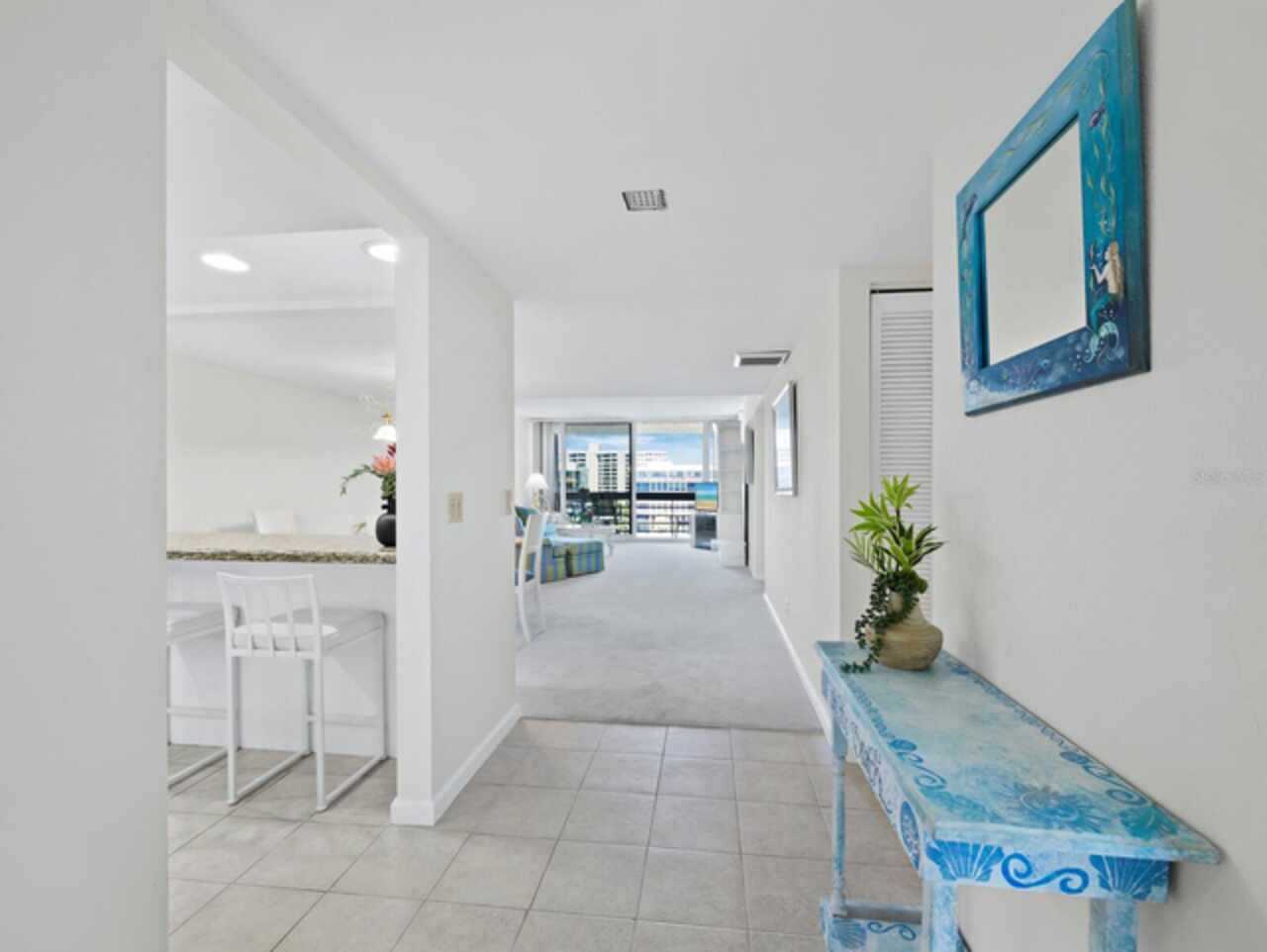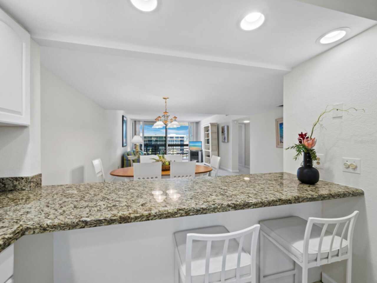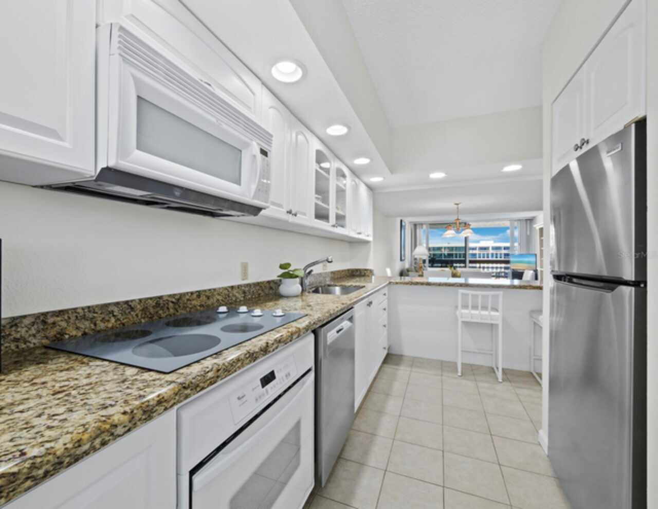 One or more photo(s) has been virtually staged. Enjoy comfortable, coastal living in this well-appointed 2BR/2BA residence on the sought-after south end of Longboat Key. With over 1, 500 sq. ft., this home features a neutral color palette and thoughtful design that enhances the natural beauty just outside. The kitchen offers classic white cabinetry with glass accents, granite countertops, stainless-steel appliances, and recessed lighting. A breakfast bar opens to the dining area, which flows into the spacious living room. Large sliding glass doors lead to the terrace, offering views of Sarasota Bay, the peaceful community lake and fountain, and the Gulf of Mexico - perfect for watching sunsets. The primary suite is light and airy, with terrace access and a full wall of glass. The en suite bath includes dual vanities, a walk-in shower, and a separate water closet. The guest suite also features generous space, plenty of storage, and its own full bath. Beachplace is a 31-acre gated community known for its mid-century modern design by Tim Seibert and its outstanding amenities: private beach access, a Jr. Olympic-sized pool, spa, kiddie pool, clubhouse with social activities, two fitness centers, sauna, tennis and pickleball courts, EV charging, and grilling stations. Rentals are allowed 12 times per year with a 30-day minimum. Residents also enjoy proximity to the prestigious Longboat Key Club, offering an exceptional lifestyle with 45 holes of championship golf, a world-class tennis center, a full-service marina, spa and wellness center, fine dining, and a private beach club - making it easy to enjoy the best of resort-style living just moments from home.