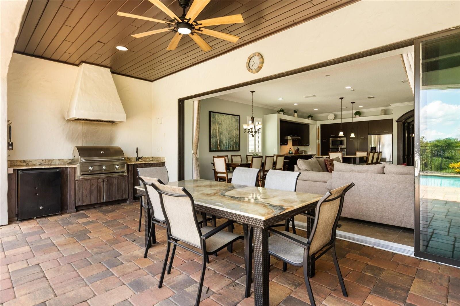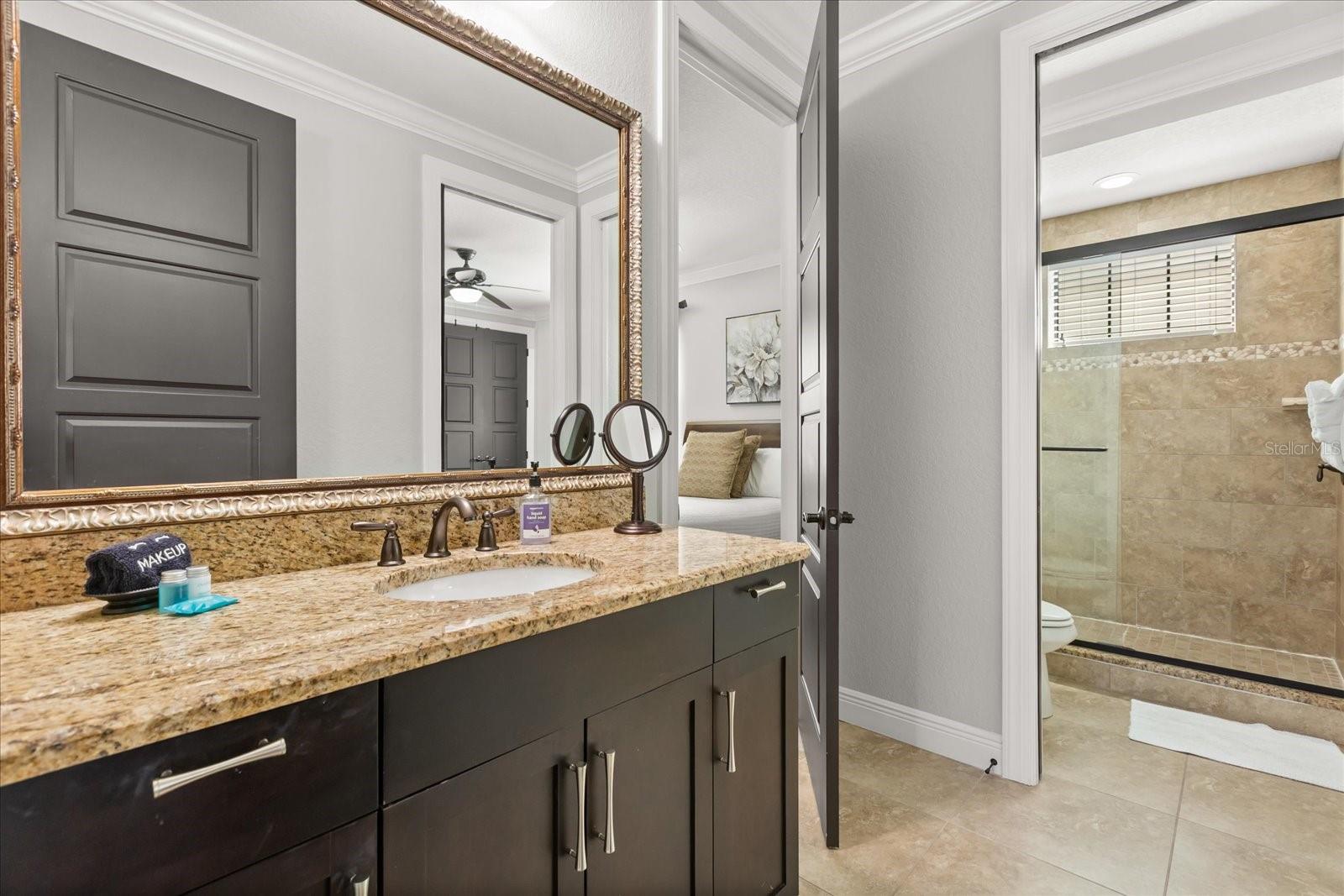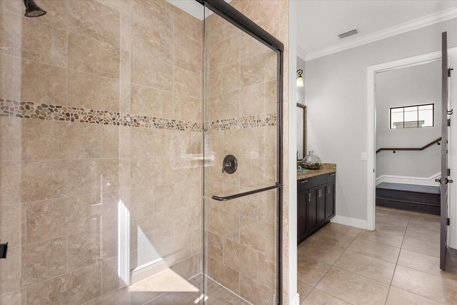 Perched along the rolling greens of the Jack Nicklaus-designed course, this 5-bedroom, 4-bath residence offers nearly 3, 300 square feet of masterfully crafted living space in one of Reunion Resort’s most coveted enclaves—Fairway Ridge. This is not your typical vacation retreat. Every inch of this custom-built home exudes personality, detail, and charm. Step inside, and the difference is immediate. A long, gallery-style entry draws the eye into the expansive great room, where light, calm hues, and refined finishes set the tone for gracious living. The surprises begin with a cleverly concealed first-floor bedroom, hidden behind a secret doorway—a detail guests will never forget. From there, a striking custom wood archway frames the open-plan living area, flowing into a chef’s kitchen designed to impress. Rich wood cabinetry, gleaming granite, stainless steel appliances, and an oversized island—large enough to have its own zip code—create a space perfect for casual mornings or elegant evenings. Tucked behind glass doors, a bespoke wine room with dedicated storage and a custom cooler makes entertaining effortless. The living room is equally well-conceived: comfortable and anchored by plantation-shuttered windows that frame views of the resort’s lush landscape. Slide open the glass doors and discover your private oasis. An expansive lanai runs the width of the home, shading you from the Florida sun, while the oversized pool and spa invite endless afternoons of swimming, lounging, and savoring uninterrupted golf course vistas. Upstairs, a wide wooden staircase introduces a generous loft and well-appointed bedrooms, including the serene master suite. Here, a walk-in closet, spa-inspired bath, and oversized shower create a true retreat. Step onto your private balcony, coffee in hand, and watch the sun rise over Reunion’s manicured fairways. This home comes fully furnished and energized with fresh paint inside and out, offering an atmosphere that is at once tranquil and inviting. Beyond your front door lies Reunion Resort’s world-class lifestyle: three Signature Golf Courses (Watson, Palmer, and Nicklaus), tennis, pickleball, member events, a state-of-the-art waterpark, and dining experiences from rooftop tapas to refined chophouse cuisine. A golf-cart-friendly community, Reunion is both vibrant and intimate, with tree-lined streets, parks, and endless opportunities to gather. Location is everything—and Reunion puts you just minutes from Orlando’s famed theme parks, shopping, and beaches. This property participates in a short-term rental program, with an ACTIVE REUNION RESORT MEMBERSHIP already in place—an added advantage for those seeking both enjoyment and investment. Rare. Refined. Ready to welcome you. Schedule your private tour today.