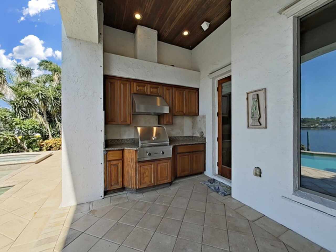 Balcony, French Doors, Hurricane Shutters, Lighting, Outdoor Kitchen, Private Mailbox, Rain Gutters, Sidewalk, Sliding Doors