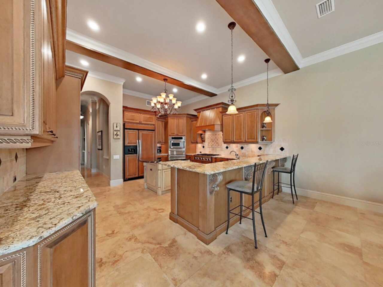 Welcome to "CASA ACQUA BELLO, " a Modern Mediterranean upscale home on 115 feet of waterfront on SMACKS BAYOU, a protected harbor with easy access to Tampa Bay and the Gulf! In excellent condition and immaculately kept by its original owner. This Timeless Beauty is defined by MEDITERRANEAN NATURAL DESIGN: expansive windows to let in light and water views, soaring ceilings, extensive woodwork, granite and marble stonework, arched doorways, 8 ft. solid wood doors, wrought iron, and attractive earth tones. This is a high and dry property with ZERO flooding from last year’s hurricanes. Enter into the foyer of this magnificent home to soaring 23 ft ceilings with a Tuscan inspired gas fireplace in the living room with Tuscan columns that blend into the dining room with a sidebar, buffet, walk-in wine closet, and oak floor refinished in 2023. Past the living room you will find a grand primary 24x14 suite with two walk-in closets with custom built-ins that lead to a huge primary bath with travertine walk-in shower, Jacuzzi tub, and two oversized vanities. Across the house enter a gourmet kitchen with 6 gas burner stainless stove and top-end appliances, island, and breakfast bar all opening to the great room with bright views of the water. It accesses the lanai with a large heated saltwater swimming pool with a spa flowing in and a summer kitchen that looks out to the waterfront to watch the family play. With no dangerous travel thoroughfare and no speed restrictions, paddle boarding, kayaking, jet skiing, boating, and water skiing await at the end of the dock. Also on the first floor is an office/den with tons of built-ins, a guest/nanny suite with bath, large laundry room with cabinetry, and large storage area under the grand stairway. Walking up the elegant oak stairway you will find 2 large open lofts connected by a bridge. The first 22x13 loft has 2 built-in desks and leads to the waterside 28x23 great room with attached 9x8 wet bar, perfect for entertaining or just relaxing and taking in the sparkling water views and the DOWNTOWN ST. PETE SKYLINE. On this side of this beauty you will find 2 more good sized bedrooms with a Jack and Jill bath. Across the bridge is a 20x12 loft, the 5th bedroom (with its own bath) with water and skyline views and a second private entry to the balcony, and an exercise room (6th bedroom if needed). Completing the picture, find a concrete seawall with composite dock with electric/water supply and 13000 lbs boat lift for your center console twin engine speed/fishing boat. Out front is a circular driveway for accommodating your guests plus 2 separate garages that can fit 6 cars, one with a lift in place for your classic cars, the other with a volume ceiling allowing more lifts to be installed and tons of room for storage. More: a nicely landscaped .67 acre lot, solid CBS construction, Anderson thermal double pane windows, Lexan storm shutters, 3 updated HVAC systems, and 2 updated water heaters. This home needs absolutely nothing! Owners are offering a full home warranty! Come live the good life on this IDEALLY LOCATED Eden Isle property just 3 miles to DOWNTOWN ST. PETE with all the restaurants and entertainment, and easy access to Tampa and all the fun! Come see CASA ACQUA BELLO , a Timeless Mediterranean Beauty and welcome to Paradise! Seller will consider financing!!!