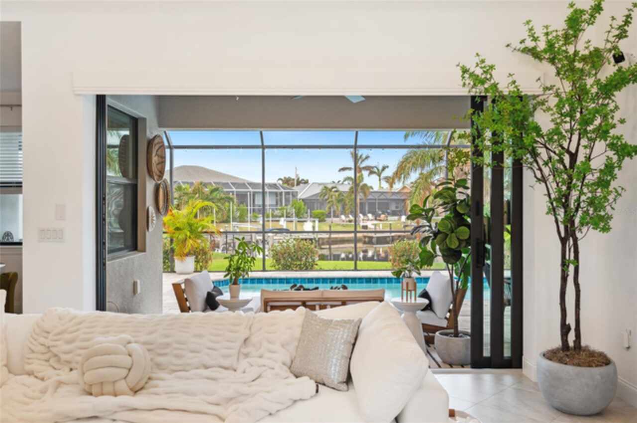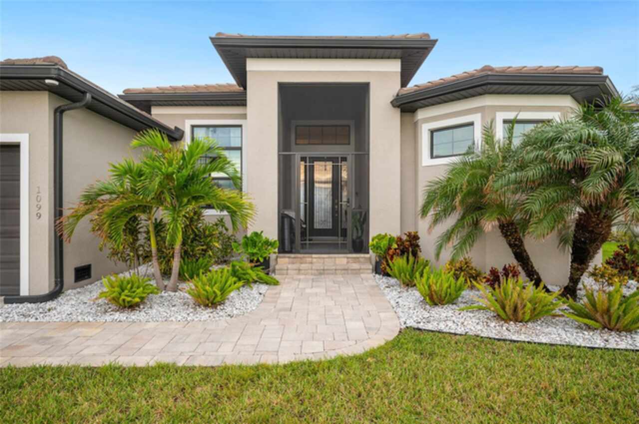 Modern luxury and practical design in this exceptional waterfront home located in the coveted Punta Gorda Isles! Minutes to Charlotte Harbor, this remarkable property is ideal for those seeking the ultimate waterfront lifestyle or a ready investment opportunity. With direct water access and proximity to the harbor, it's a boater's dream come true, while the screened-in saltwater pool offers a tranquil setting perfect for enjoying sunsets. Constructed in 2019, this residence features 3 generously sized bedrooms with custom walk-in closets and 2 elegantly updated bathrooms with premium finishes. Encompassing 2, 029 square feet of expertly crafted living space, the open floor plan effortlessly connects the indoor and outdoor areas through pocket sliders that lead to a spacious lanai. The master suite is a deluxe, complete with a spacious spa shower, soaking tub, and refined details throughout. Recent upgrades include new carpeting throughout, maintaining a shoe-free environment, a cutting-edge water purification system, and a UV air filtration system for superior air quality. The back lanai features high-grade Cat 5 hurricane-rated screening, complementing the front screened-in patio for enhanced outdoor living. Additional improvements include new appliances, a saltwater softener system, a heated saltwater pool system for year-round use, and a newly installed central AC system, along with a cooling unit in the three-car garage. Every element of this property has custom lighting, door hardware, faucets, and fixtures, ensuring both style and functionality. Its contemporary design stands out in the area for its storm resilience, elevated construction, stem walls along the canal, and hurricane-rated windows, doors, and pool screens. This home is a true masterpiece with its flawless craftsmanship, prime location, and grand finishes. Whether you're in search of a permanent Florida sanctuary or a high-end investment property, this home offers everything you desire. Don't miss this opportunity! Schedule your private showing today!