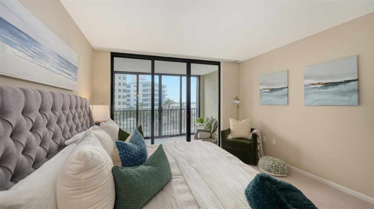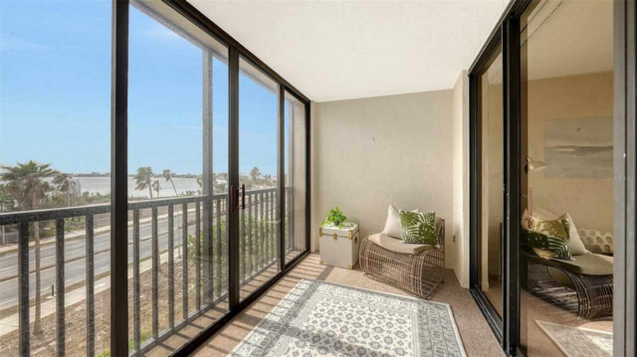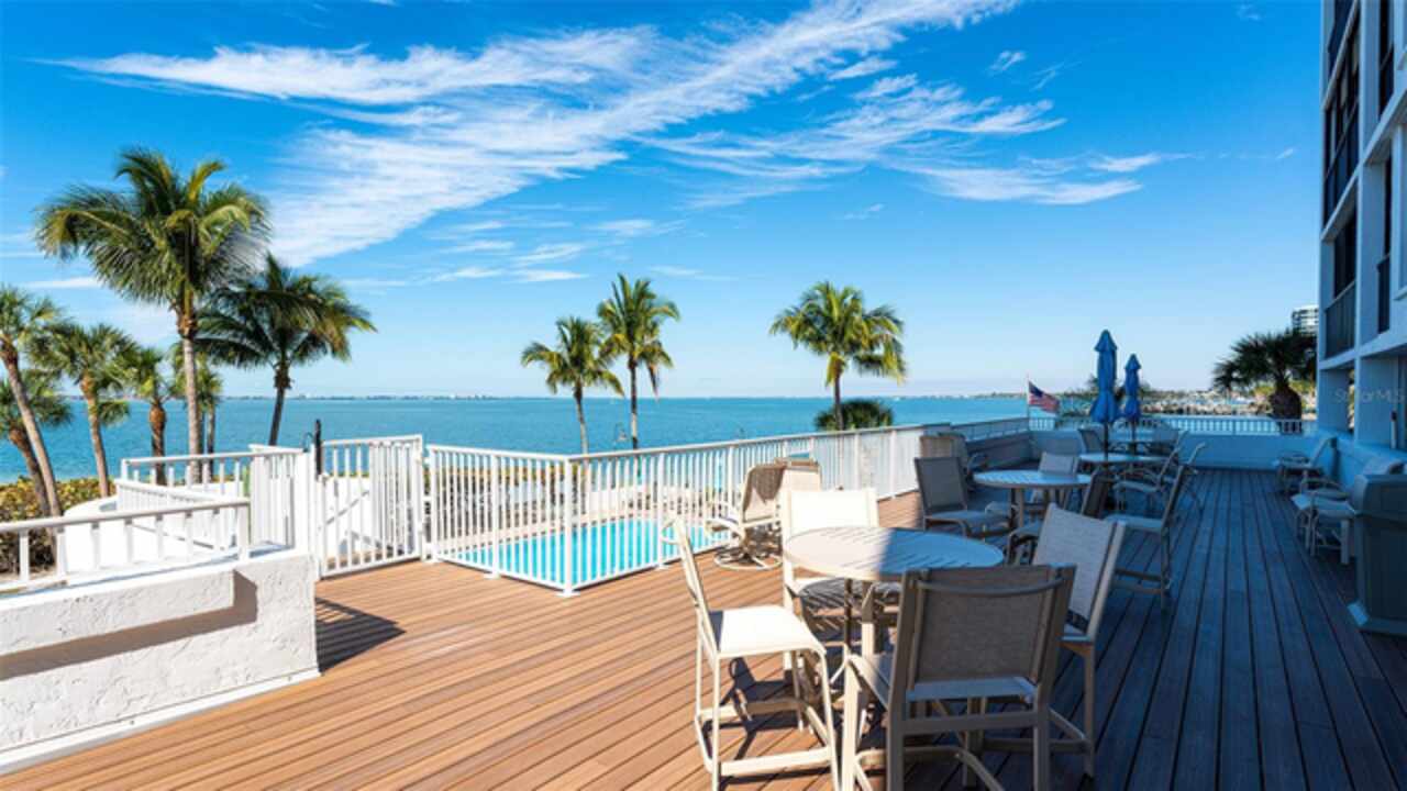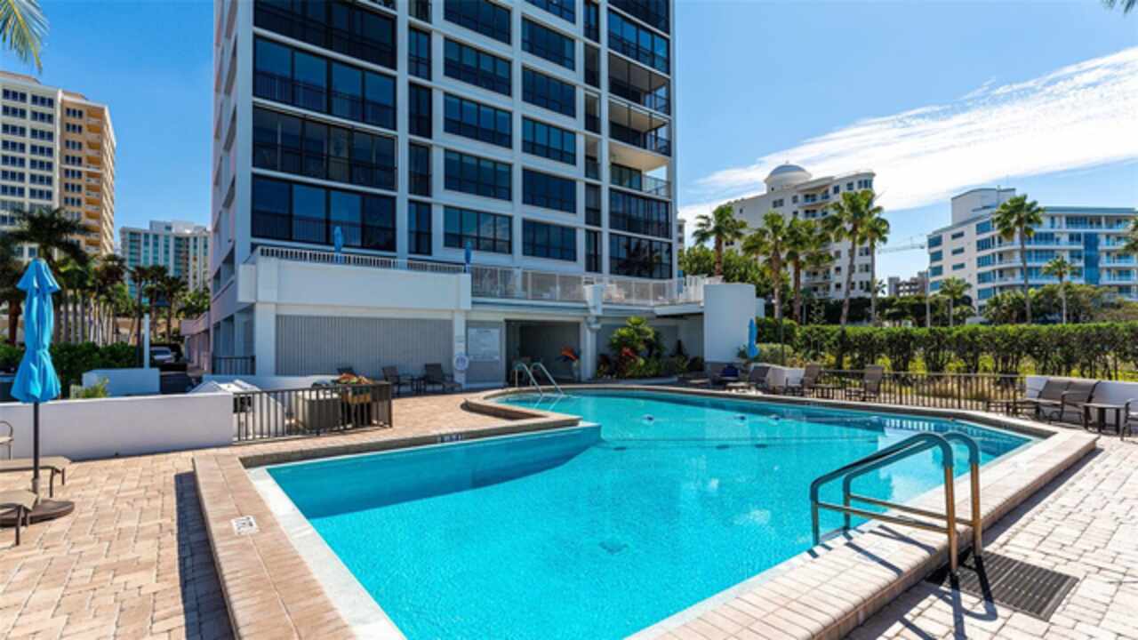 Don't miss out on this one. Sunset Towers is a stunning and perfectly located property in Sarasota! Just renovated with new wood floors throughout the living room, dining room, kitchen, and halls, carpeted bedrooms, entirely freshly painted top to bottom, updated kitchen, solid surface counter tops, and lighting. Additionally, important updates, some newer impact windows, a washer, a dryer, a stainless steel dishwasher, a new stove, oven, and microwave make this property stand out and ready to move in. The floor-to-ceiling windows let you enjoy the breathtaking views of the Intracoastal Waterway and Ringling Bridge—secure entry to the luxury lobby with private mailboxes, elevator to your condo. You'll have easy access to the city's cultural treasures, year-round entertainment, including St. Armand's Circle events and Sarasota's Saturday Farmer's Market. Just minutes from the famed Sarasota Opera House, The Ringling Museum, beautiful Lido Beach, and Longboat Key. Walkable to Downtown Sarasota, Marina Jacks, and St. Armand’s Circle. In addition, many activities, restaurants, world-class shopping, and weekly events will be sure to fill your days. The beautifully maintained and updated public spaces include a two-story deck overlooking Sarasota Bay, a fully updated saltwater heated pool, a private beach, kayak storage, a fitness center, covered assigned parking, and secure entry, all overseen by a manager who lives onsite. The same family has owned the unit itself since the building was constructed in 1960. Enjoy the lovely views of Golden Gate Point, Sarasota Bay, and the Ringling Causeway. With two spacious bedrooms, the master bedroom features an ensuite bath. This is a fantastic opportunity to own your own Downtown Sarasota oasis!