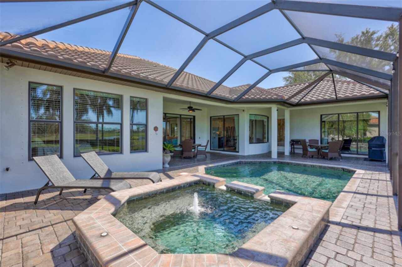 ARTHUR RUTENBURG custom built home on .50 acre, meticulously designed 4 bedroom, 4 full baths, offers an exceptional blend of comfort, style, and function, featuring a pool and spa with covered screened lanai which strikes a perfect balance between privacy and openness. The heart of this home is the expansive kitchen which boasts a 10' island which is perfect for meal preparation, hosting gatherings and casual dining. The kitchen is outfitted with an abundance of cabinets, and it has granite counter tops and stainless steel appliances. The adjacent great room forms a beautiful area designed for formal and informal gatherings. The large sliding doors lead to the pool area, creating a seamless transition from the inside to the lanai to a serene retreat, offering privacy and tranquilly as you relax and enjoy the view of 2 ponds. The outdoor landscaped yard is lush and private, where you find a custom heated salt water pool with hot tub, perfect for lounging and relaxing under the sun. The pool area features pavers through-out adding elegance and durability, The primary master suite is a standout, large and comfortable with his and her walk-in closets and a master en-suite bathroom with walk in shower and separate vanities and garden tub. The thoughtfully designed guest accommodations ensures comfort and privacy on the opposite side of the house. Each bedroom has its own bathroom and one of the guest bedrooms features a private en-suite bath. The attached garage has plenty of space to park 2 cars and storage. The front of the home has impact windows and there are hurricane shutters for the back of the home. As a resident of Rye Wilderness you will have access to fishing in the ponds, dog park, basketball court , soccer field, and playground area. With its outstanding features and outdoor space and location, this home offers the perfect area for those seeking luxury and comfort. Bradenton offers the Riverwalk where you can take a leisurely stroll along the Manatee River or you can wander through the Village of the Arts or catch a show at the Manatee Performing Arts Center or enjoy outdoor activities at Robinson Preserve or explore the Gulf Coast Beaches as well as shop at the UTC mall or the Ellenton Premium Outlets. Bradenton offers a plethora of dining from elegant to casual. It is a short drive on I-75 to Tampa to the north and Sarasota to the south. Don't miss this opportunity to make this home yours in Rye Wilderness. Call today for a private showing!