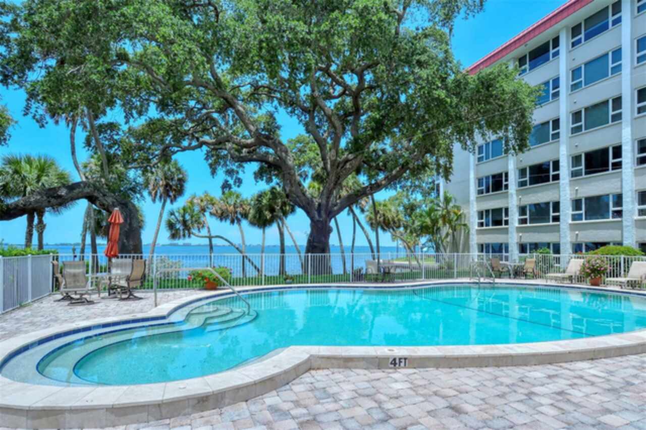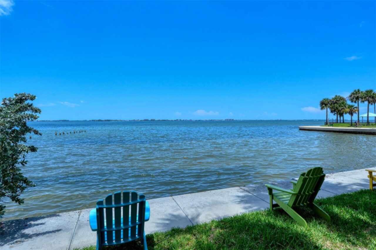 Enjoy views of Sarasota Bay from every windows in this ideally situated condo through the graceful branches of a mature live oak tree. Located in the desirable Bay’s Bluff community, this well-maintained home’s split floor plan offers a spacious living and dining area, open to the adjacent kitchen. Hurricane-impact windows provide peace of mind and the large primary suite features an ensuite bath, plantation shutters and a walk-in closet. Sit out on your private screened lanai and watch the seabirds, sailboats, and breathtaking sunsets. Or relax at the water’s edge in an Adirondack chair on the community’s 267-foot private seawall, where the soothing sounds of the bay will calm your mind and spirit. Bay’s Bluff is a charming, pet-friendly mid-rise community. The bayfront heated pool and grill area are ideal for hosting a sunset cocktail party or cookout. This community shares an entrance with Whitaker Gateway Park—with its fishing pier, walking paths, and picnic areas. And you’ll find Publix just across the street for ultimate convenience. Just two blocks from The Bay Park, Sarasota’s 53-acre cultural and waterfront destination, and only one mile from downtown Main Street, you’ll have easy access to world-class dining, theaters, museums, shopping, Sarasota-Bradenton Airport, and award-winning beaches. This is the best direct waterfront value in all of Downtown Sarasota—an unbeatable lifestyle and location.