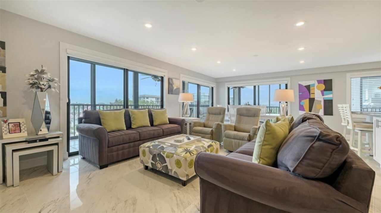 Under contract-accepting backup offers. Stunning Corner View Condo! Your Beachfront Retreat Awaits! Welcome to this MUST-SEE, fully updated corner unit at Lido Surf & Sand, offering 1, 456 sq.ft. of luxurious living with breathtaking views! This turn-key, fifth-floor residence boasts North, Northwest, and East-facing vistas of the sparkling Gulf waters, the serene Intercoastal Waterway, and the dynamic city skyline. With a sophisticated coastal design, this condo perfectly blends relaxation and elegance, offering the ultimate beachfront lifestyle. Inside, the open floorplan is designed with entertaining in mind, featuring a bright and airy Great Room that seamlessly flows into a spacious sunroom/screened lanai. Here, the tropical breezes and the soothing sounds of waves crashing on the shore will immediately put you at ease—your own personal slice of paradise! Whether enjoying morning coffee or evening sunsets with a glass of wine, this expansive lanai is truly a highlight of the home. The kitchen is a chef’s dream, complete with a large island with granite countertops, updated cabinetry, a built-in desk with file cabinets, and abundant storage space. The split floorplan includes two spacious bedrooms and two full bathrooms, with the primary suite offering a serene retreat, featuring an ensuite bath and a walk-in closet. Additional features include remote-controlled shades on sliding glass doors, plantation shutters in both bedrooms, crown molding, and an array of modern updates like a 2023 A/C, a tankless hot water heater, and an in-unit washer and dryer. Lido Surf & Sand delivers resort-style amenities that will elevate your lifestyle, including a beautiful beachfront pool and spa with poolside grills, a tropical dining portico, a sauna, fitness center, and shuffleboard. The building also offers secure underbuilding parking, climate-controlled storage, on-site management, and plenty of guest parking. The location is unbeatable, just blocks from the world-class shopping and dining of St. Armand’s Circle, across from a nature preserve perfect for kayaking, paddle boarding, and fishing, and steps from the white sands of Lido Key. Whether you're looking for a primary residence or an exceptional vacation home, this condo is an absolute must-see. Start your day with a cup of coffee on your incredible lanai, and end it with a glass of wine as you watch the sun set over the Gulf. Live among multimillion-dollar complexes and experience the best of Lido Key. Live the dream. Love where you live. With its prime location, luxurious upgrades, and resort-style amenities, this condo offers the perfect blend of comfort and convenience. Experience the ultimate beachfront lifestyle at Lido Surf & Sand—your dream home is waiting. Call for more details and to schedule your private tour.