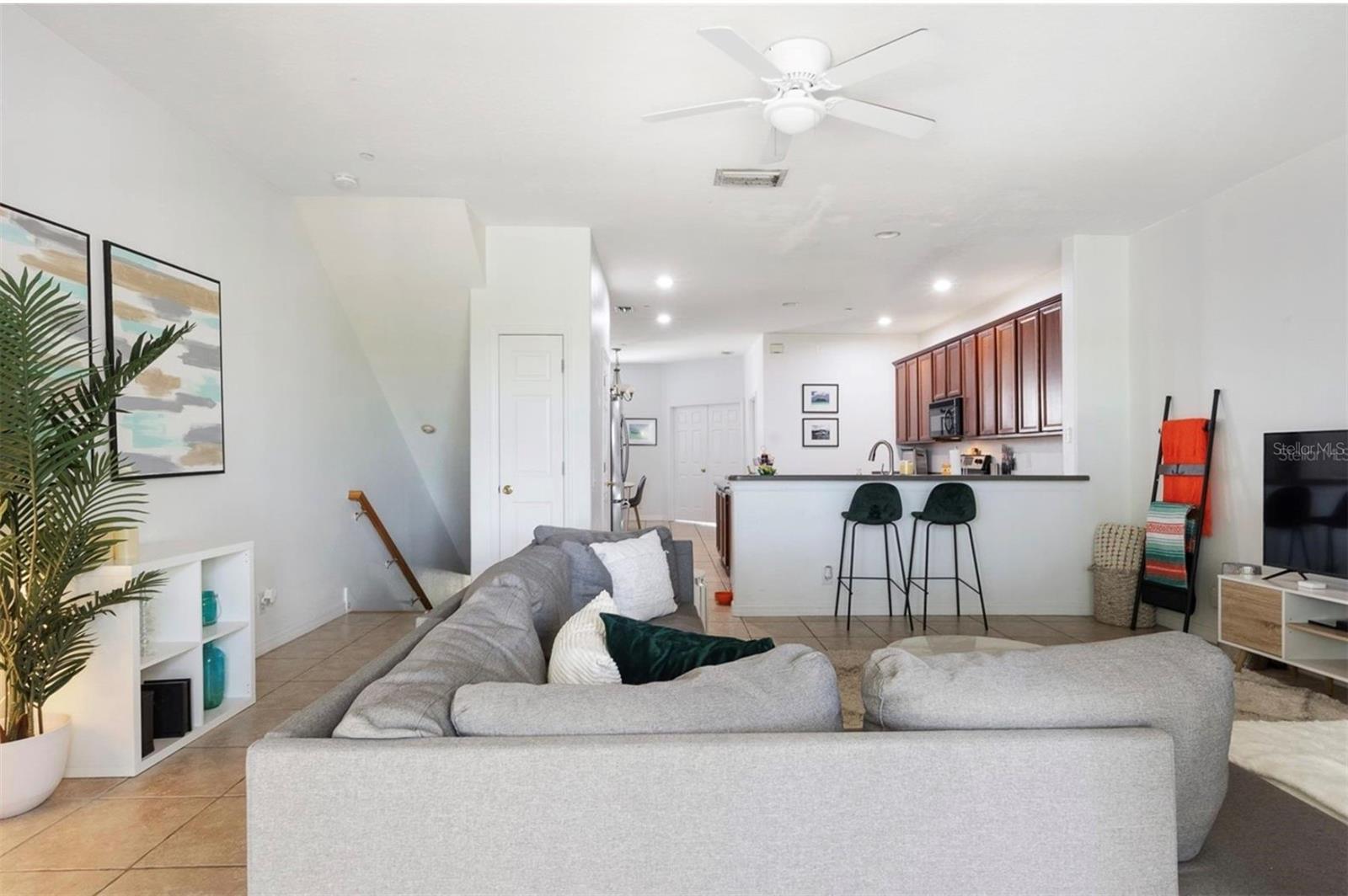 Ceiling Fans(s), Eat-in Kitchen, High Ceilings, Open Floorplan, PrimaryBedroom Upstairs, Solid Surface Counters, Solid Wood Cabinets, Walk-In Closet(s)