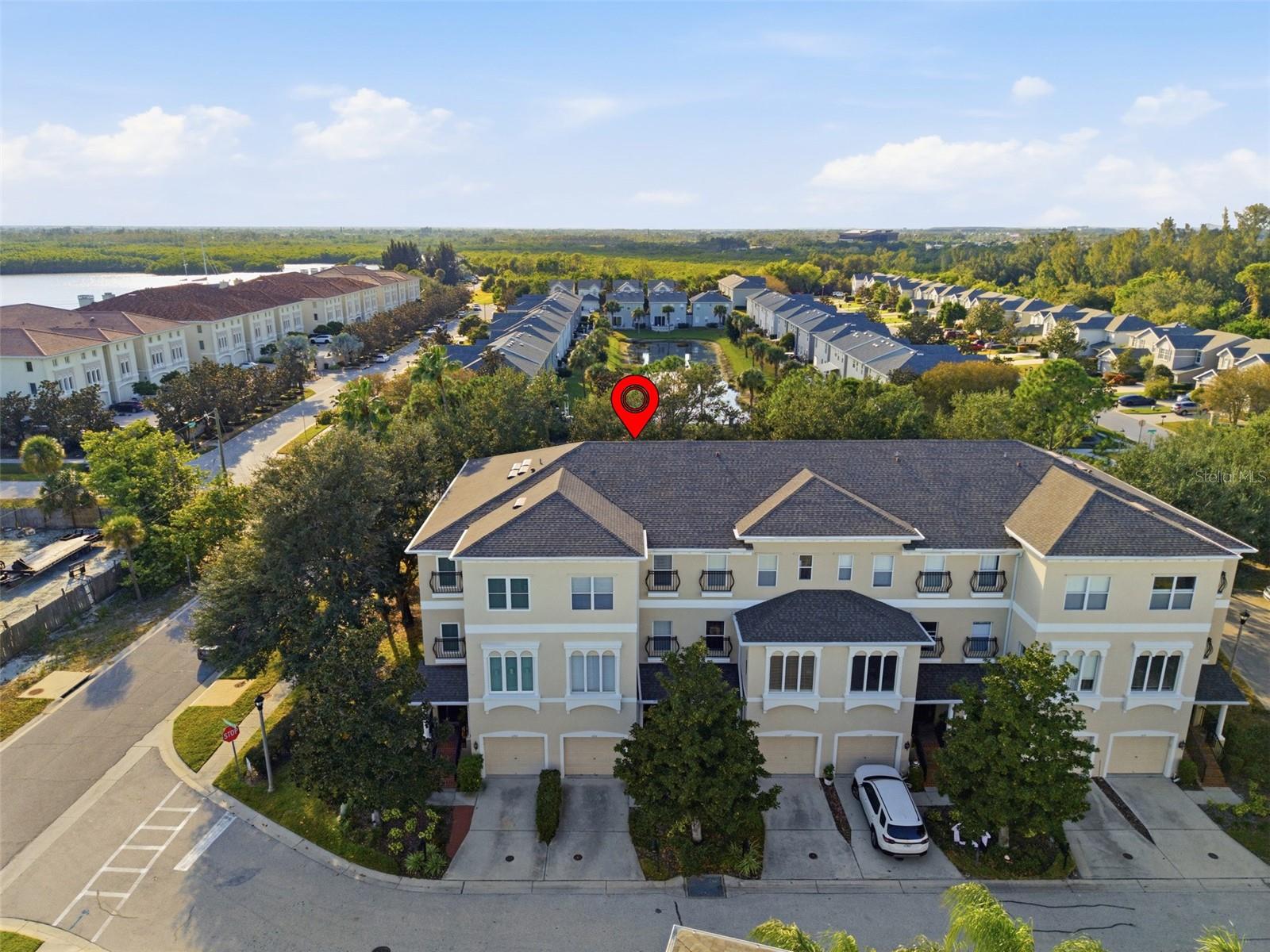 Under contract-accepting backup offers. Welcome to Venetian Harbor, a sought-after townhome community ideally located just off Gandy Boulevard on the north side of the Weedon Island Preserve. This prime location offers unmatched convenience—minutes from both award-winning Gulf beaches and the St. Petersburg and Tampa international airports, as well as shopping, dining, and everyday essentials. Thoughtfully maintained, the community features key recent improvements including a new HVAC system (2024), roof replacement (2023), and fresh exterior paint (2022). Inside, the main level offers an inviting open-concept layout designed for both everyday living and effortless entertaining. A wall of pocket sliding doors fills the space with natural light and leads to a screened-in balcony—perfect for morning coffee or evening relaxation. The spacious kitchen features an island with a breakfast bar, generous wood cabinetry, and stainless steel appliances. A dedicated dining area, convenient half bath, and versatile office/den complete this level. Below, the expansive tandem garage with 12' ceilings provides room for 2+ vehicles, exceptional storage, or a workshop area. This level also opens to a private patio ideal for grilling or enjoying the outdoors. Upstairs, the primary suite offers comfort and privacy with a spa-inspired bathroom featuring double vanities, a deep soaking tub, and a separate glass-enclosed shower. Two additional bedrooms share a well-appointed full bath, and the laundry room is conveniently located on this floor. Residents enjoy access to the community’s private dock—perfect for paddle boarding, kayaking, or simply taking in the peaceful waterfront lifestyle. This is a wonderful opportunity to live in a beautifully maintained community with water access and unparalleled proximity to beaches, airports, and all that Tampa Bay has to offer. Schedule your showing today.